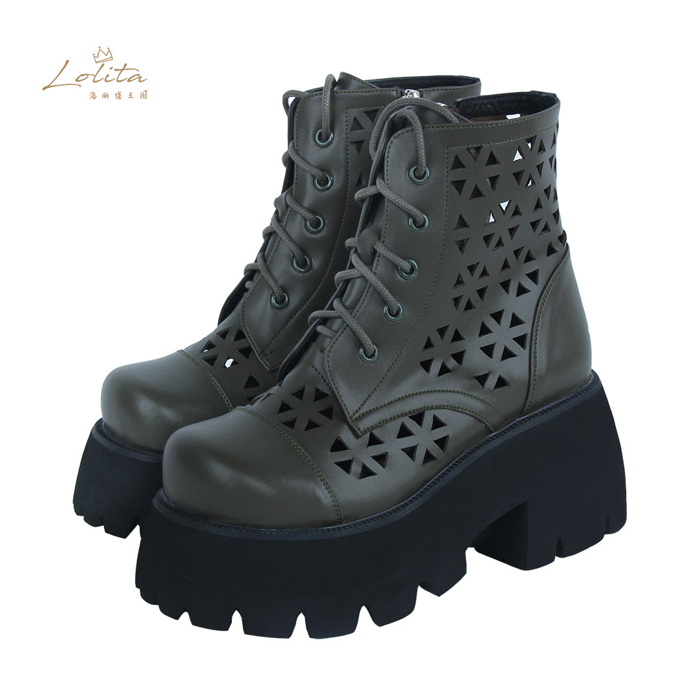 Кожаные летние короткие сапоги с молнией, 2023, стиль Лолита