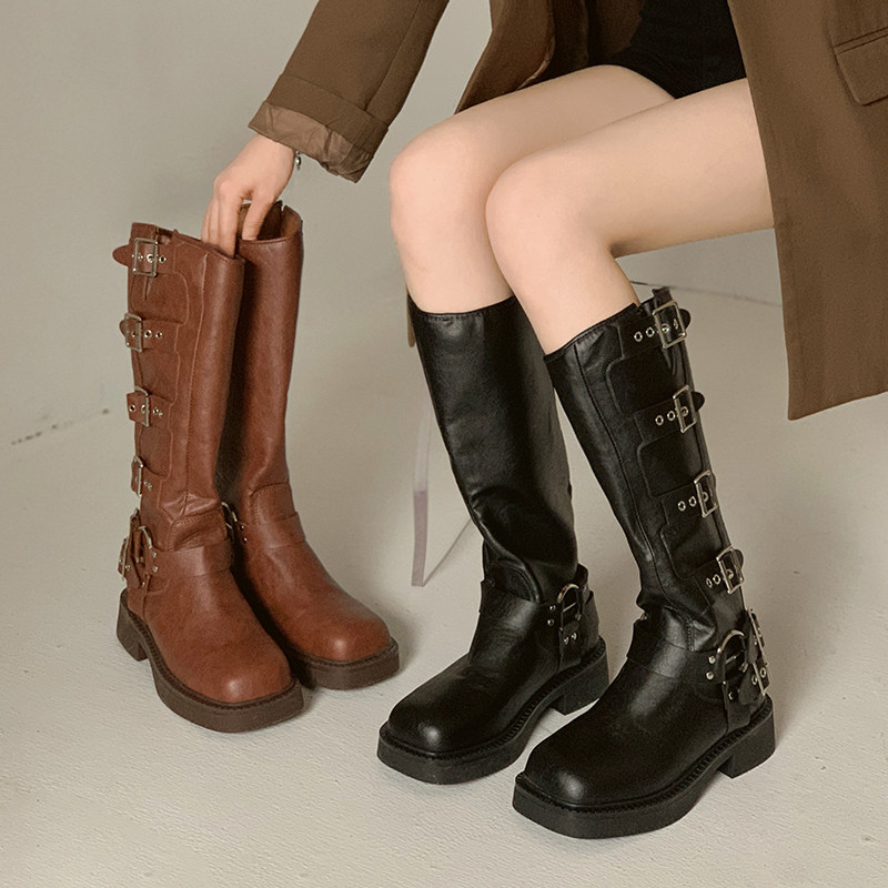 贾不假 Демисезонные модные высокие сапоги в английском стиле на платформе, по фигуре