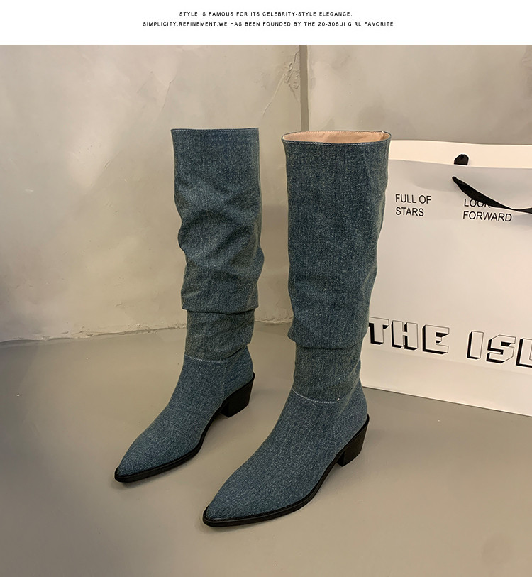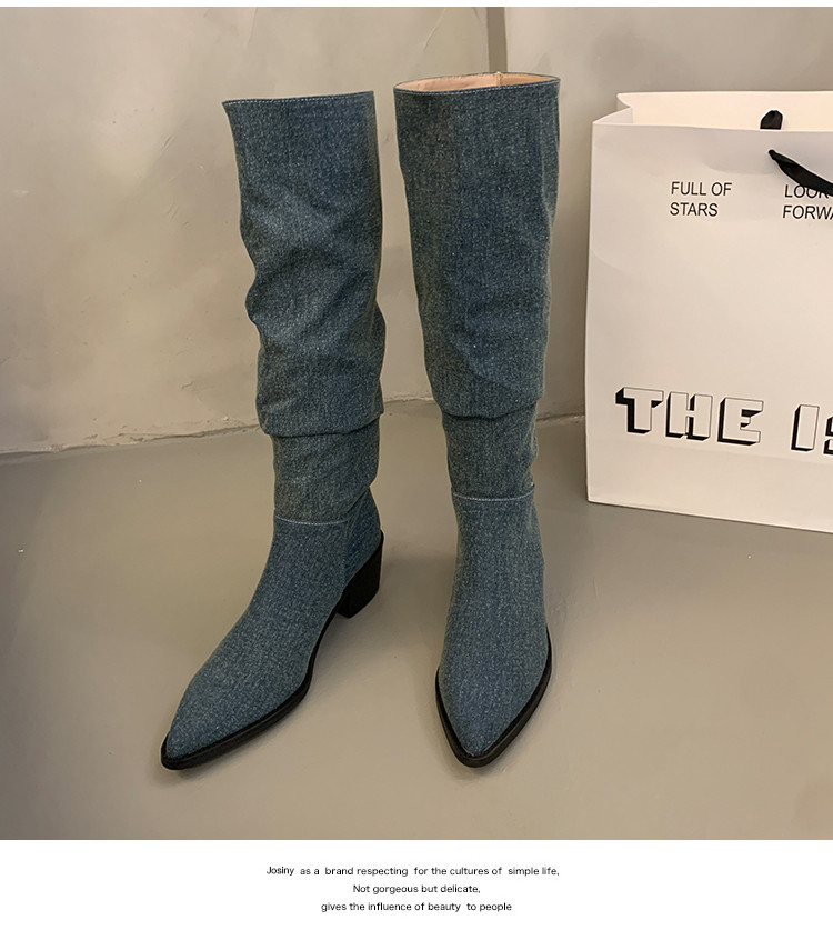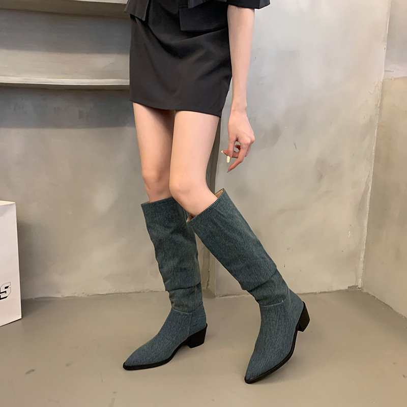 Летние джинсовые высокие сапоги, высокие ботинки, французский ретро стиль, 2023, в корейском стиле