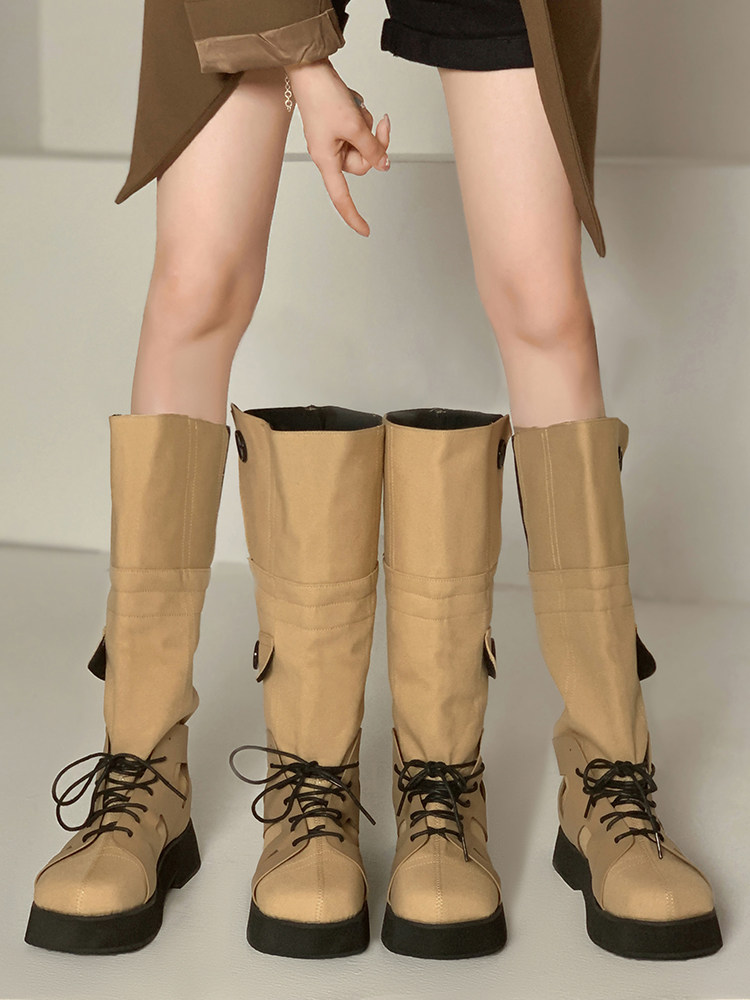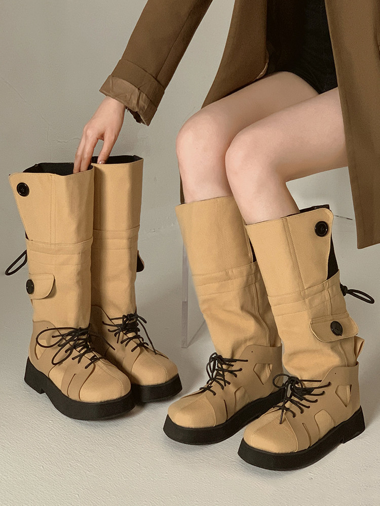 Летние модные универсальные высокие сапоги на платформе в английском стиле, 2023, в британском стиле