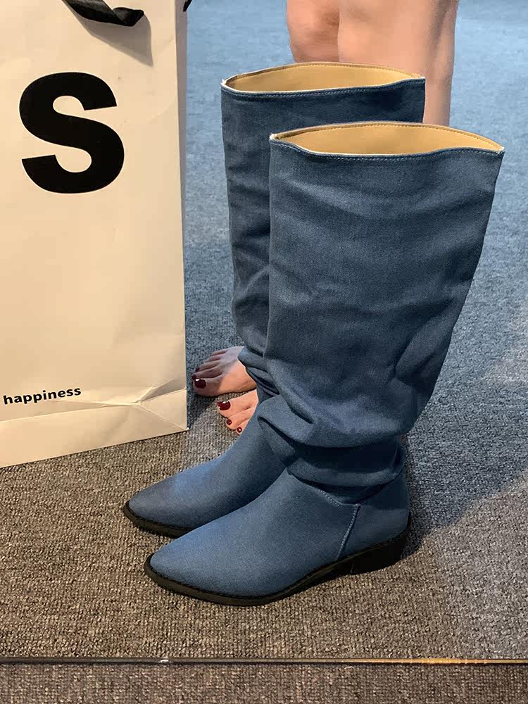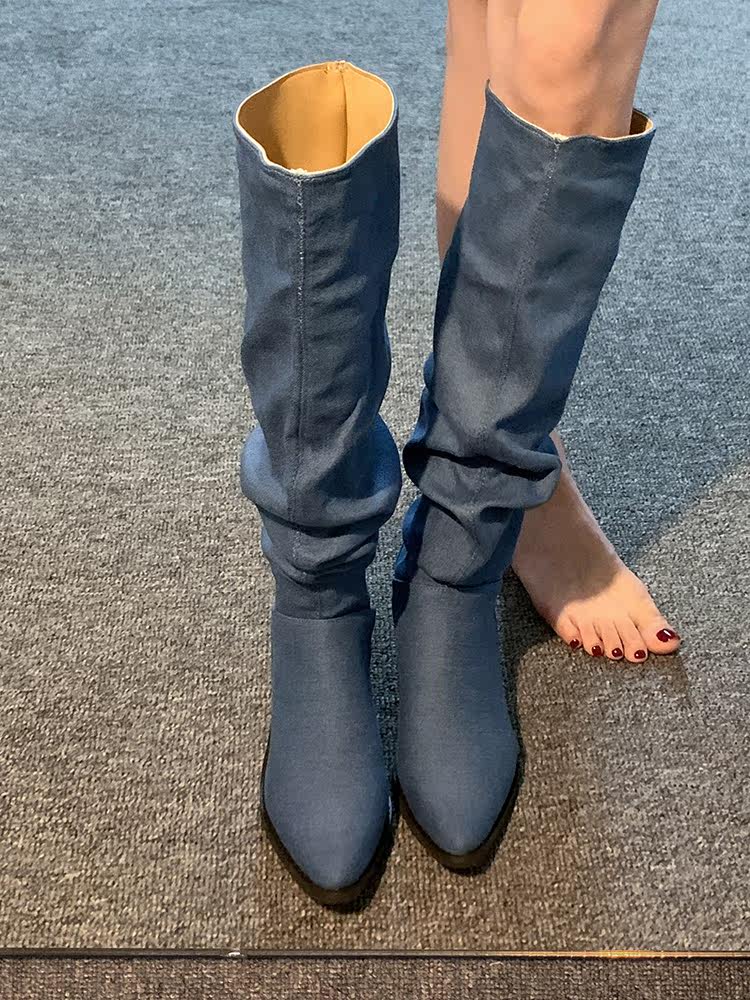 贾不假 Летние модные высокие сапоги с заостренным носом, 2023, французский стиль