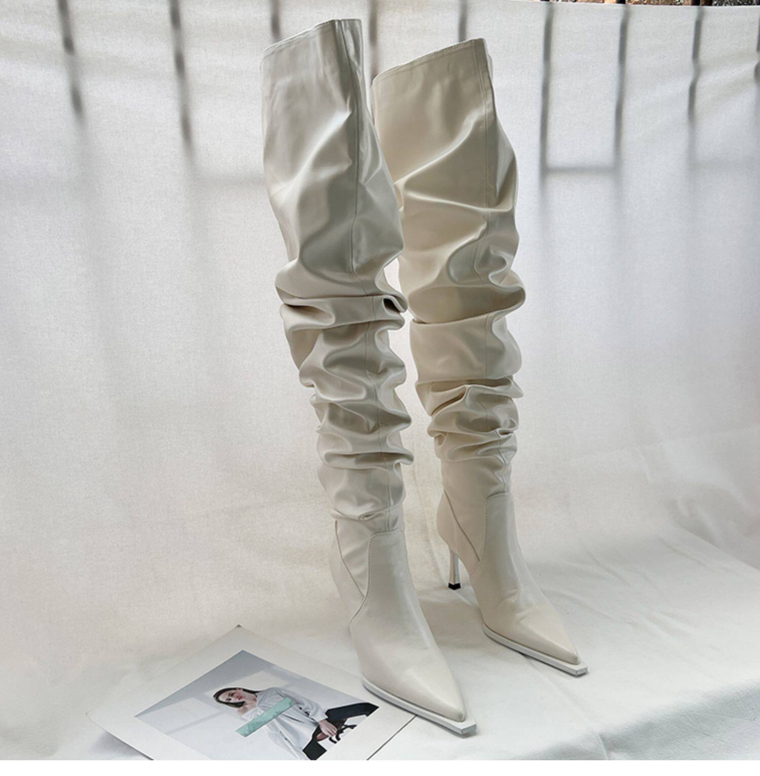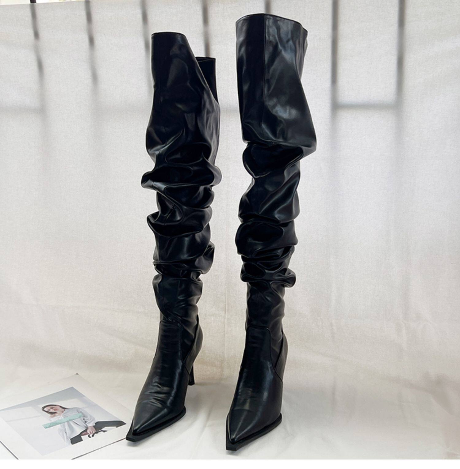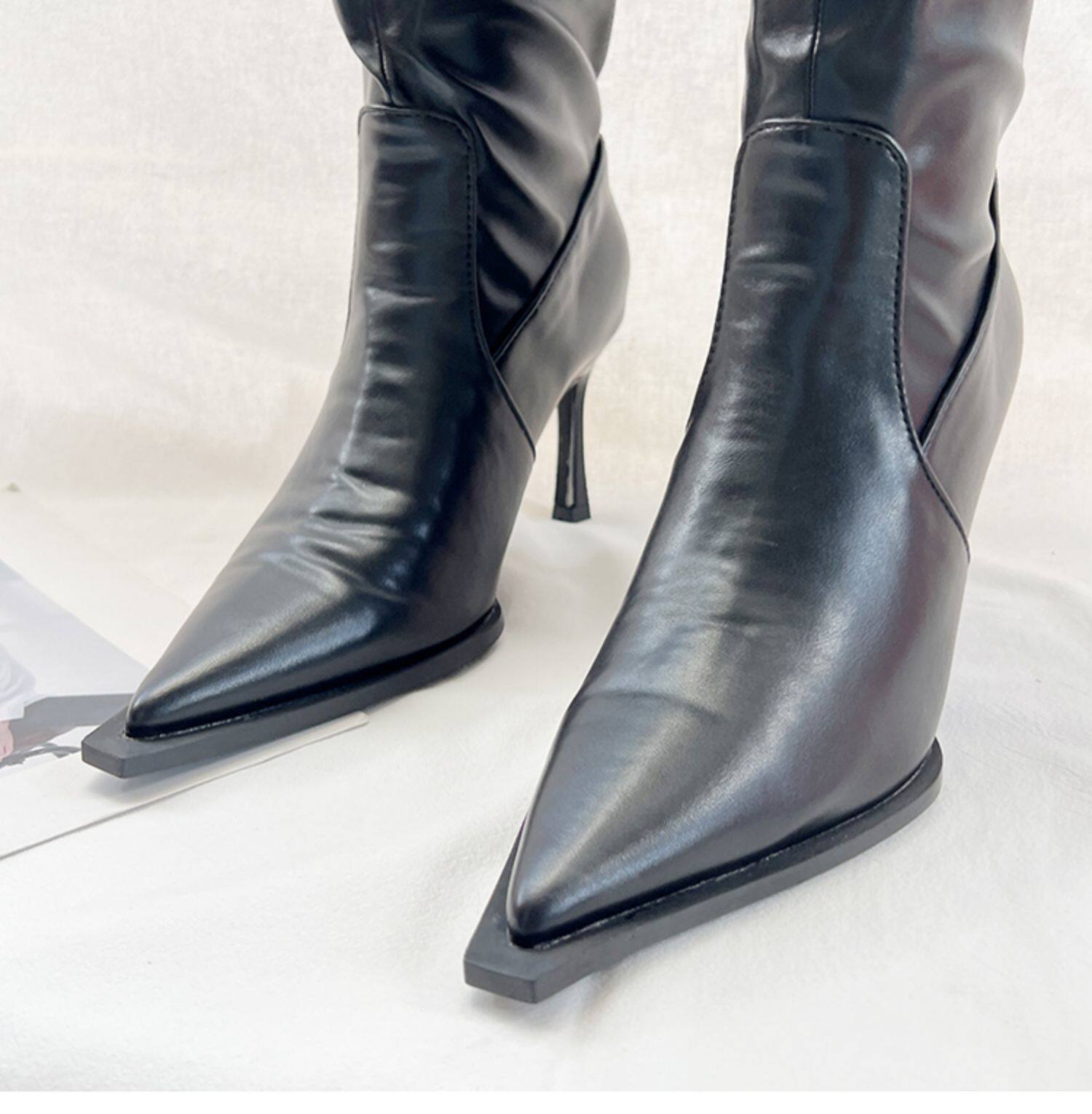 Небольшие дизайнерские эластичные высокие сапоги с заостренным носом на высоком каблуке, 2023, осенние, французский стиль