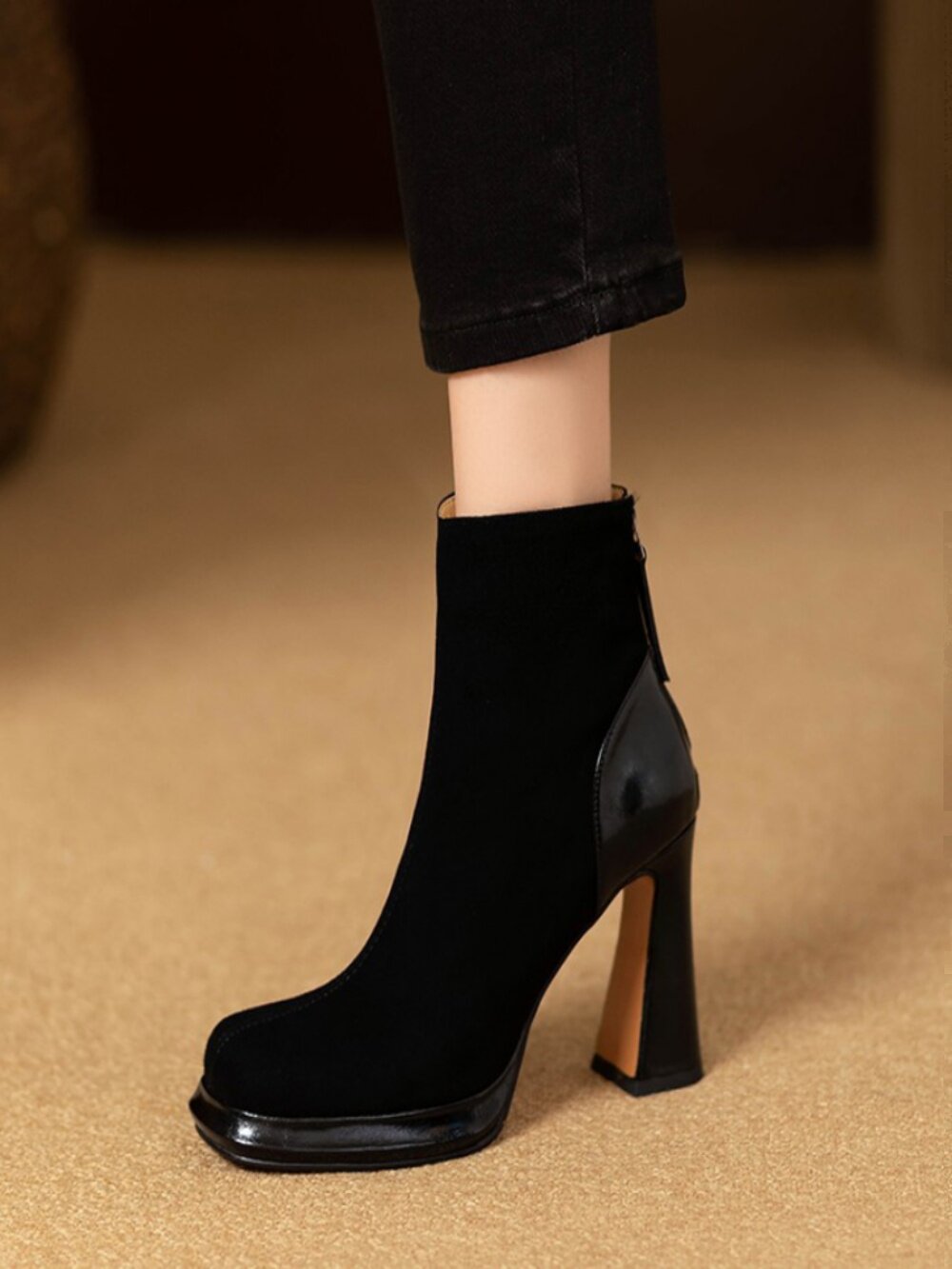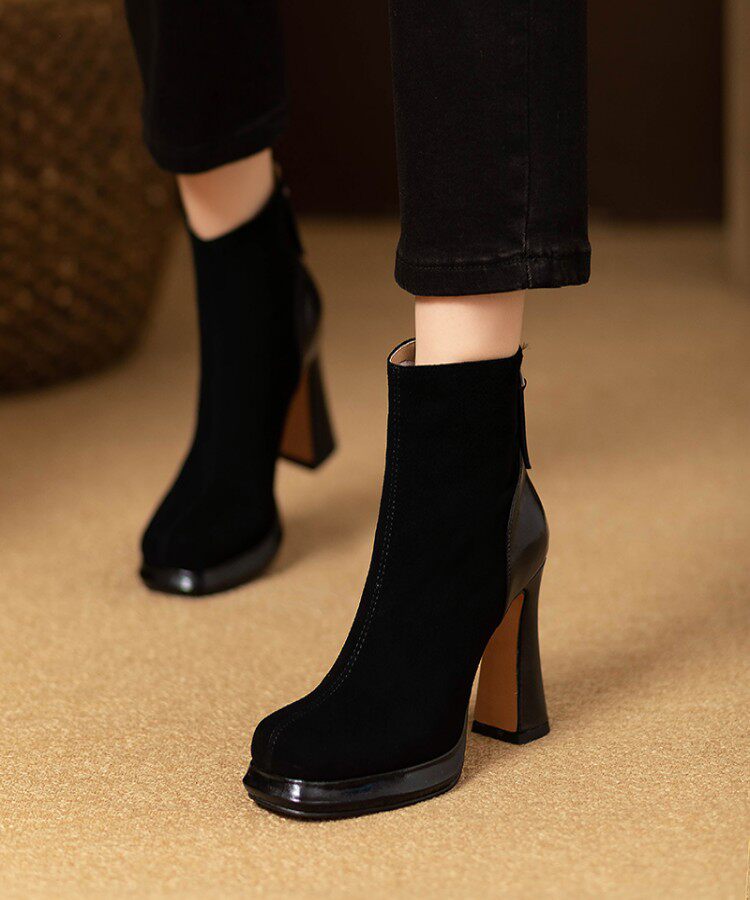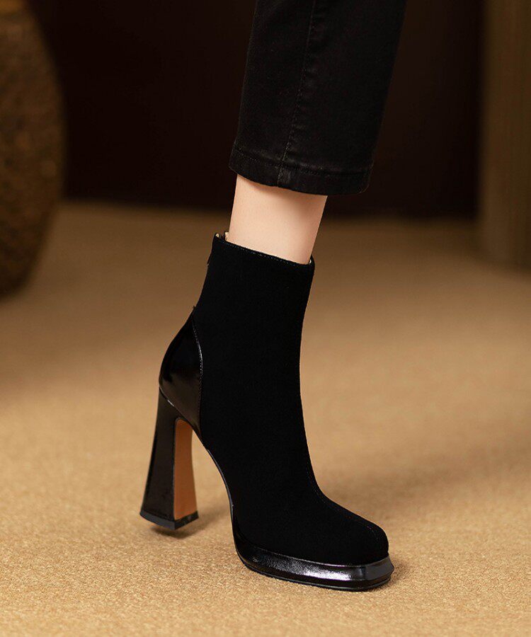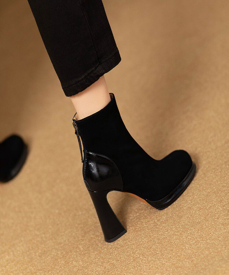 Демисезонные короткие сапоги с молнией на высоком каблуке на платформе, 9.8см, из натуральной кожи