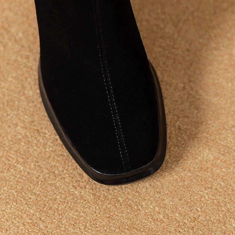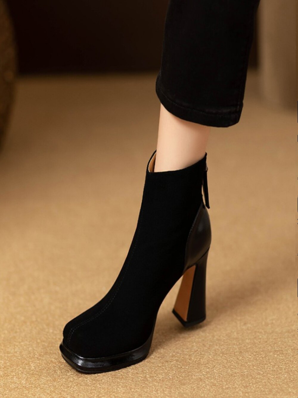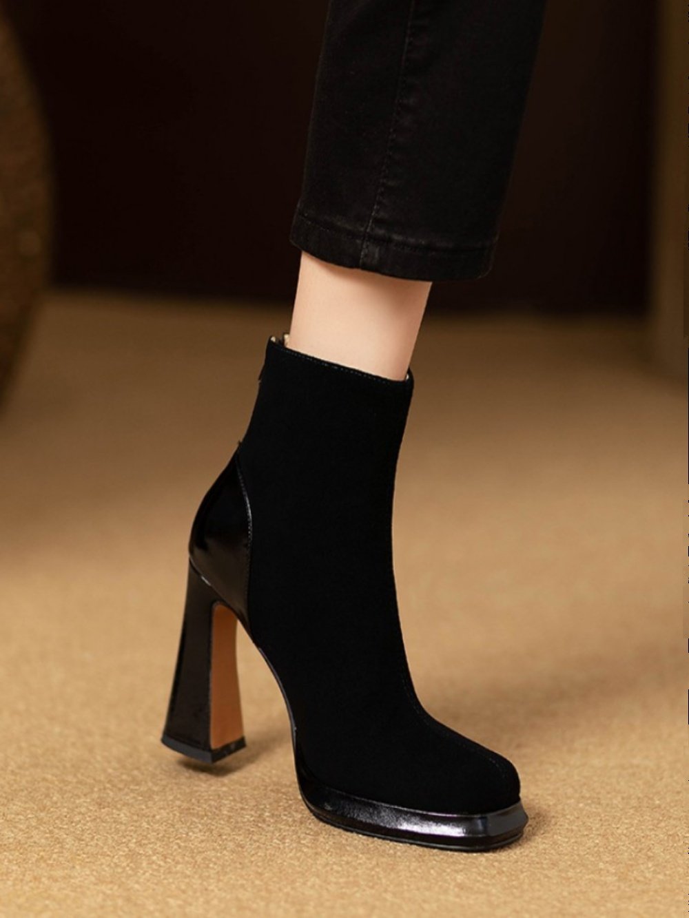 Демисезонные короткие сапоги с молнией на высоком каблуке на платформе, 9.8см, из натуральной кожи