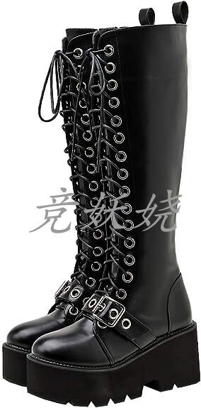 Черные сапоги на платформе, США, 8см, готик, средней длины