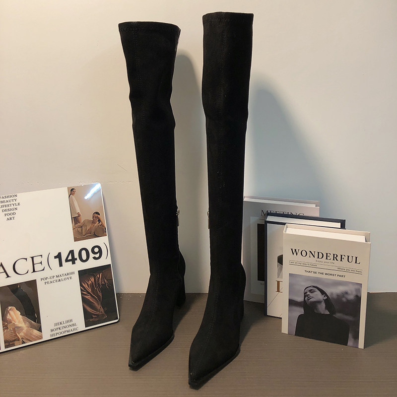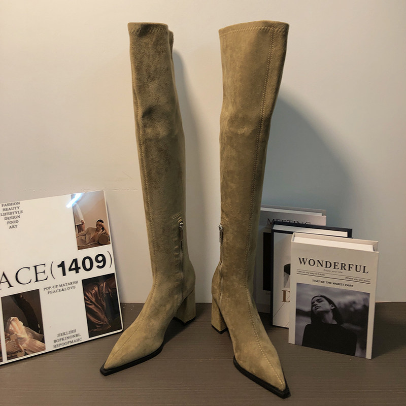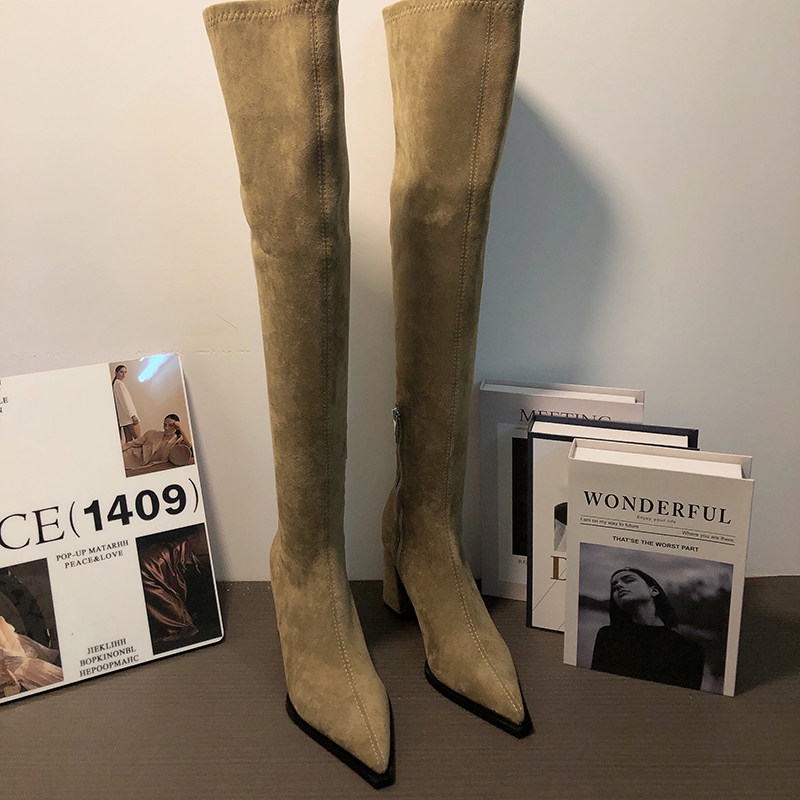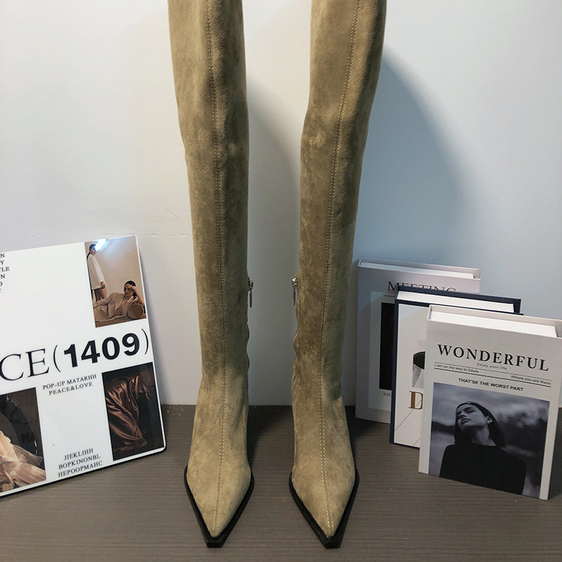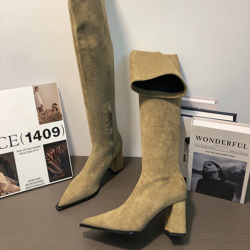 Замшевые демисезонные высокие сапоги, эластичные ботинки с молнией, 2024 года, европейский стиль