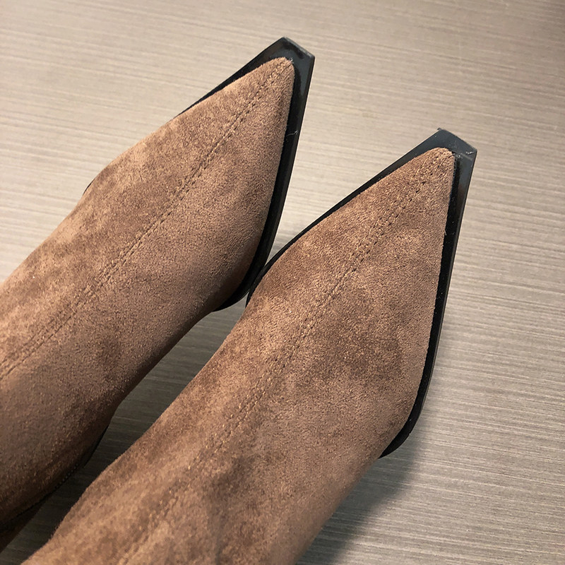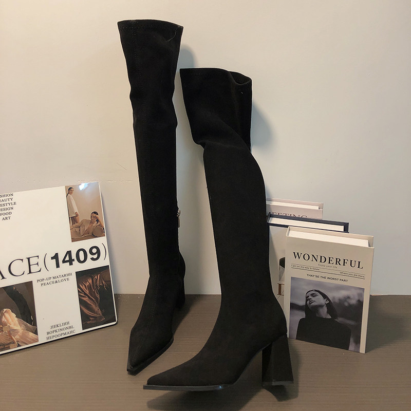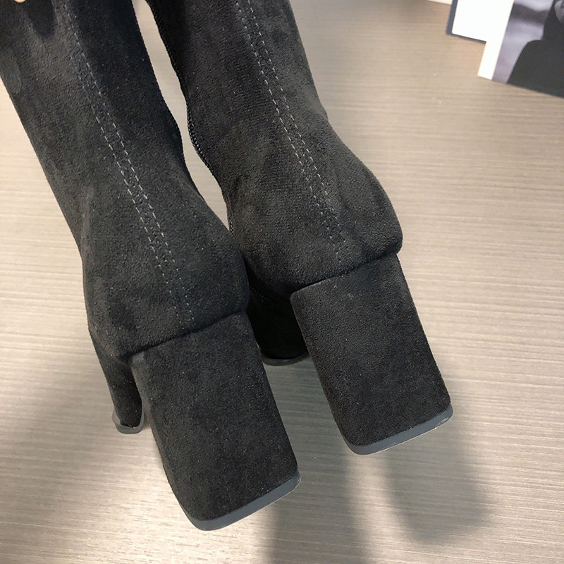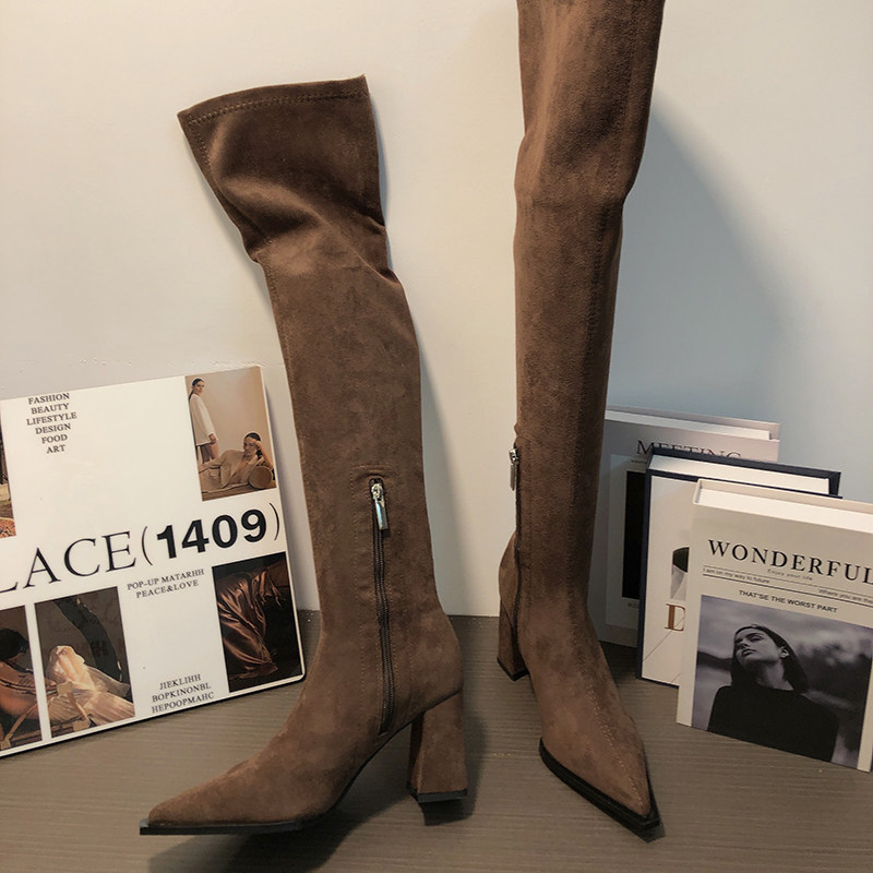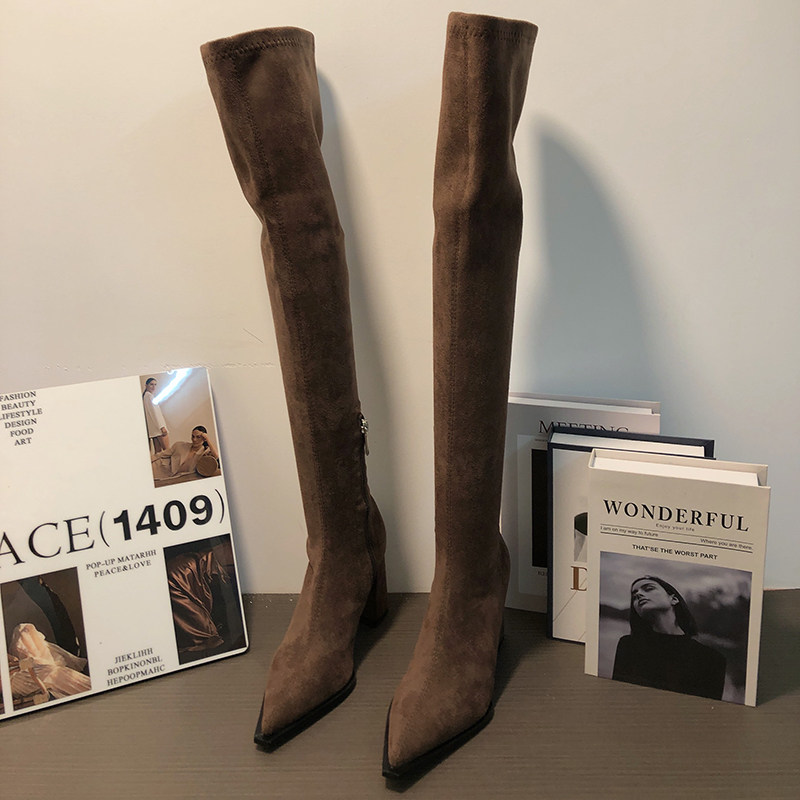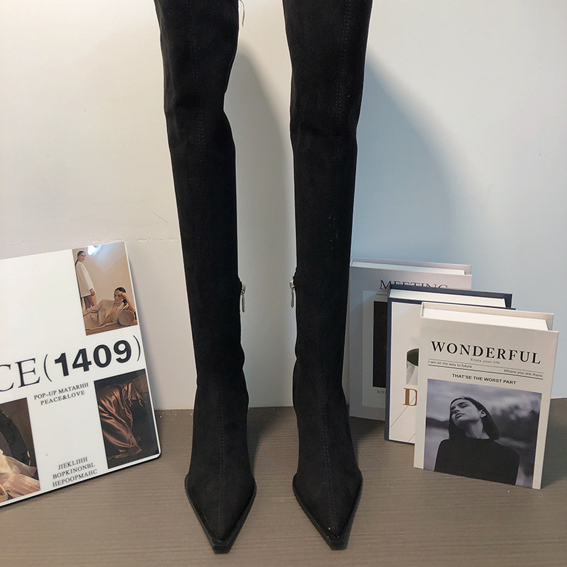 Замшевые демисезонные высокие сапоги, эластичные ботинки с молнией, 2024 года, европейский стиль