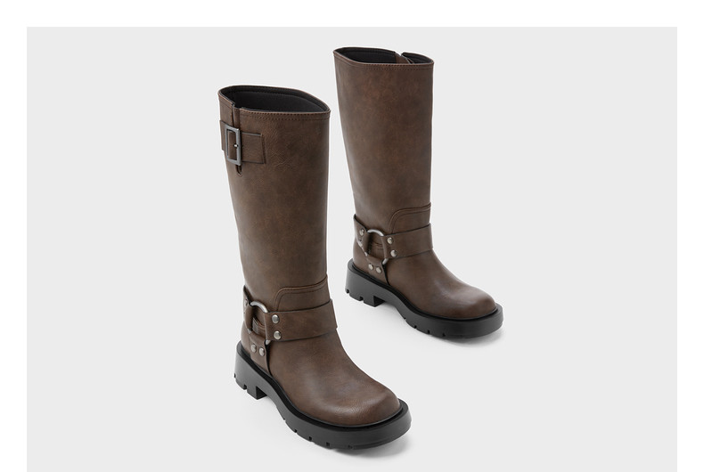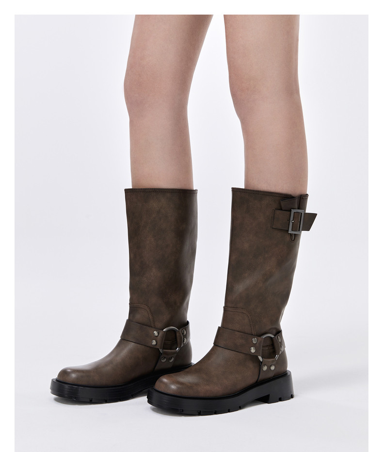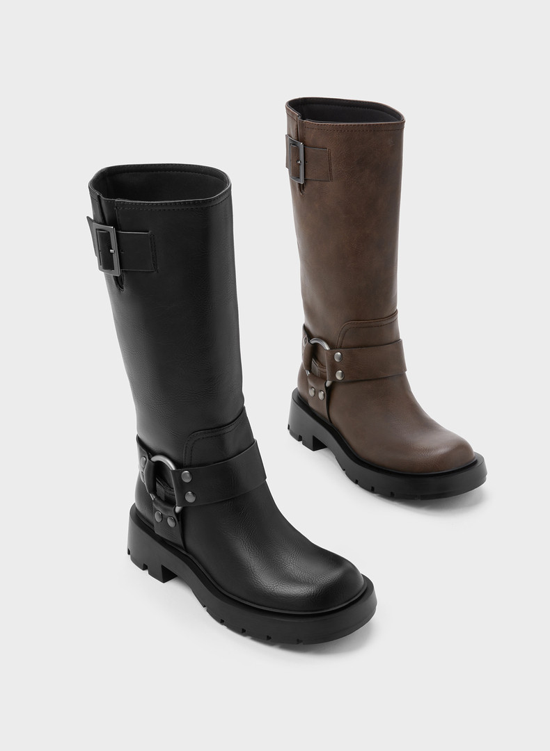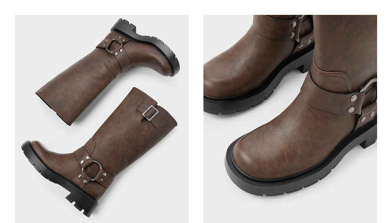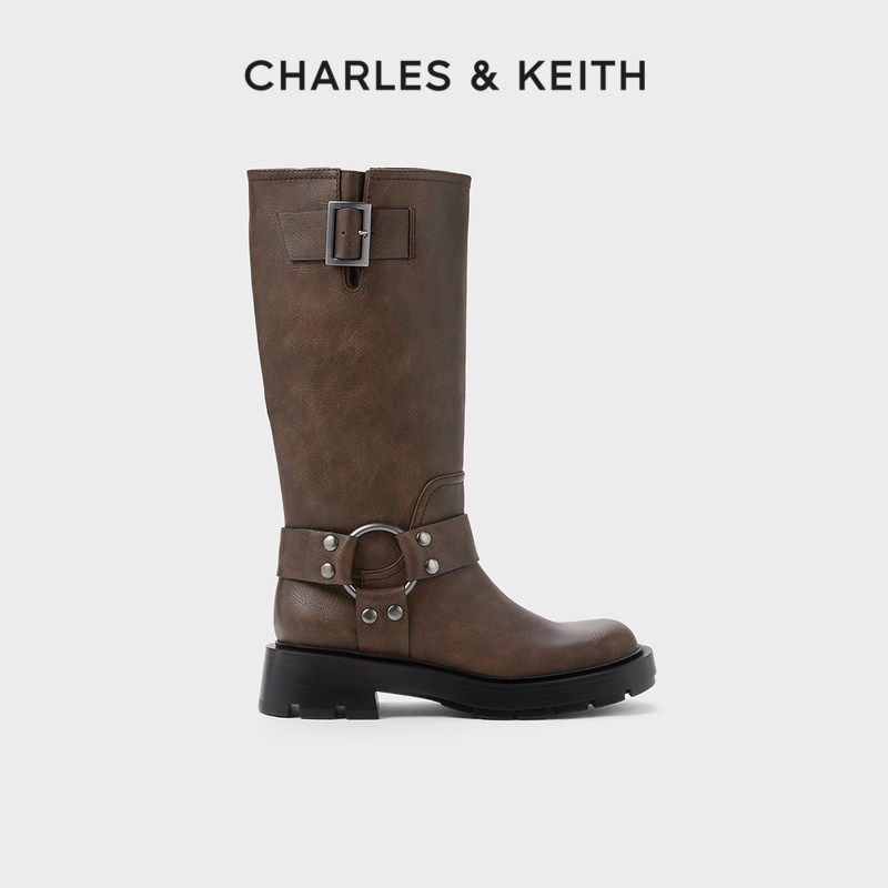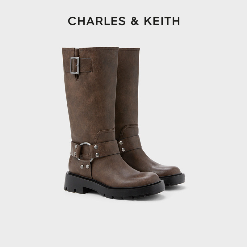 CHARLES&KEITH Демисезонные сапоги, ретро ремень, пряжка, средней длины