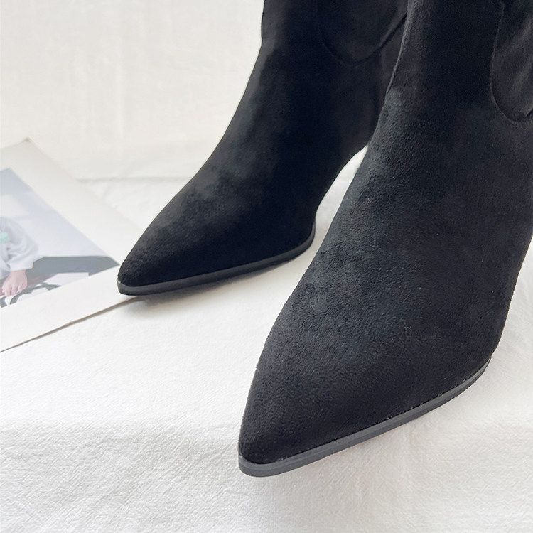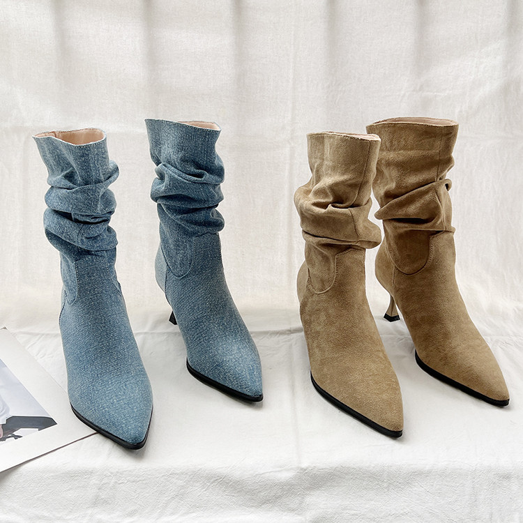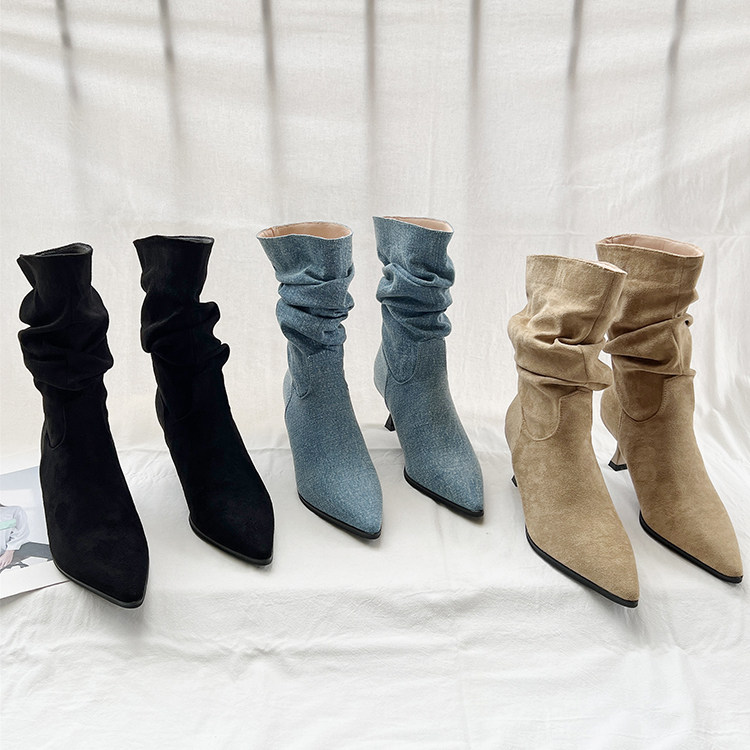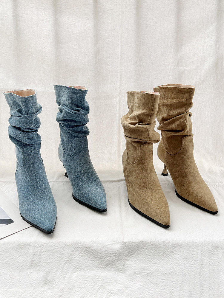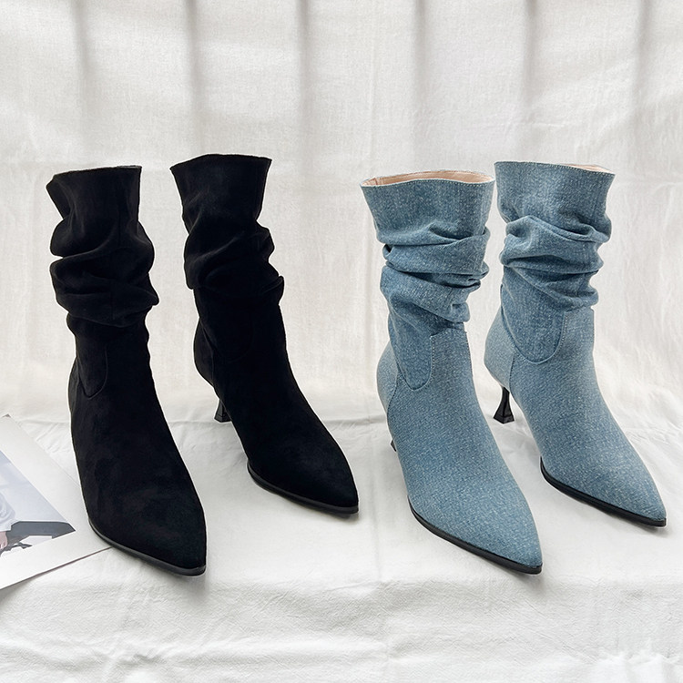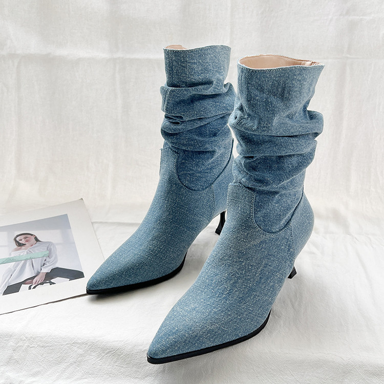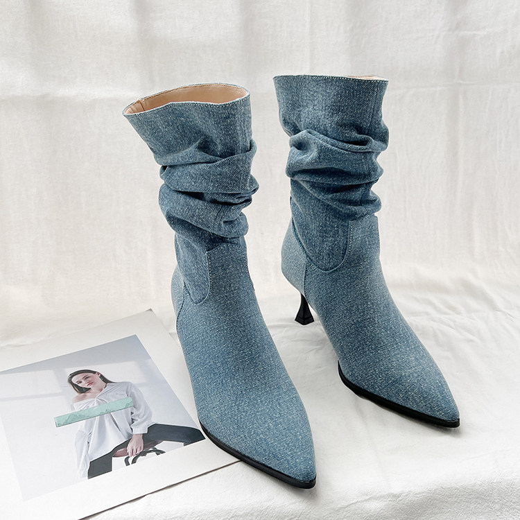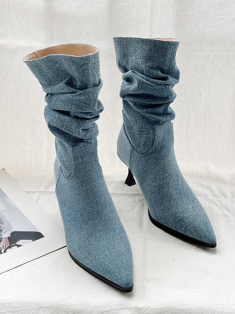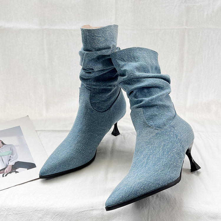 Джинсовые высокие короткие сапоги с заостренным носом, европейский стиль, 2023, осенние