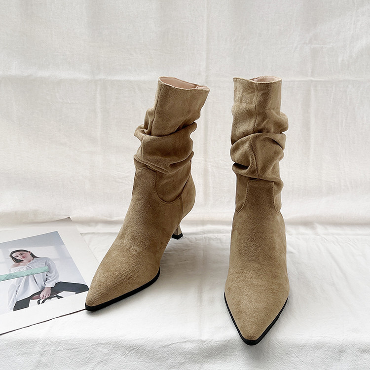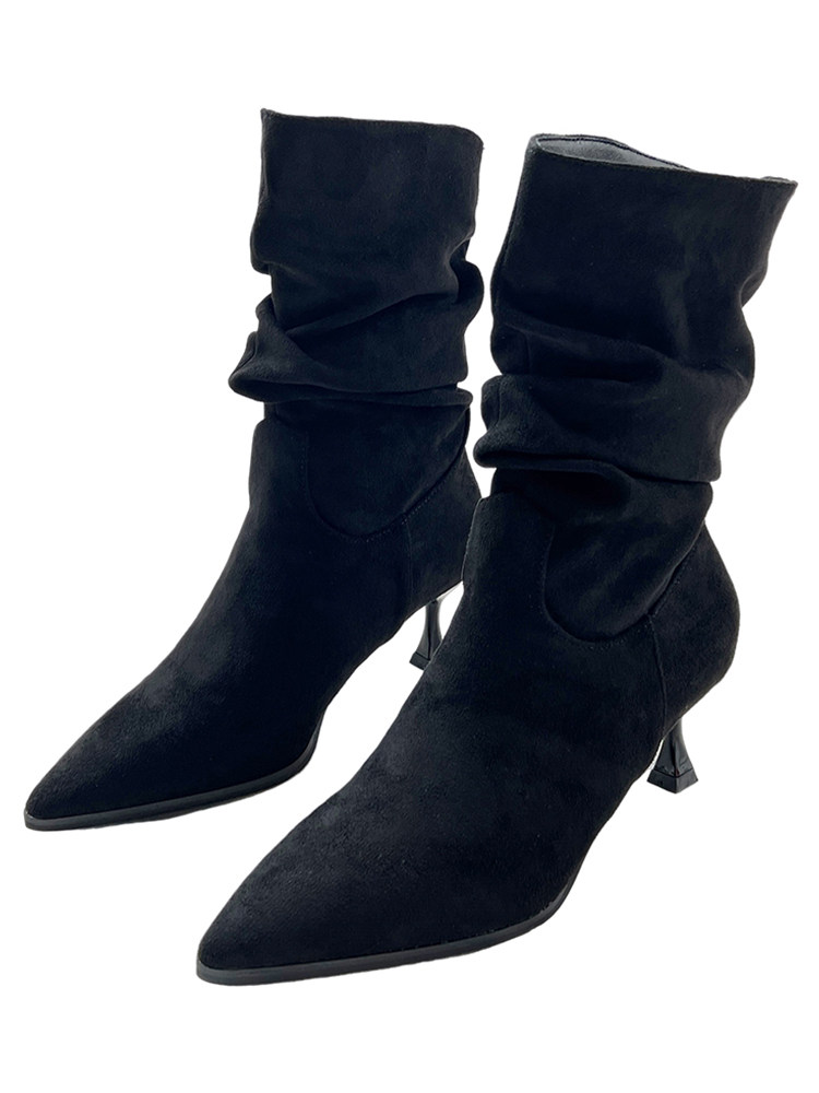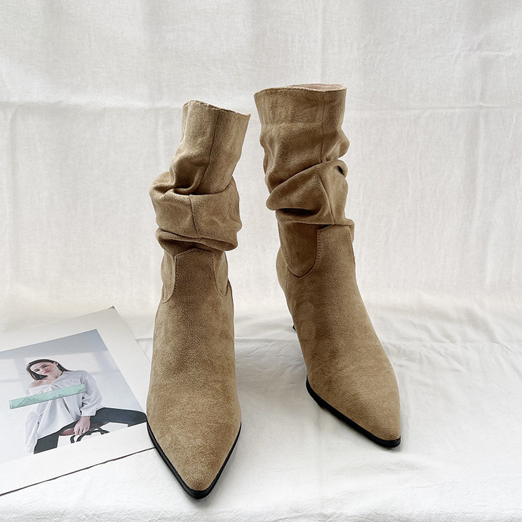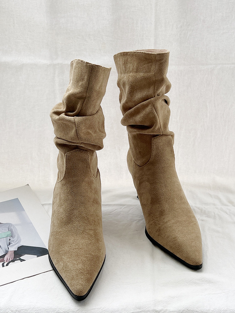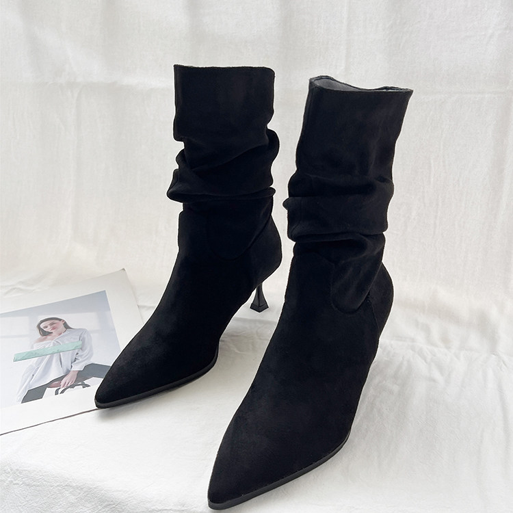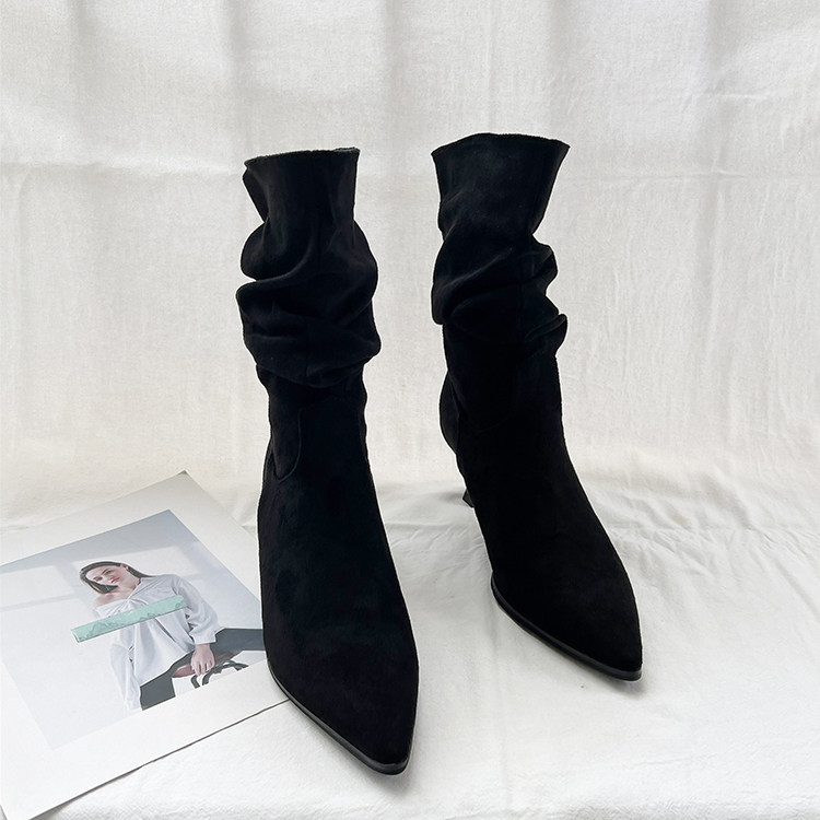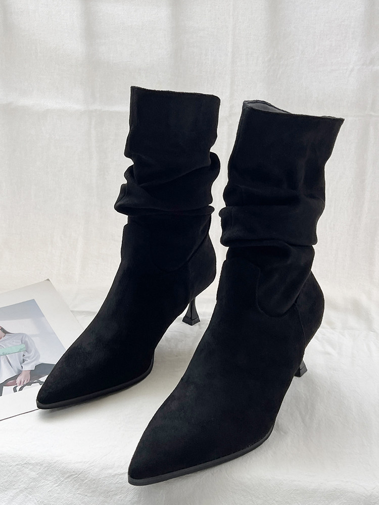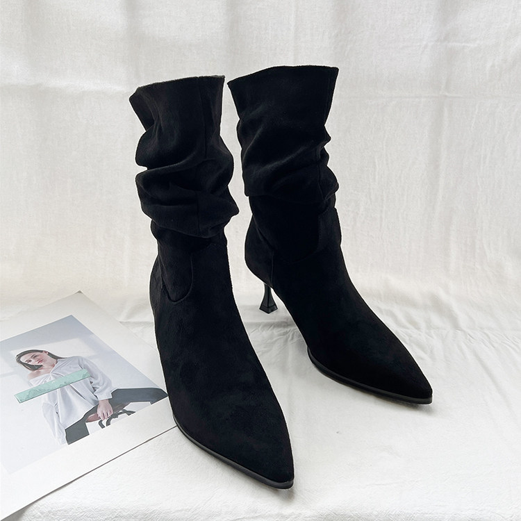 Джинсовые высокие короткие сапоги с заостренным носом, европейский стиль, 2023, осенние