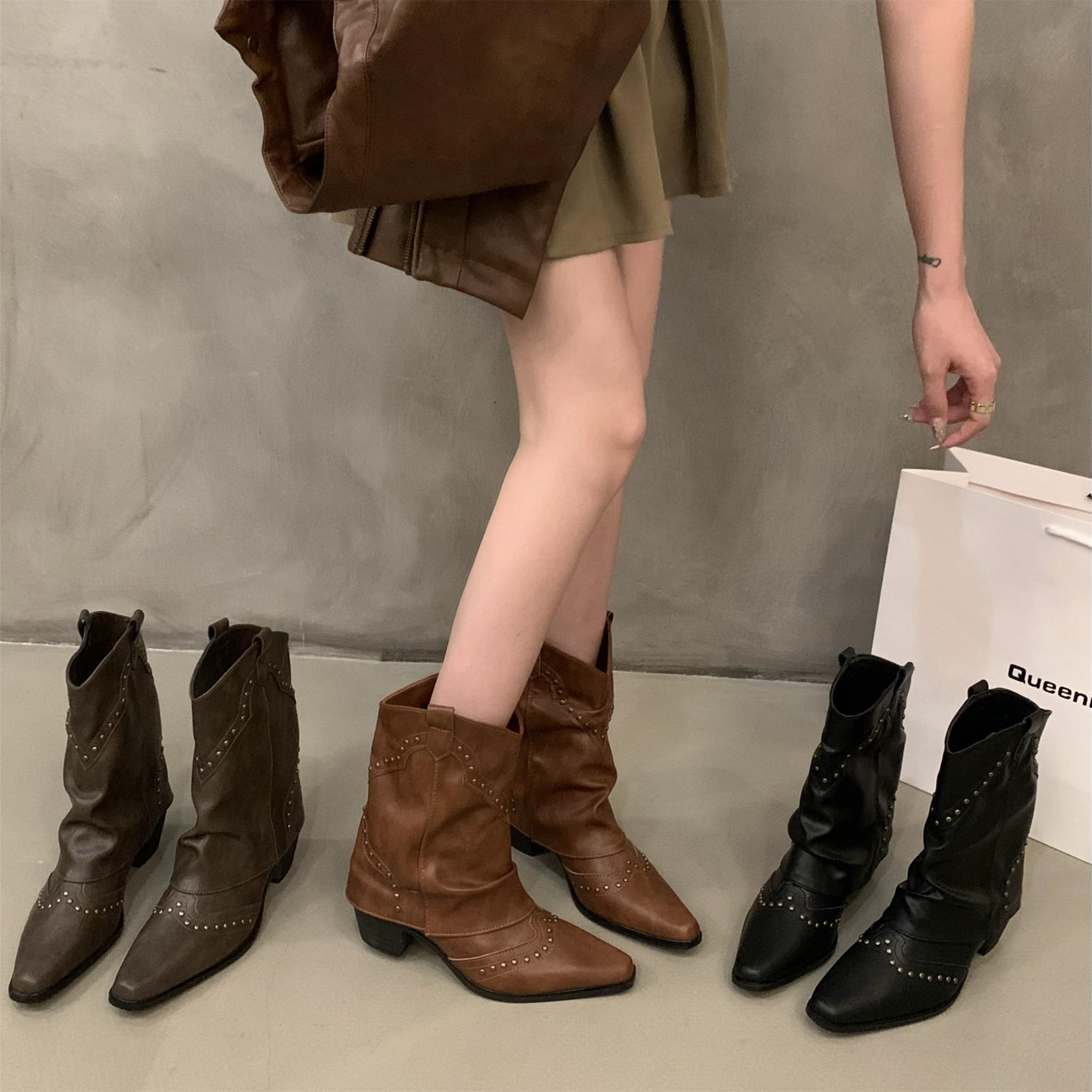 Martens, джинсовые ботинки с заостренным носом, коричневые короткие сапоги, 2024 года