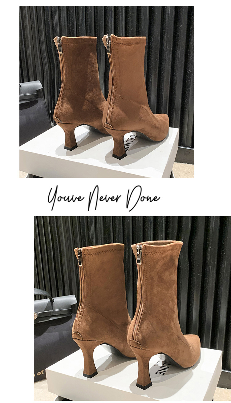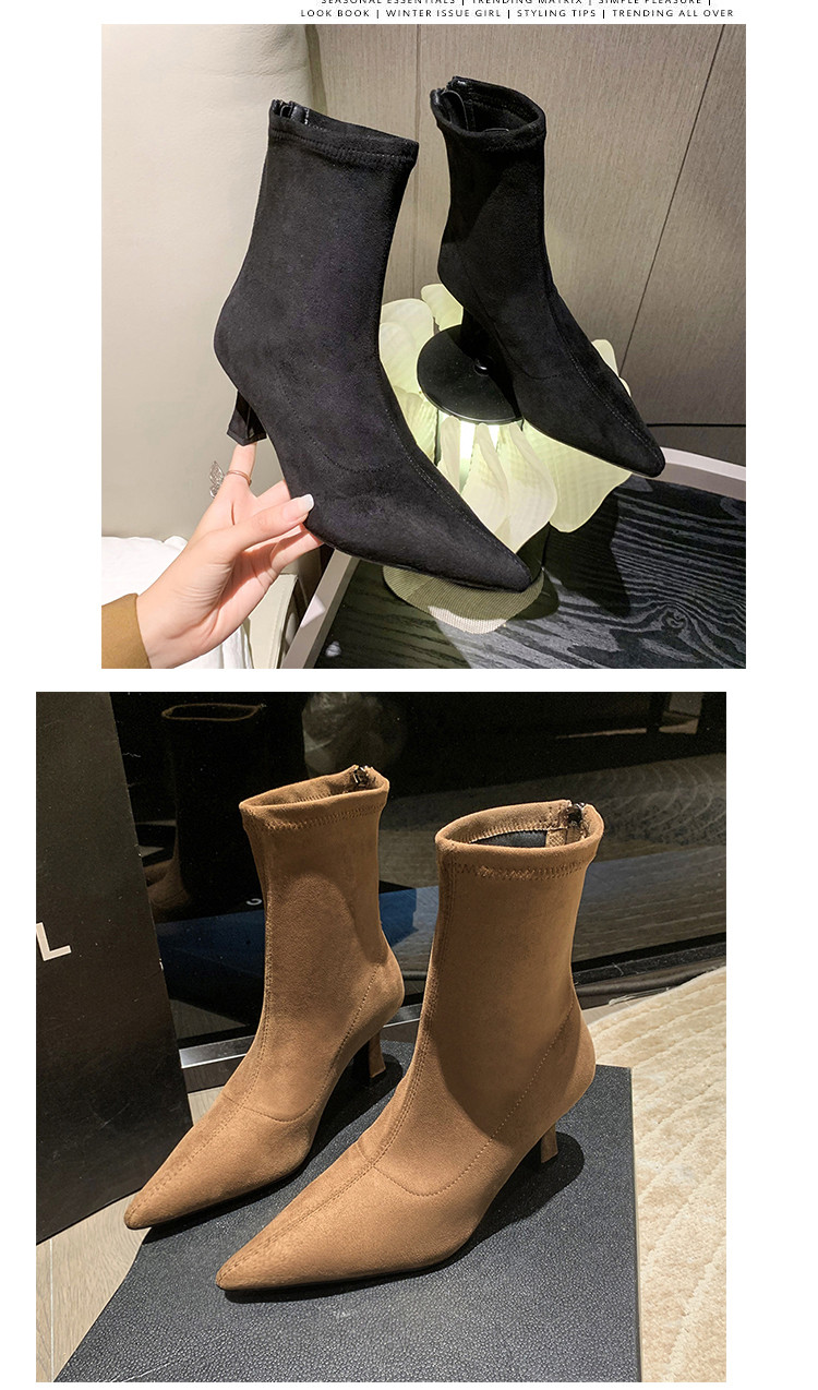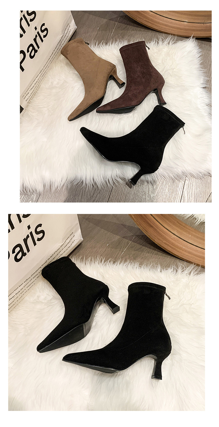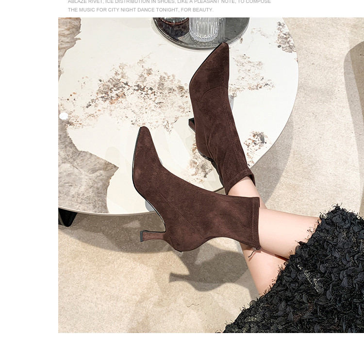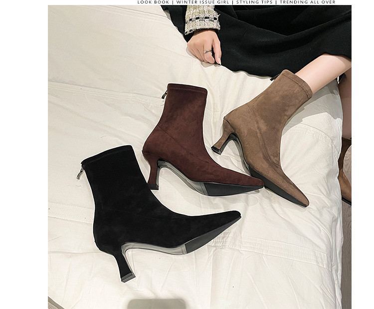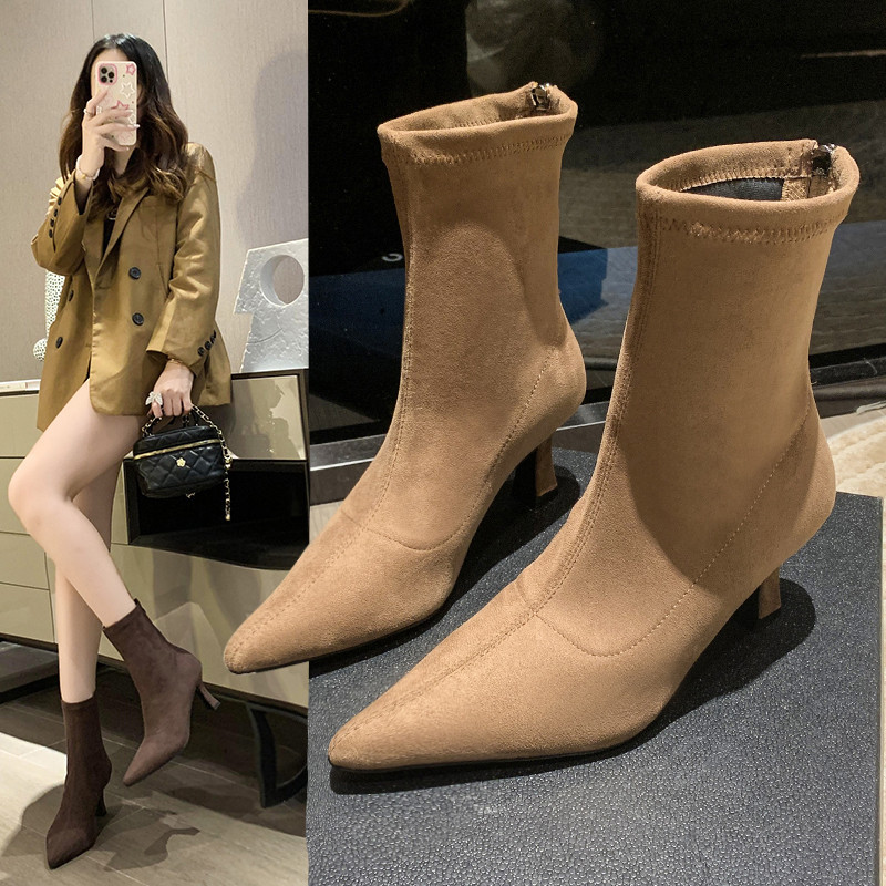 Martens, летние короткие сапоги с заостренным носом на высоком каблуке, замшевые эластичные ботинки