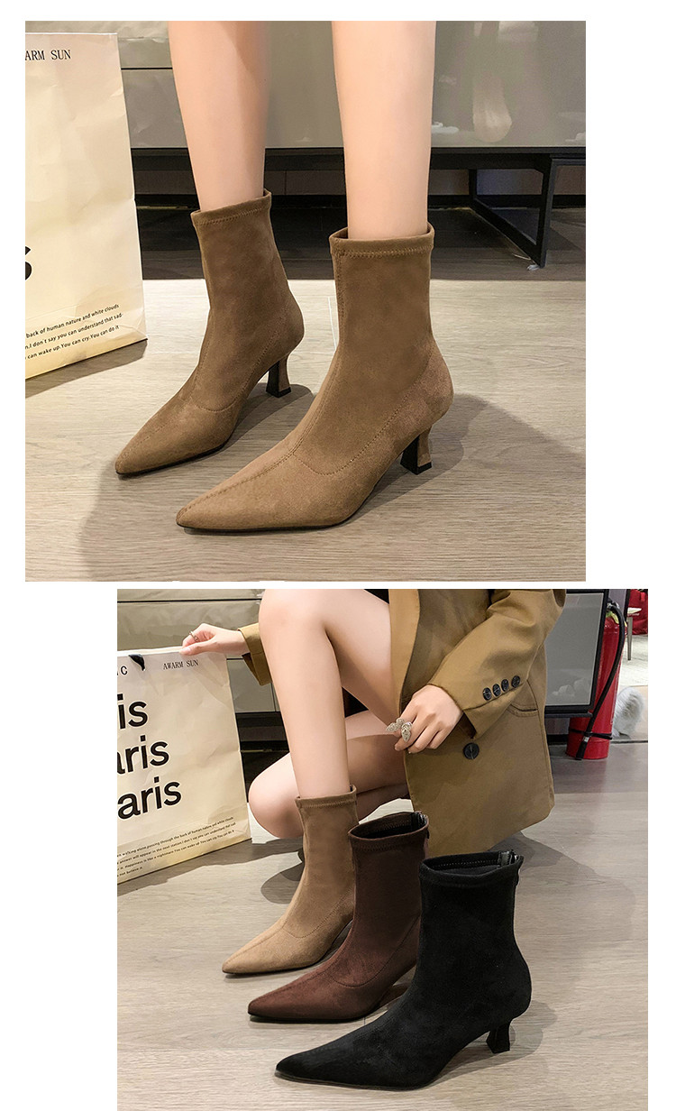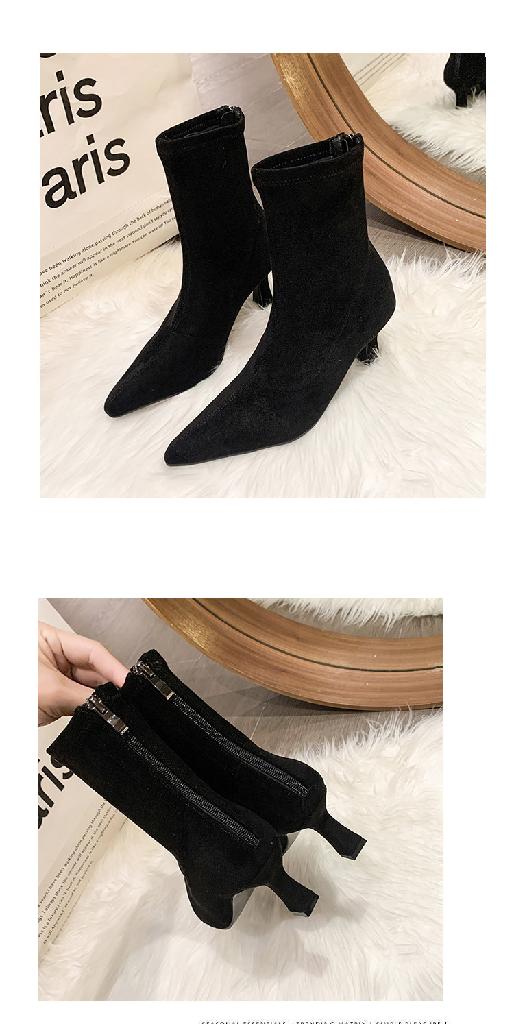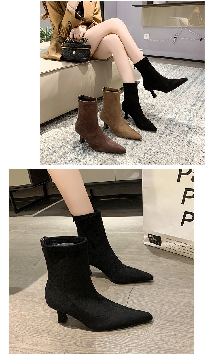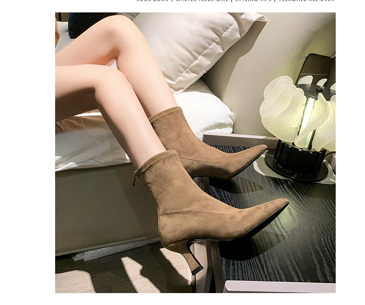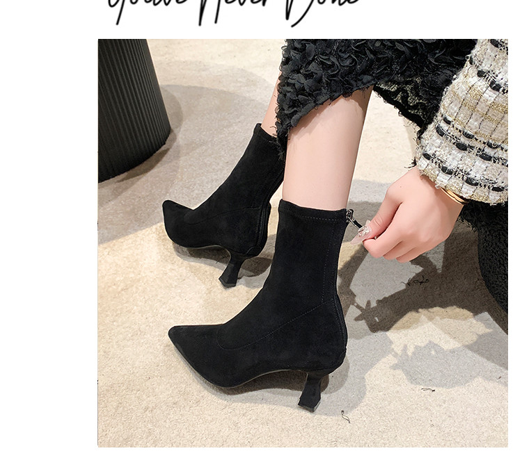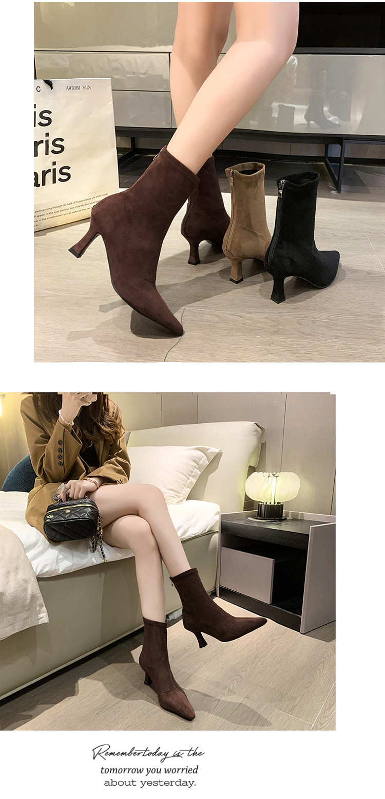 Martens, летние короткие сапоги с заостренным носом на высоком каблуке, замшевые эластичные ботинки