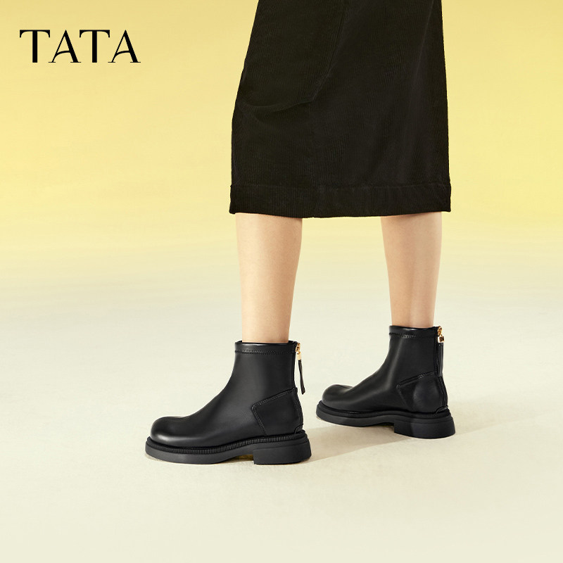 Tata her эластичные короткие сапоги на толстой подошве, женские сапоги, милый и крутой стиль, простые бархатные темпераментные тонкие сапоги, зимние WZH01DD3