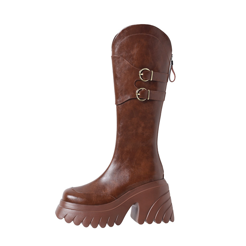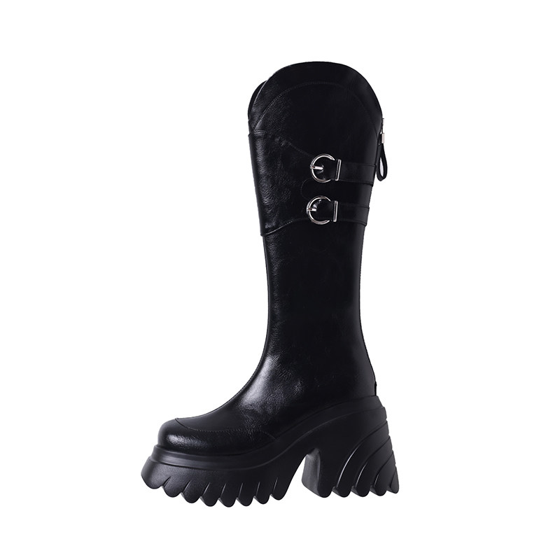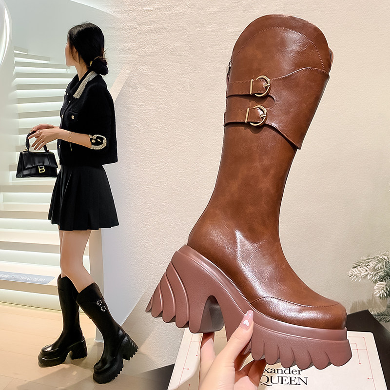 Демисезонные высокие высокие сапоги на платформе, ремень, пряжка, 10см, подходит для подростков, по фигуре