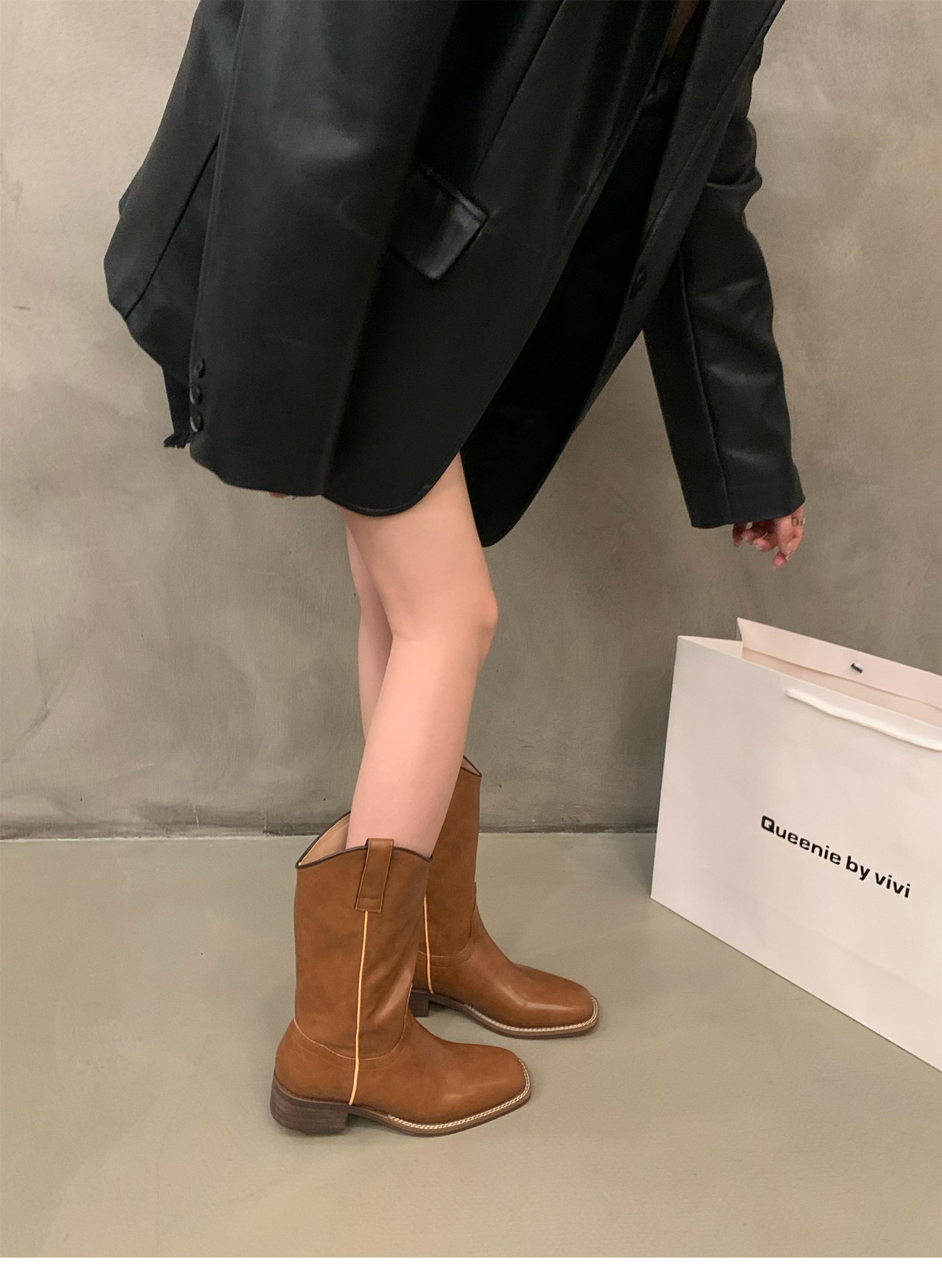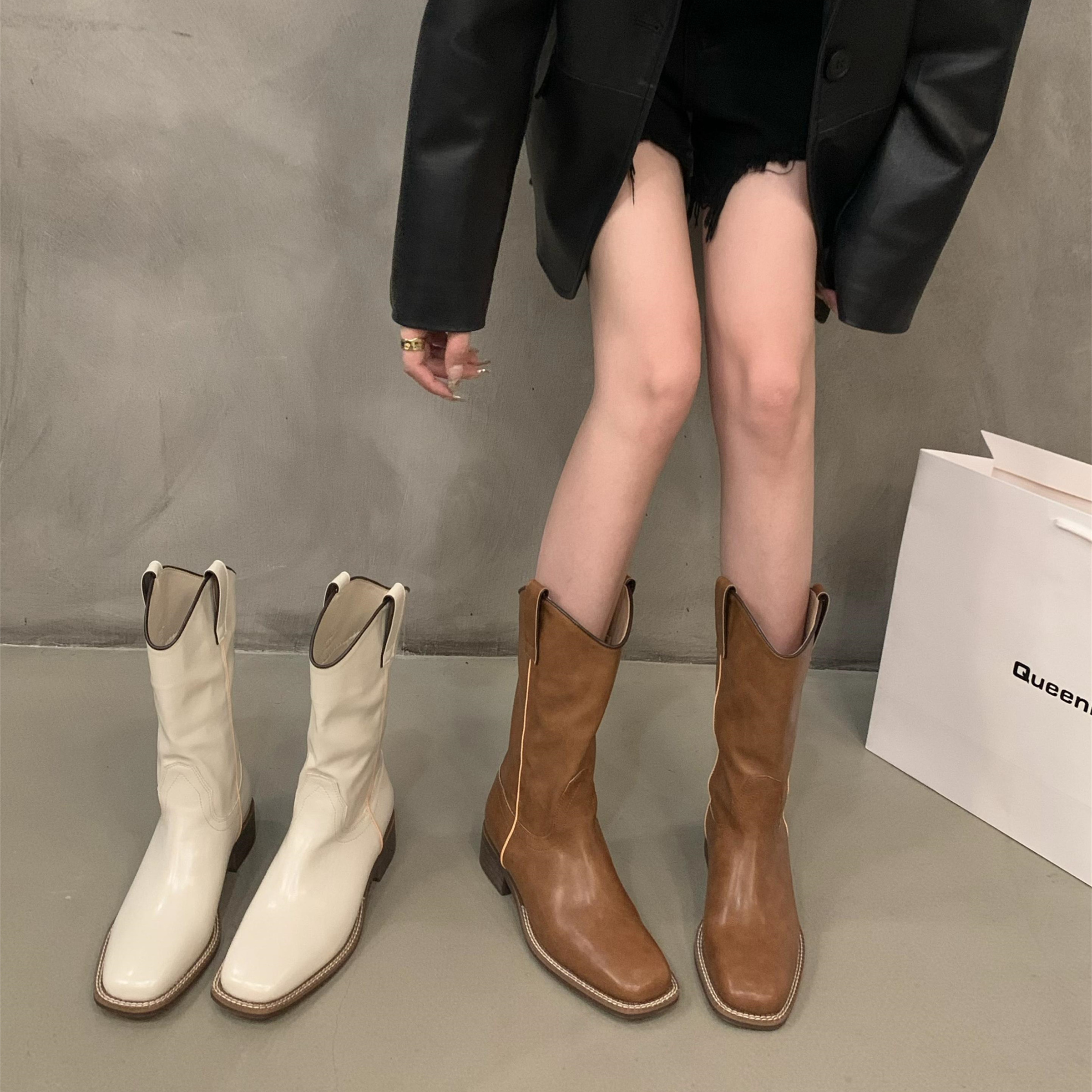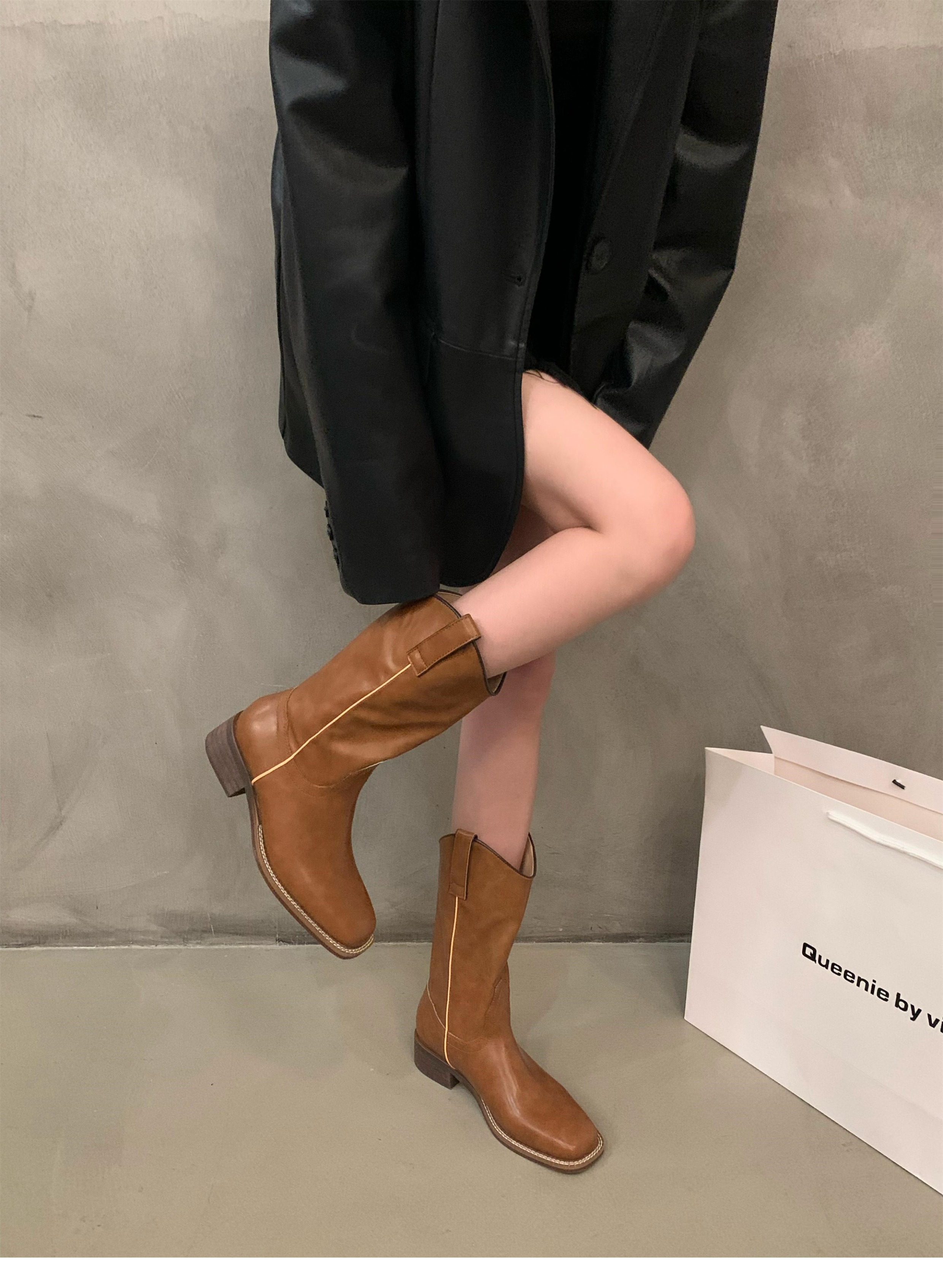 Высокие сапоги, туфли, ботинки, в американском стиле, средней длины