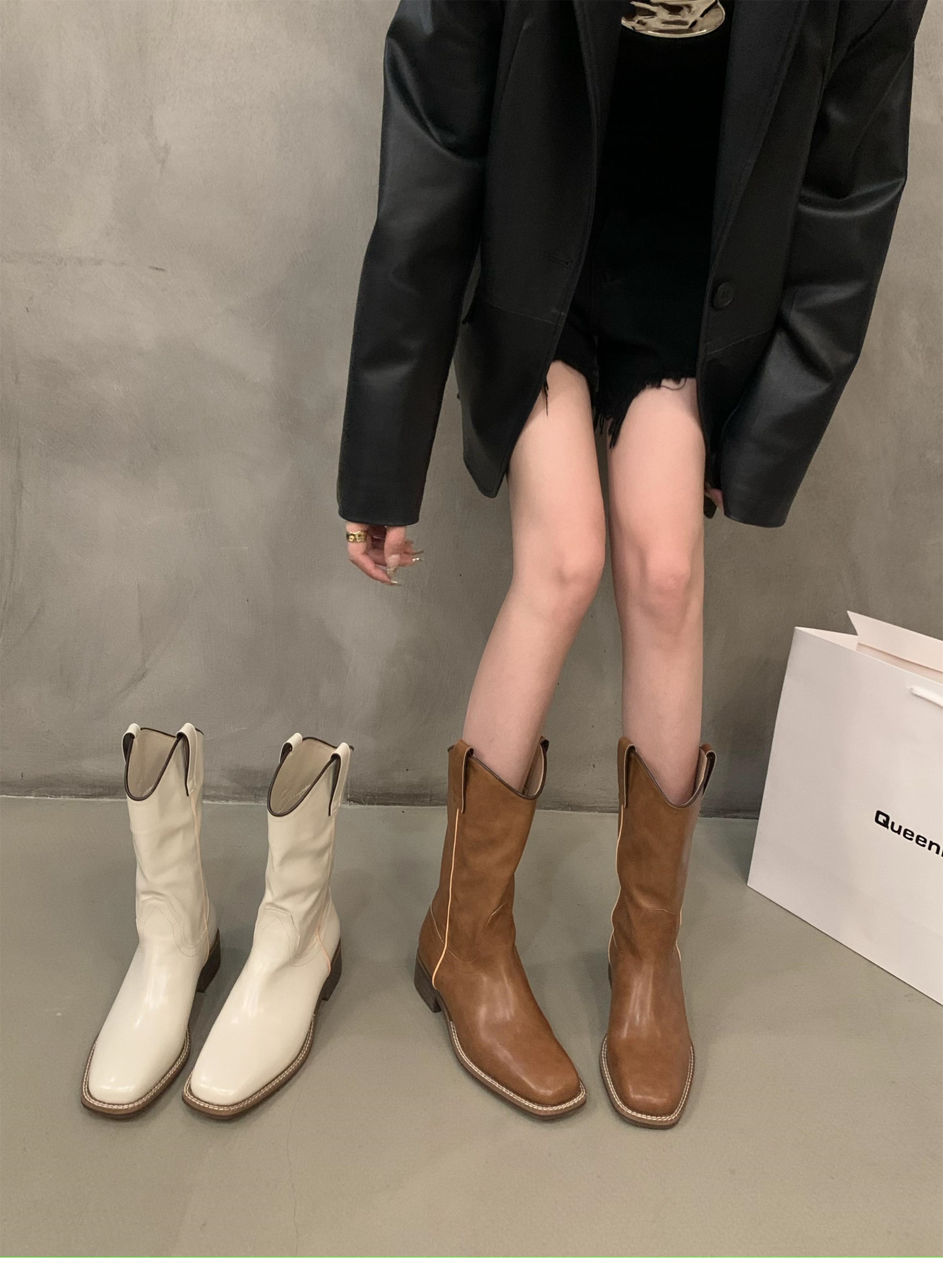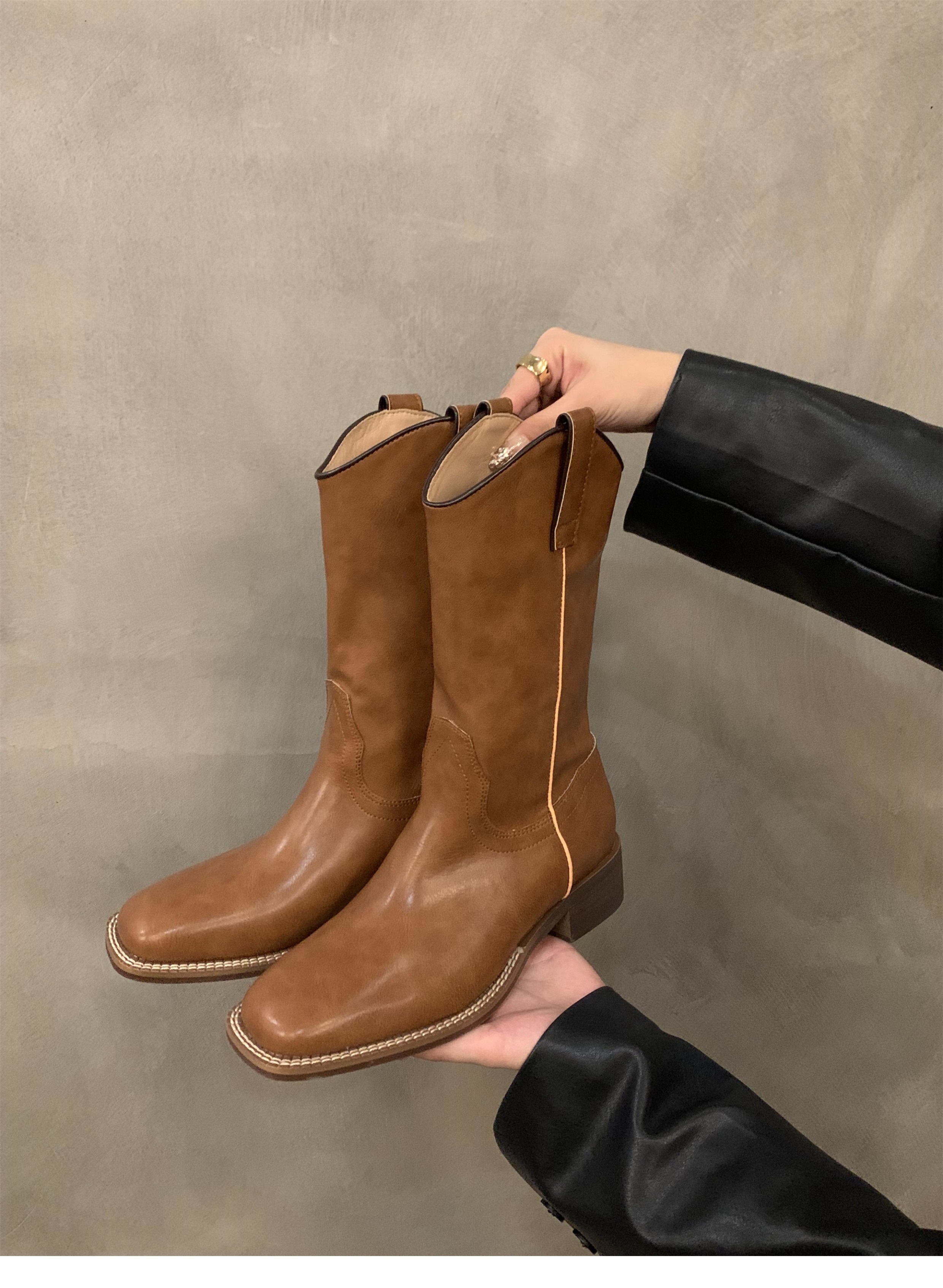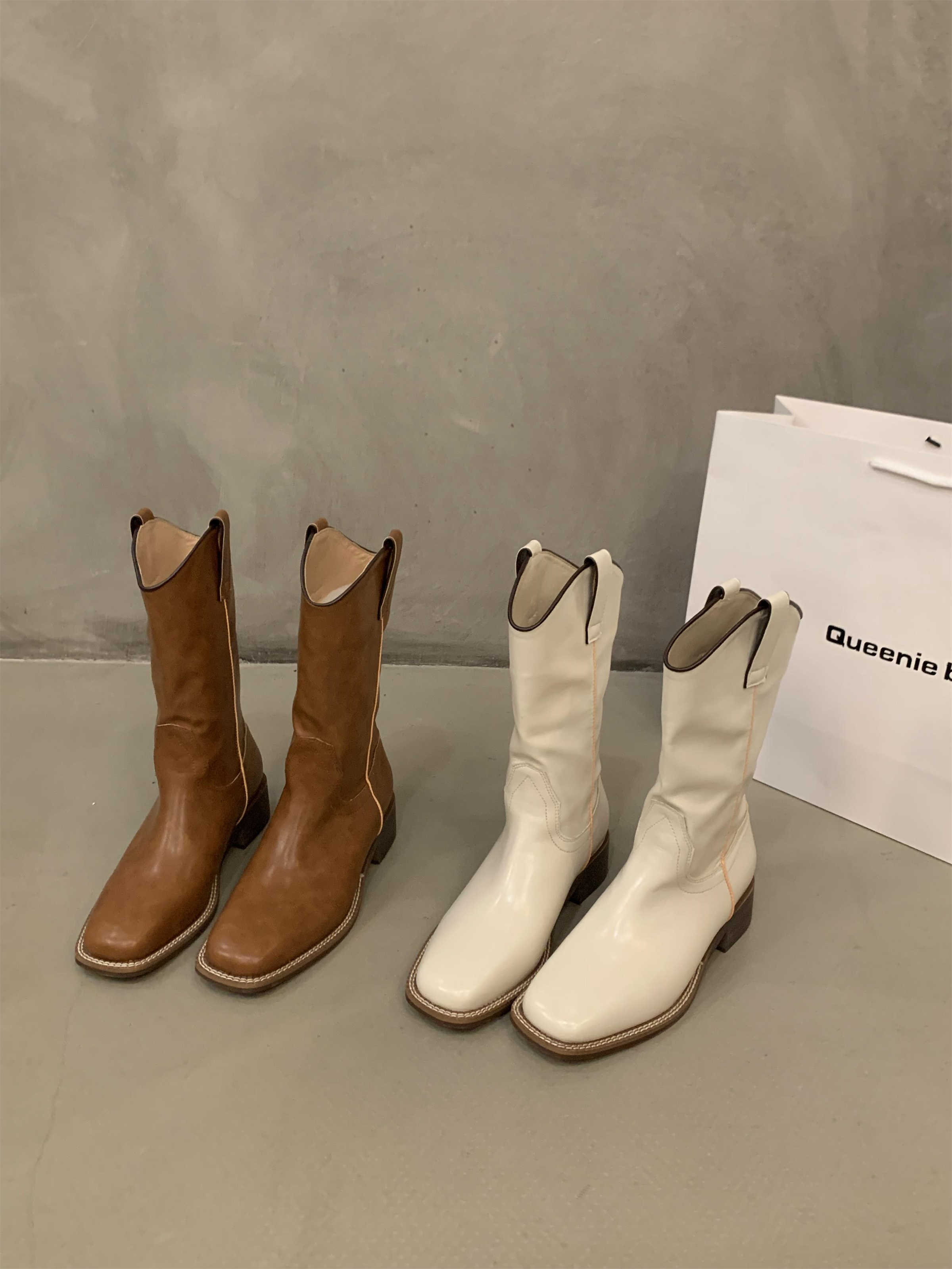 Высокие сапоги, туфли, ботинки, в американском стиле, средней длины