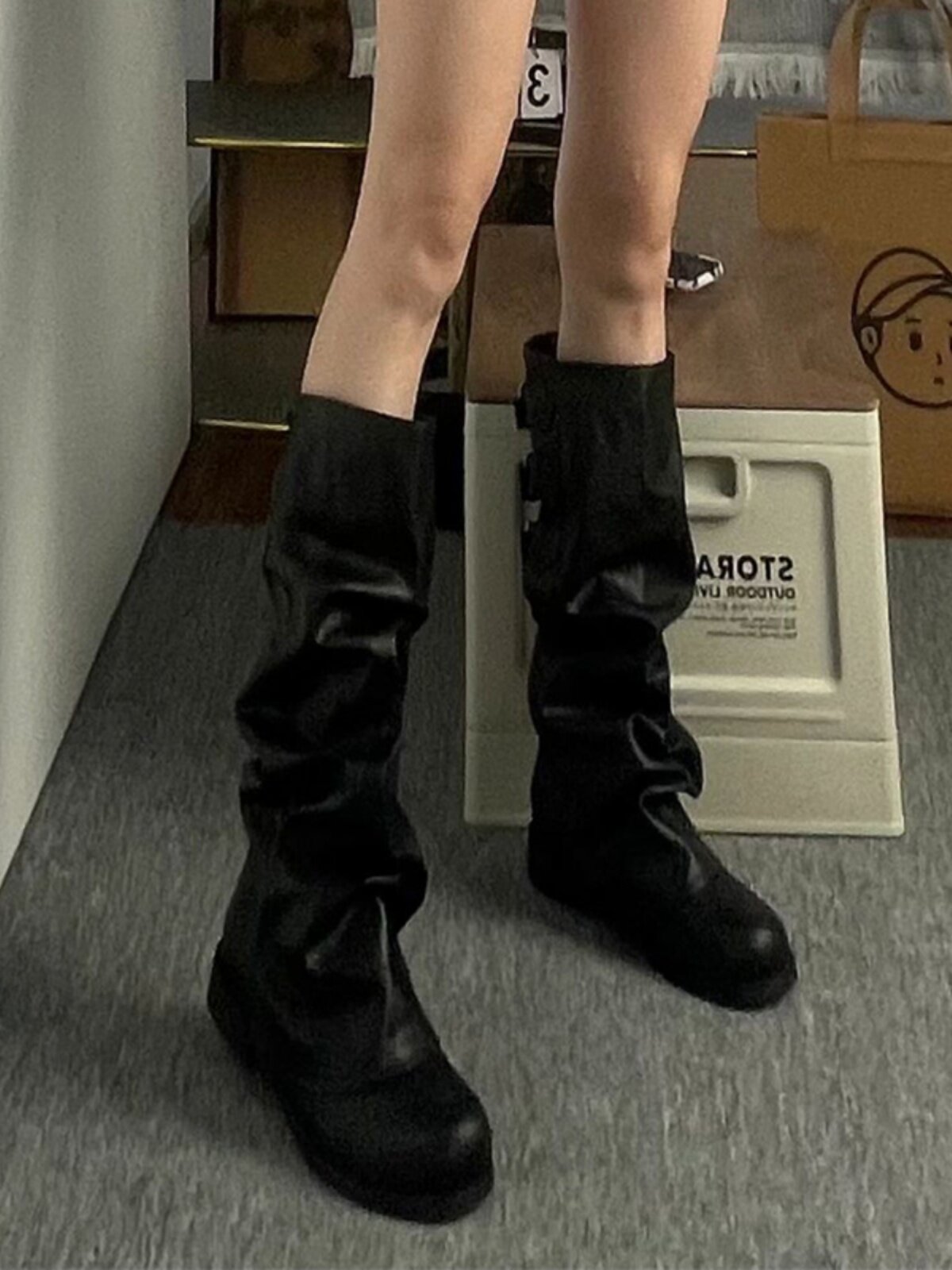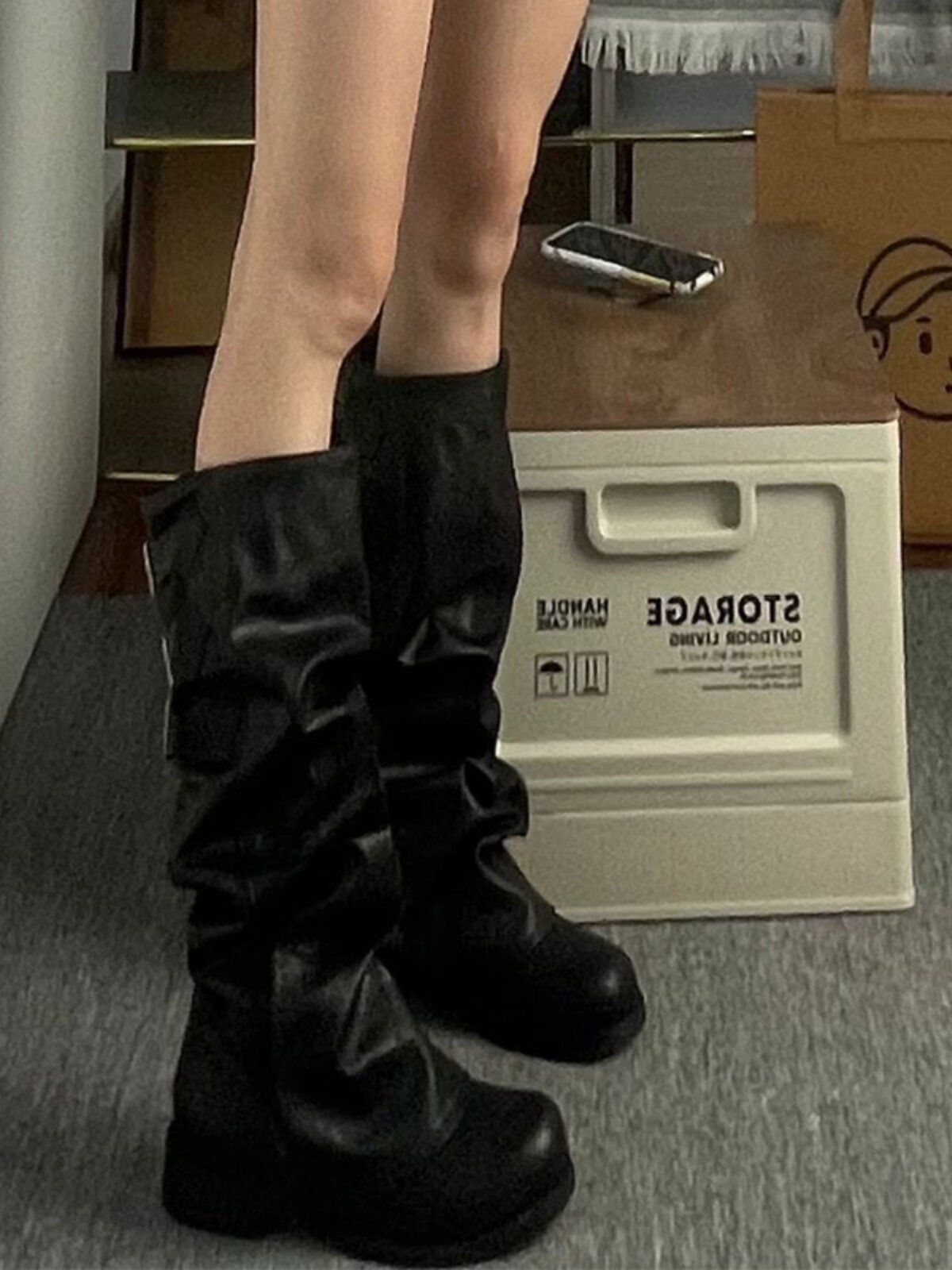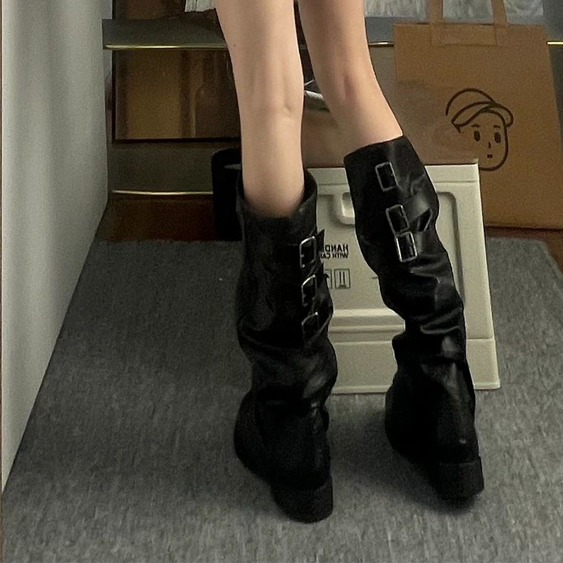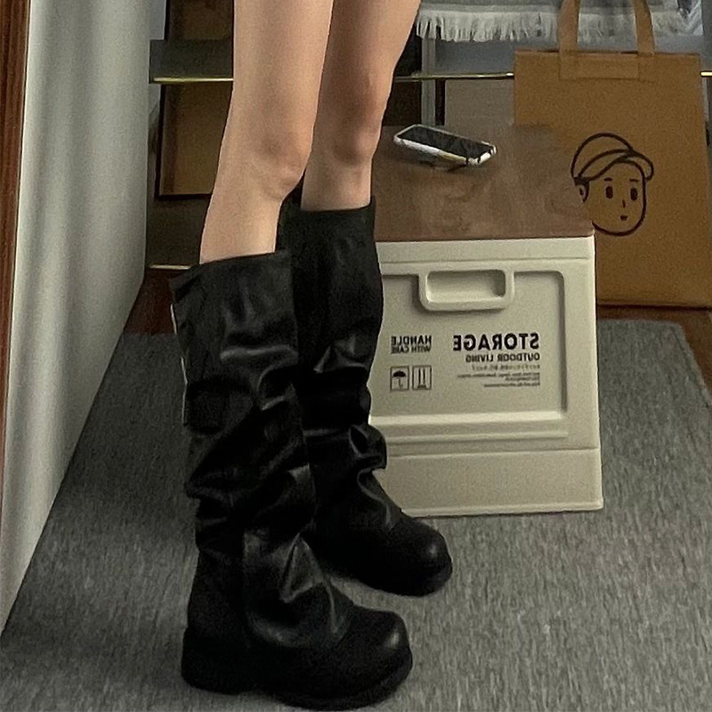 Черные демисезонные высокие сапоги, штаны