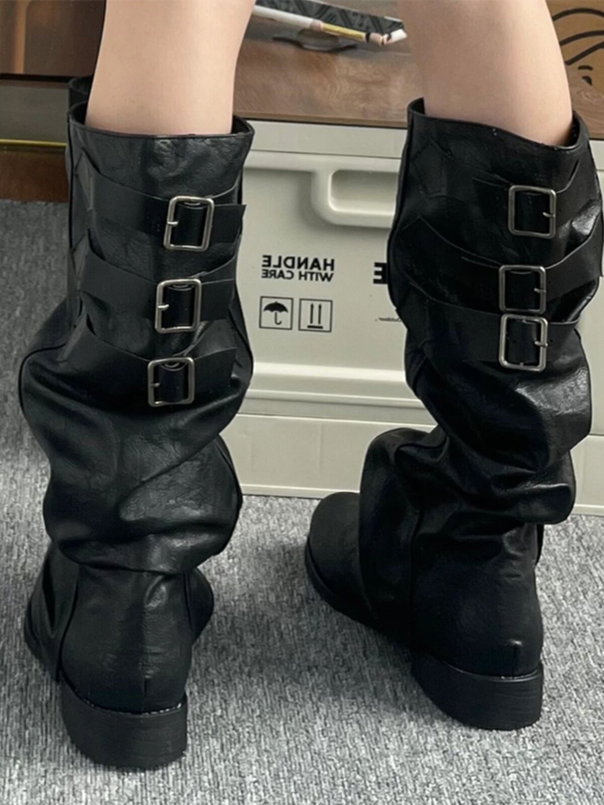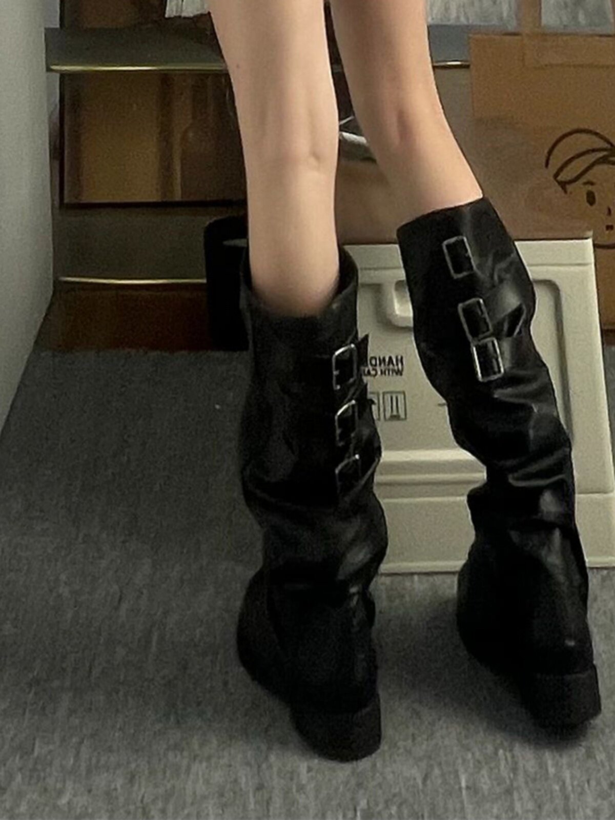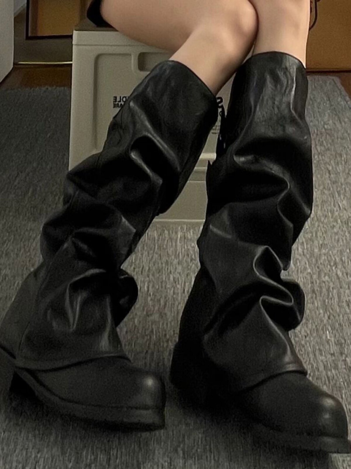 Черные демисезонные высокие сапоги, штаны