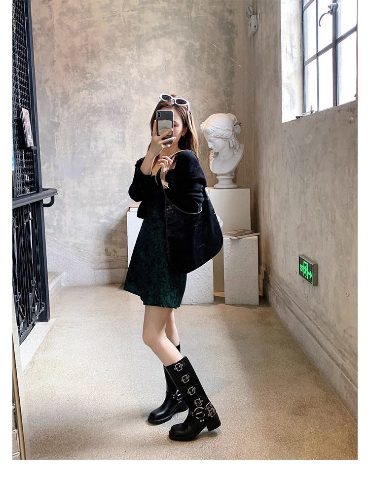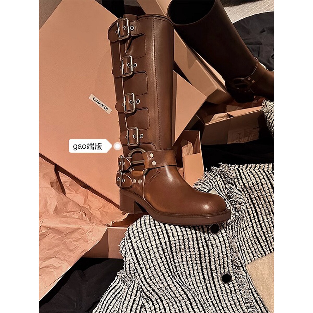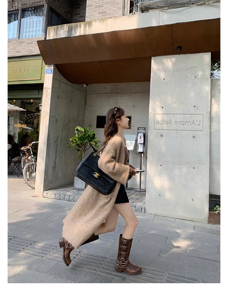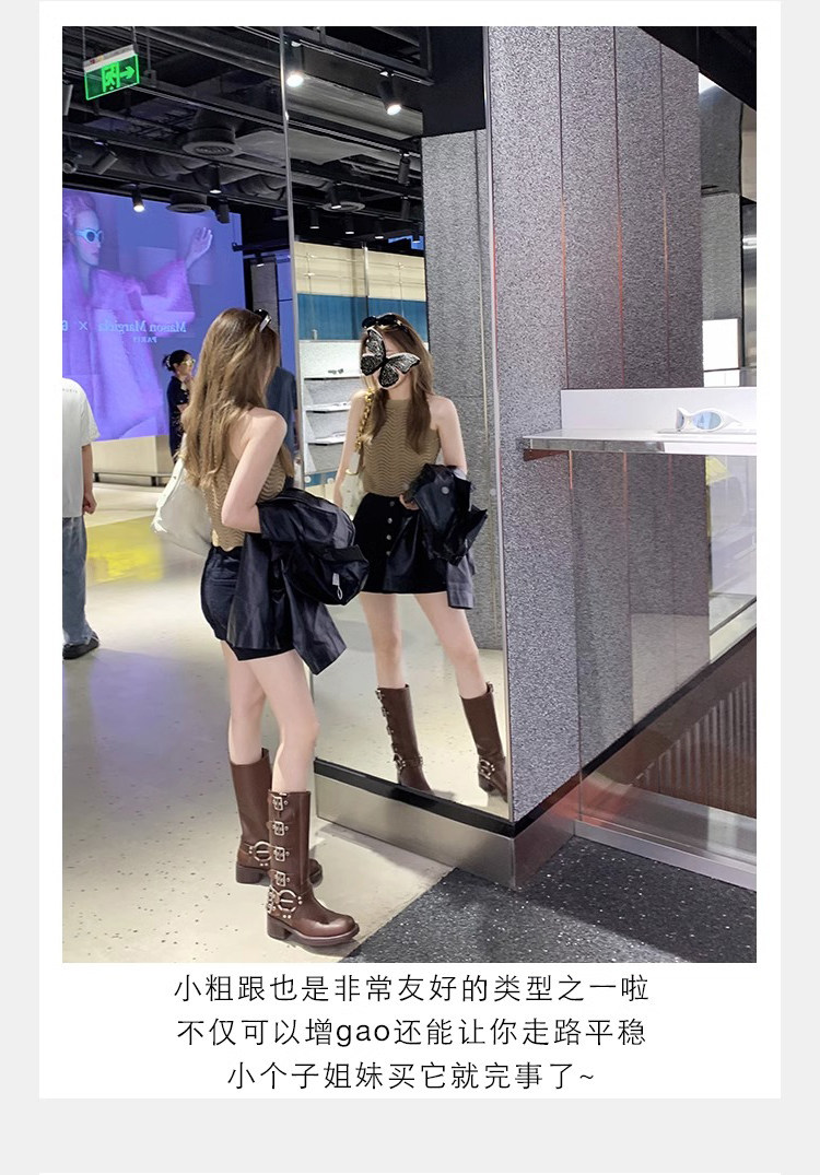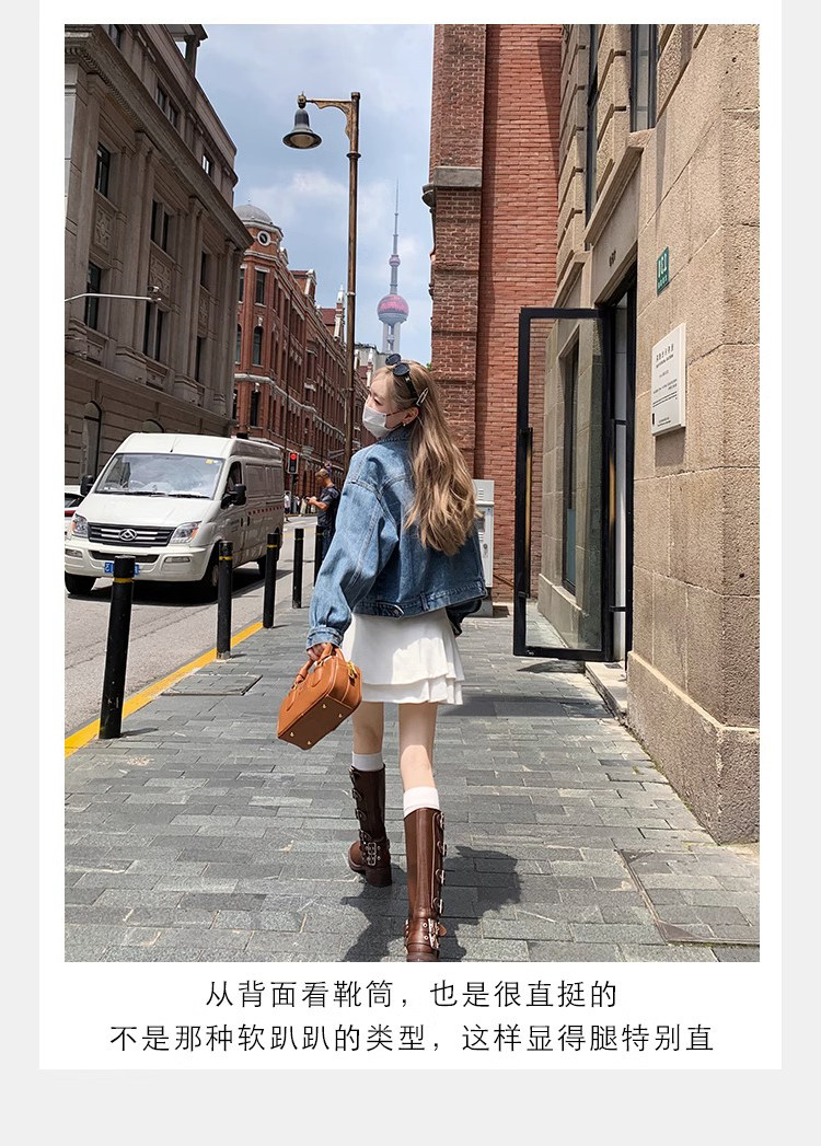 Коричневые длинные ботинки женские толстые ноги и бедра, широкая трубка, толстые мм -сапоги рыцаря ретро западные джинсовые сапоги Большой размер
