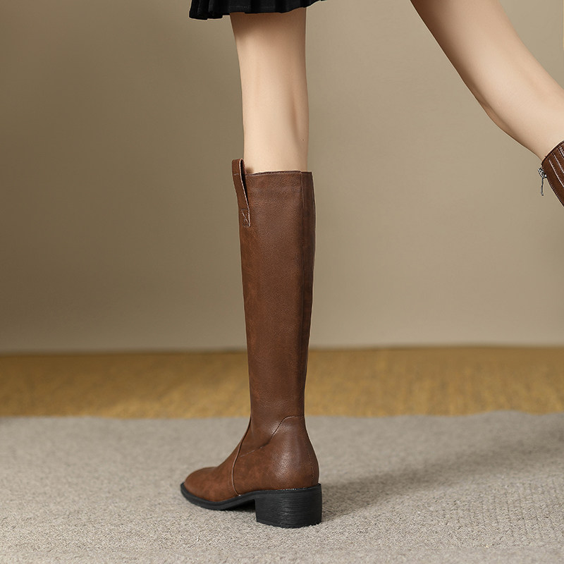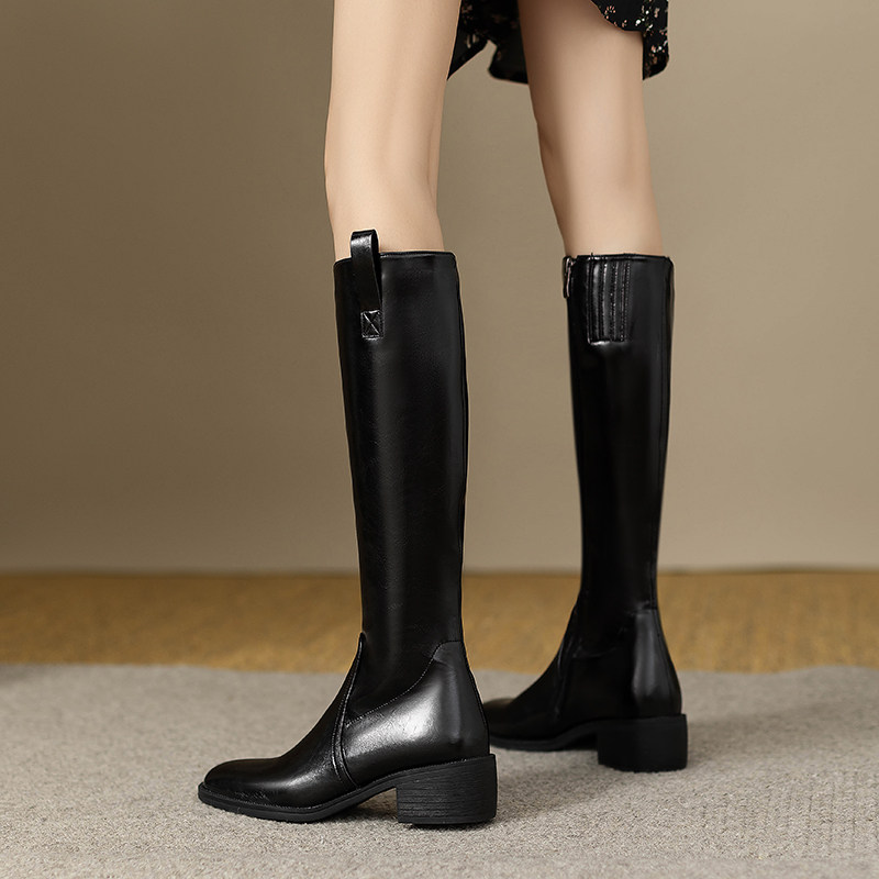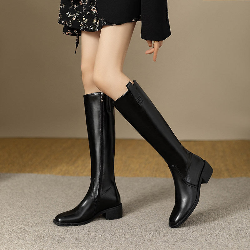 Универсальные высокие сапоги, демисезонные ботинки, из натуральной кожи, по фигуре