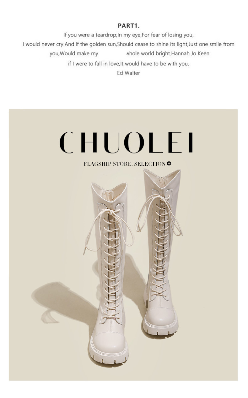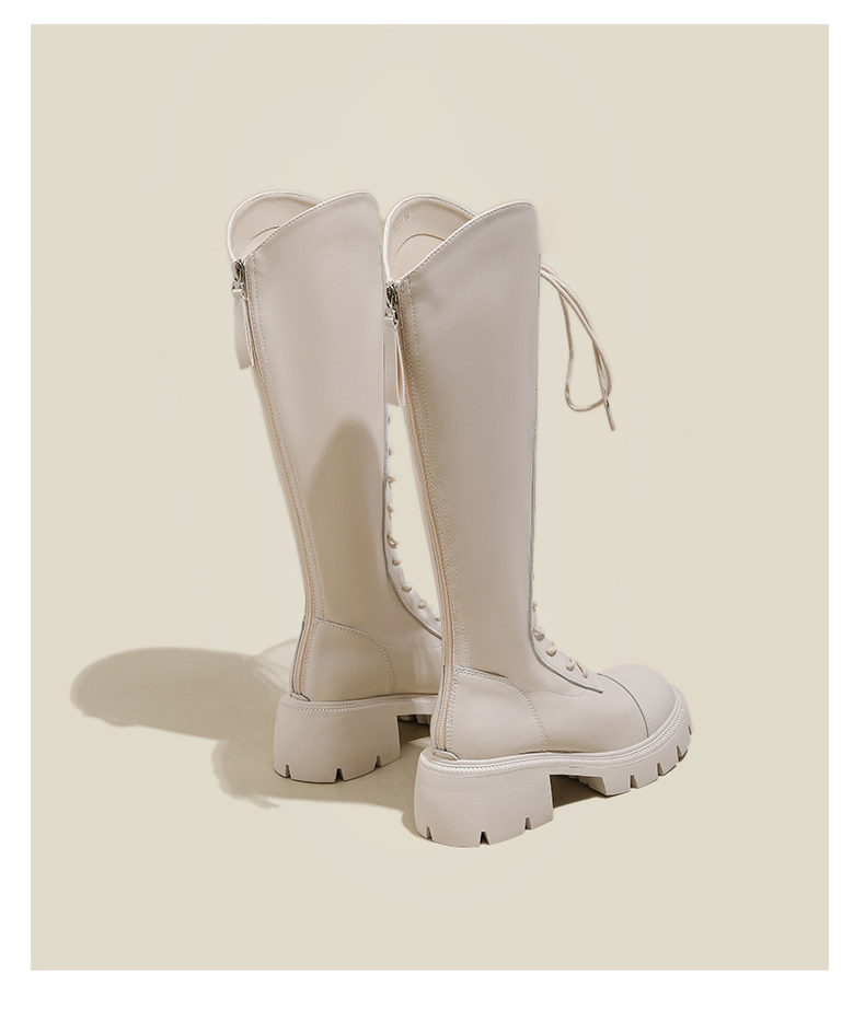 Белые высокие сапоги на платформе, 2023, осенние, тренд сезона, подходит для подростков