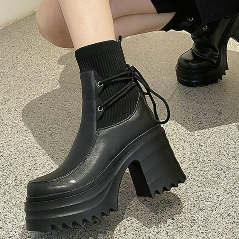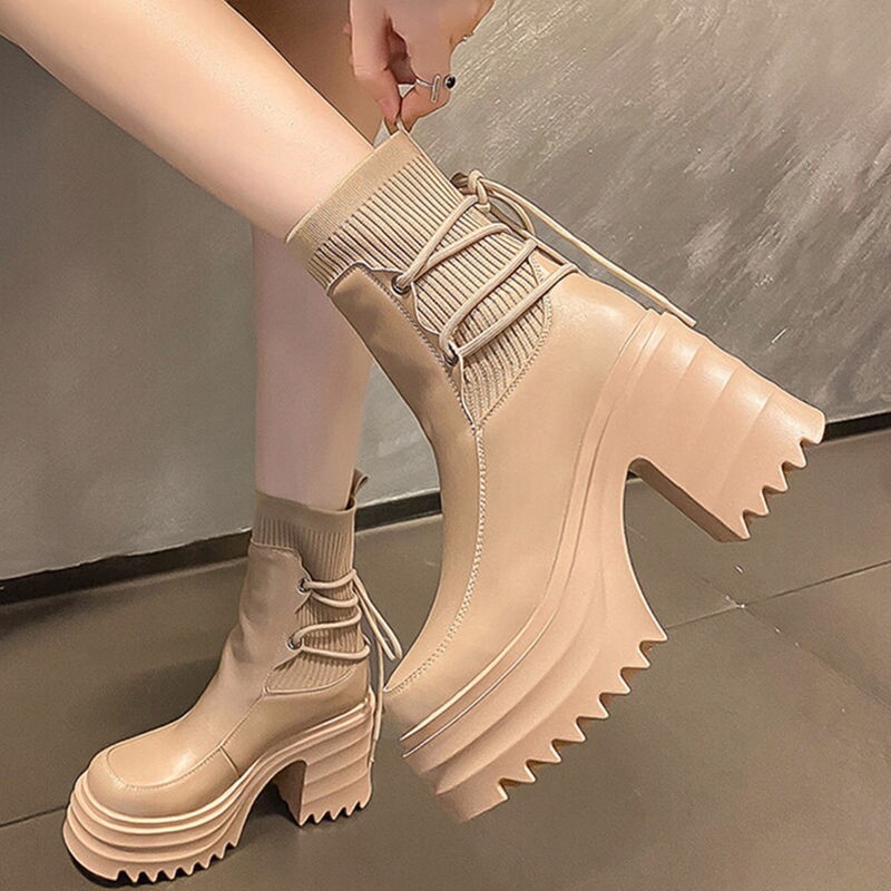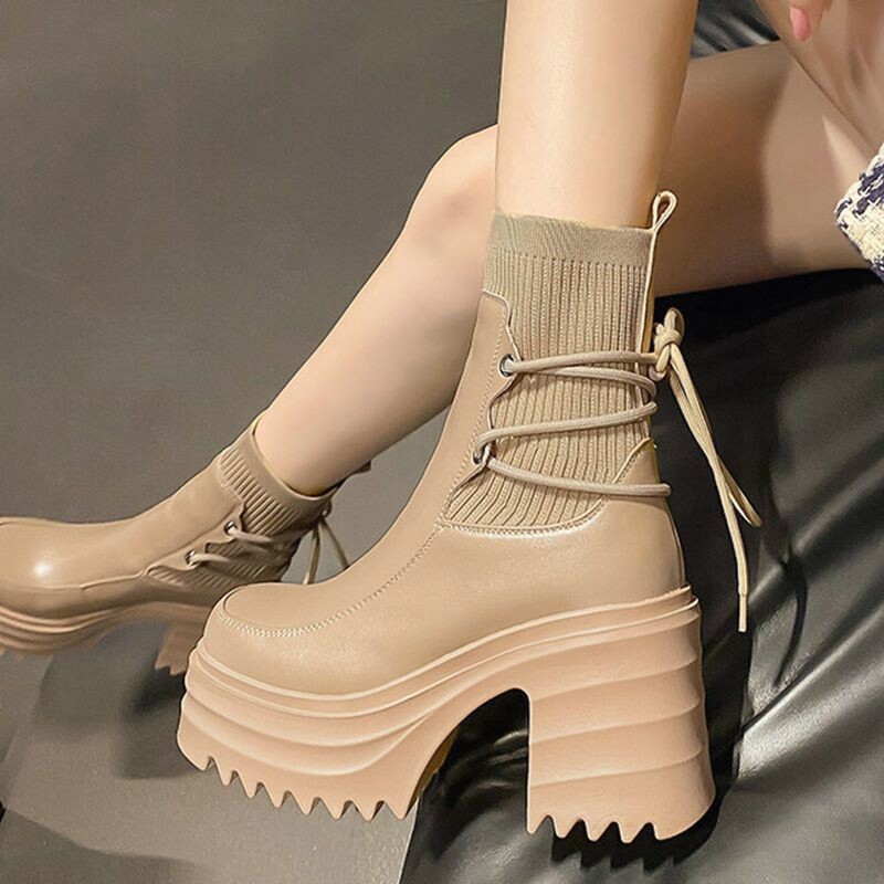 Martens, трикотажный ремень на платформе в английском стиле на высоком каблуке, высокие короткие сапоги, по фигуре, подходит для подростков