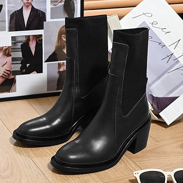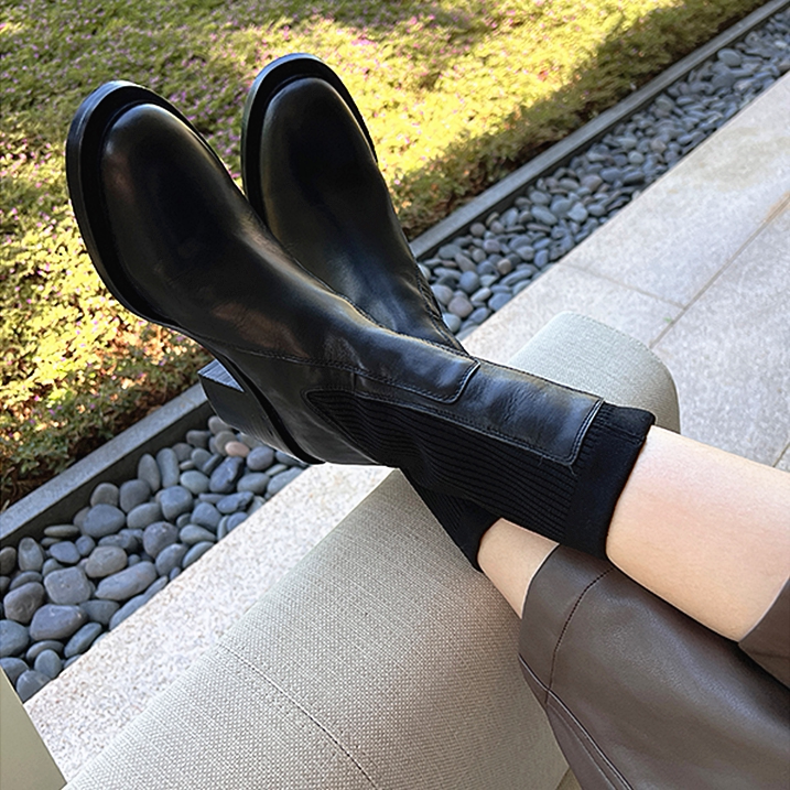Трикотажные челси, европейский стиль, 2023, из натуральной кожи, средней длины