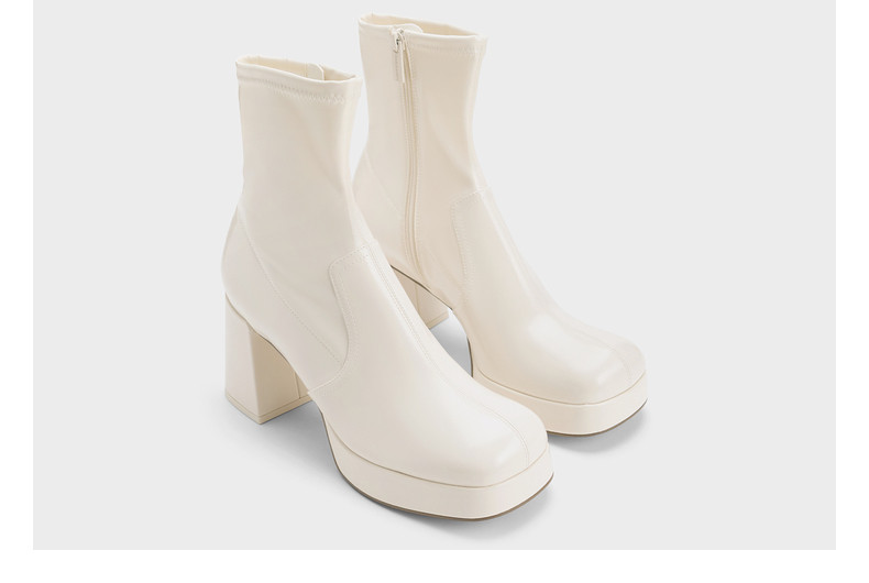CHARLES&KEITH Модные высокие демисезонные короткие сапоги с молнией