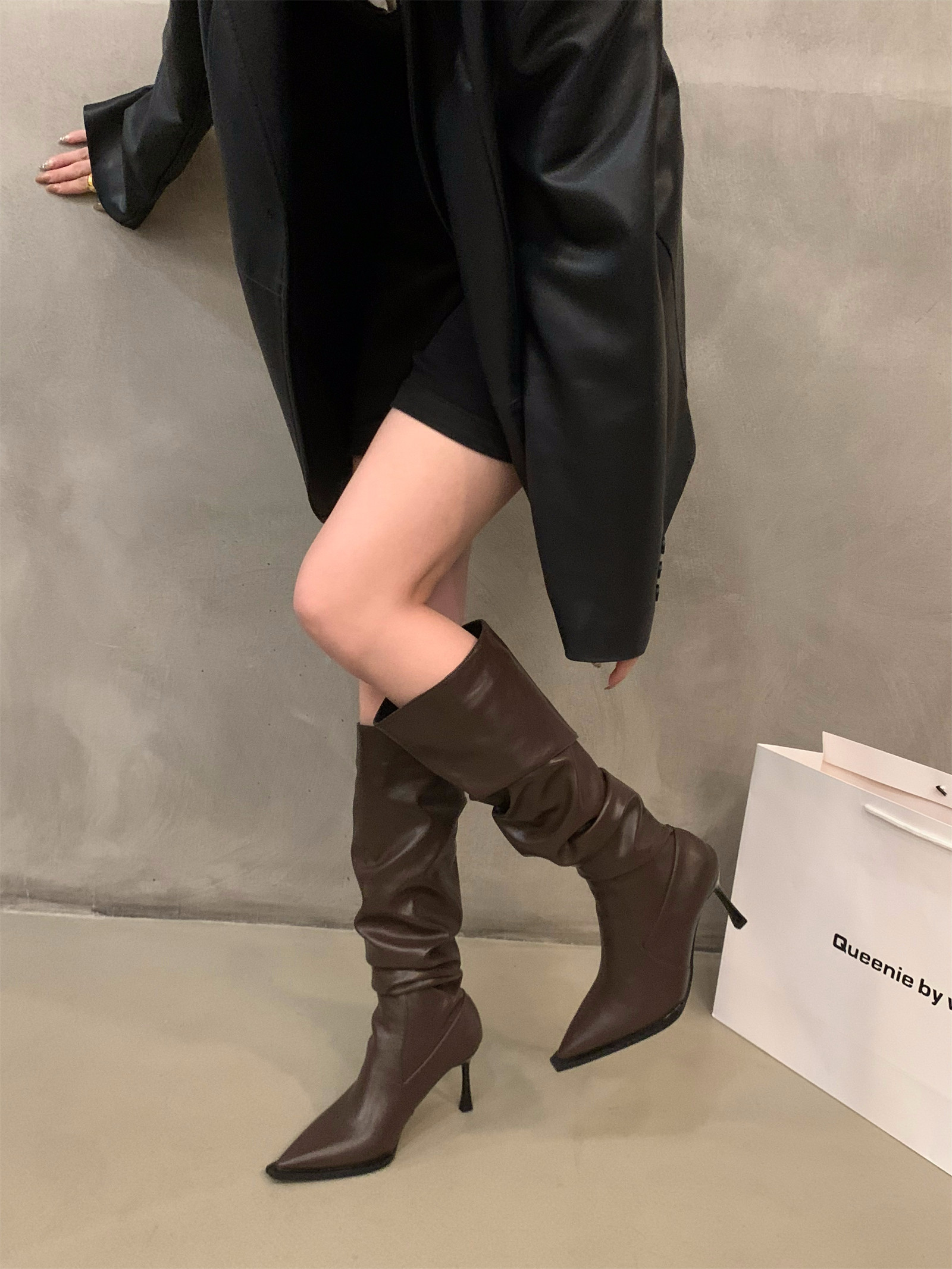 Высокие демисезонные высокие сапоги с заостренным носом, белые ботинки, средней длины