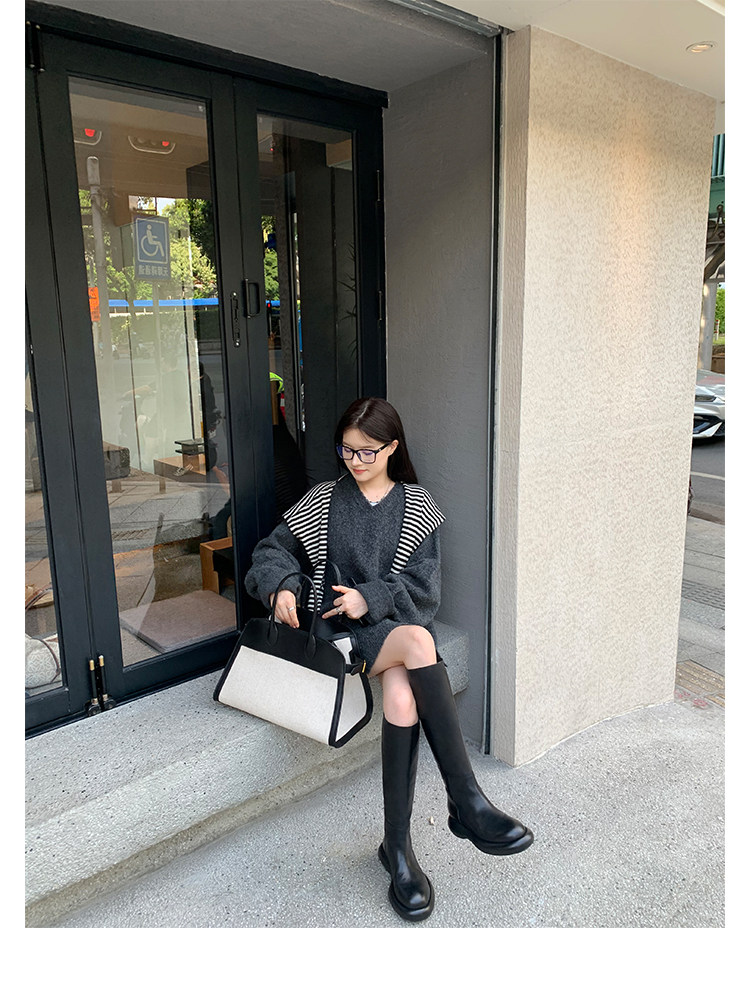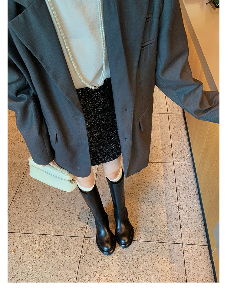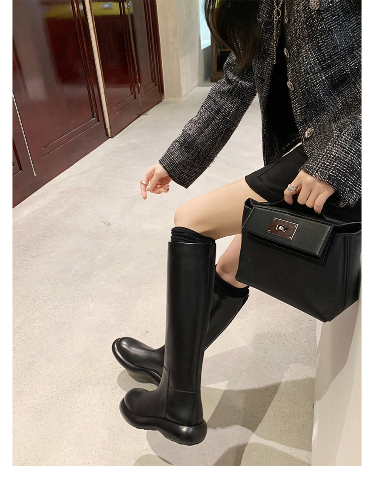 Грейп -мама Studiolee круглый шина и тренажерный дно показал, что ноги прямо увеличиваются и показывают тонкие ретро -рыцарские сапоги самки