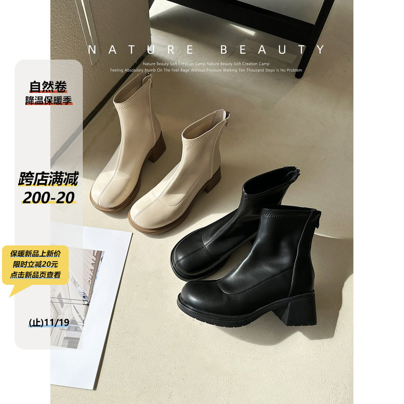 自然卷 Зимние эластичные ботинки, короткие сапоги, по фигуре, 2023, французский стиль