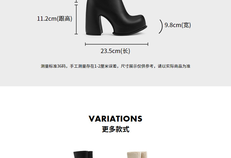 CHARLES&KEITH Осенне-зимние женские ботинки CK1-91900002, непромокаемые модные короткие сапоги на толстом каблуке и платформе с молнией для женщин