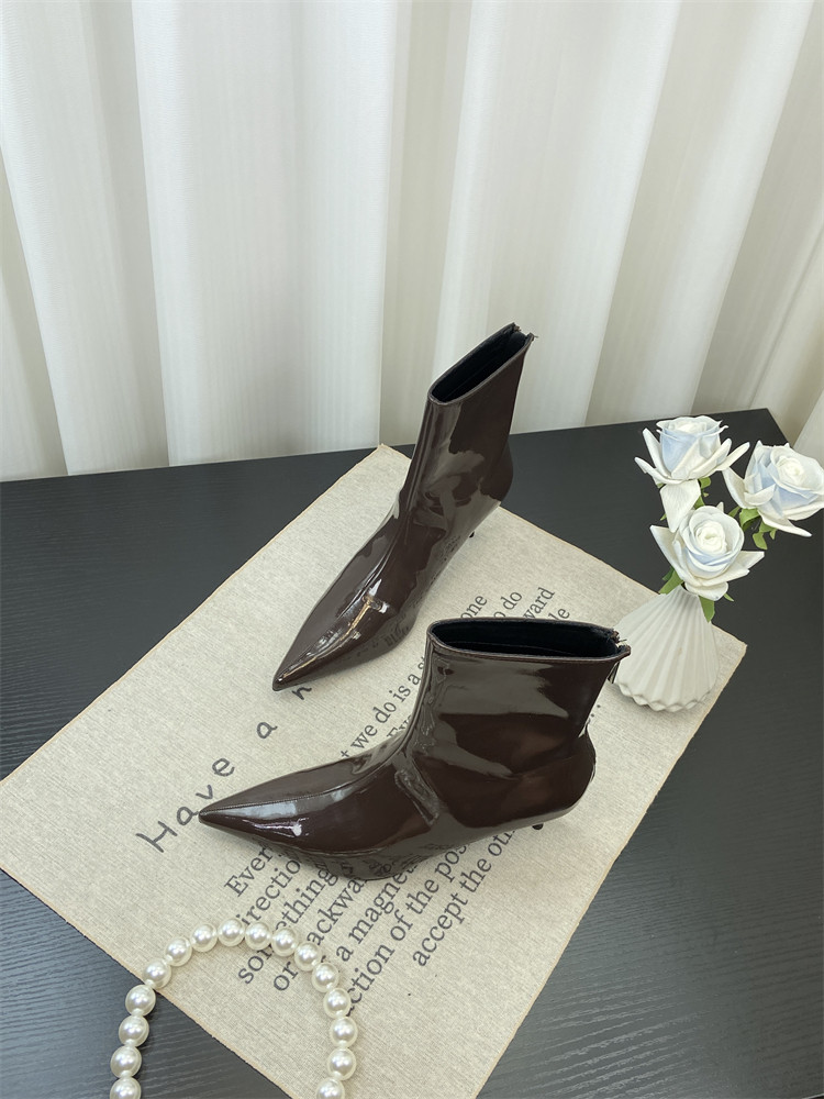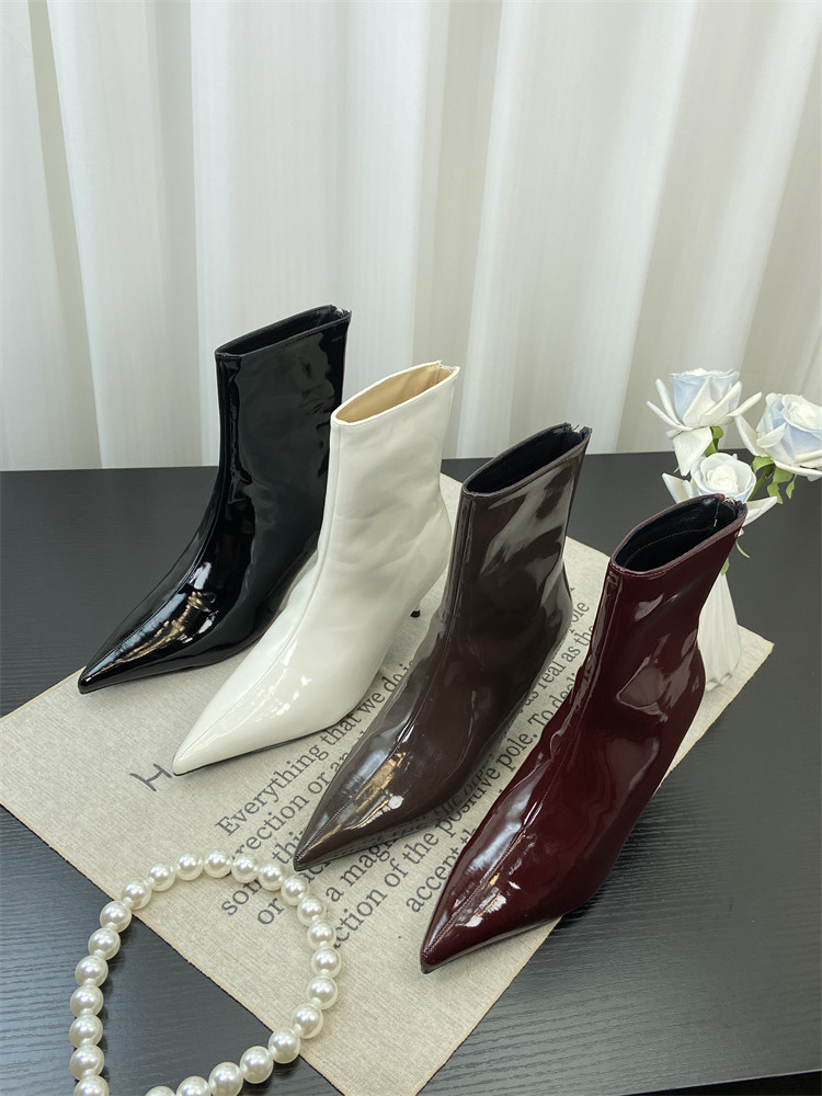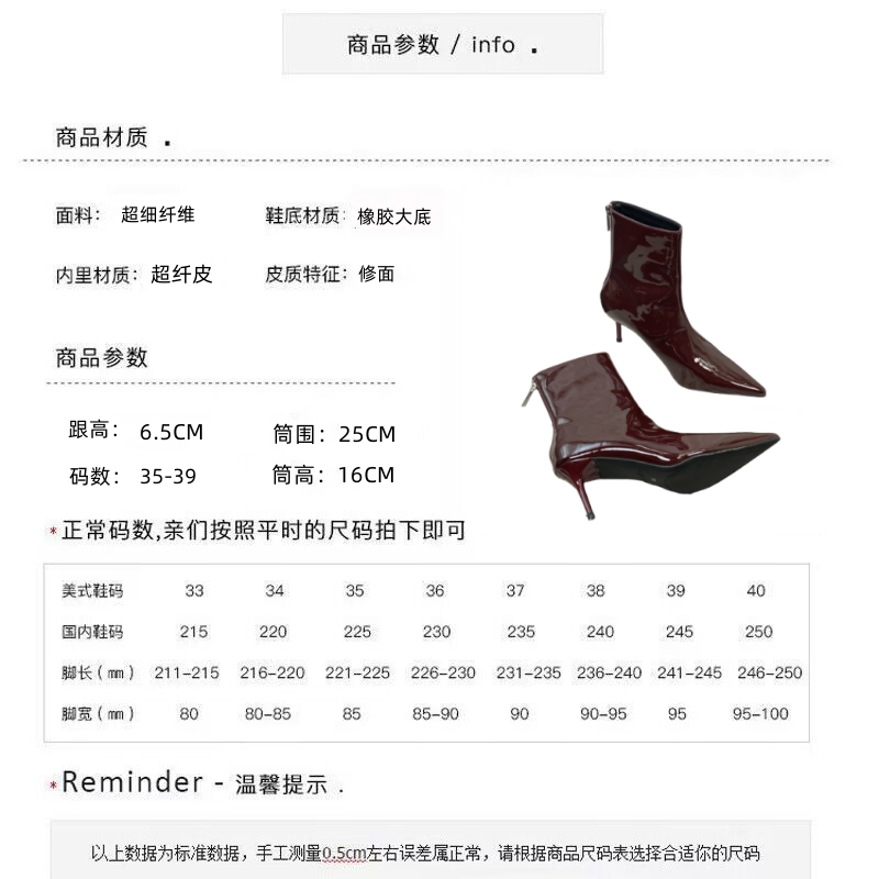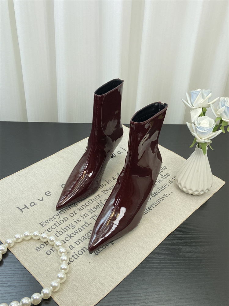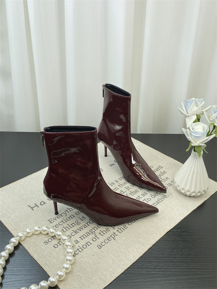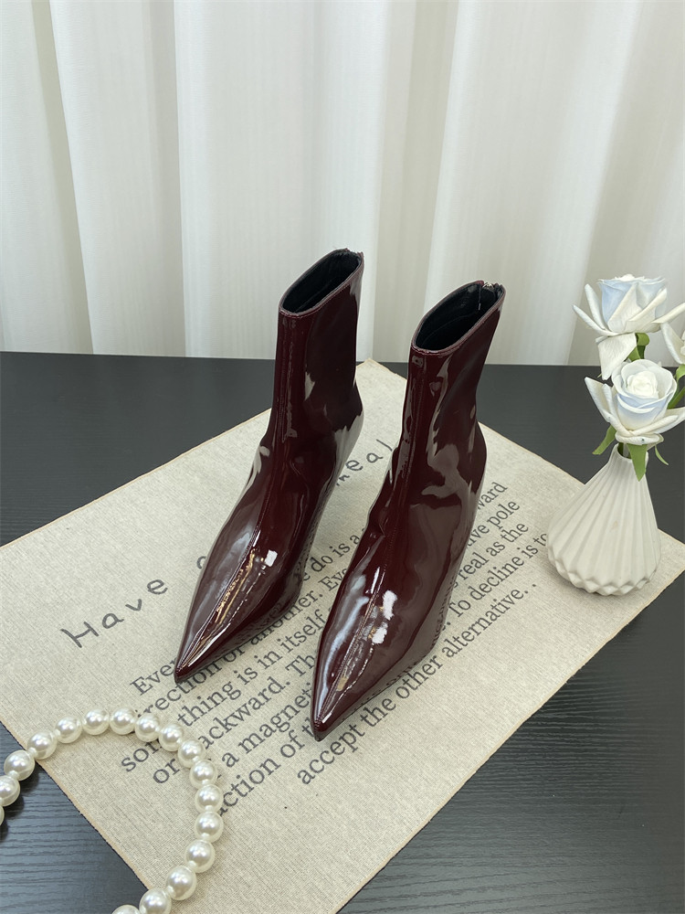 Красные высокие короткие сапоги с заостренным носом, европейский стиль, по фигуре
