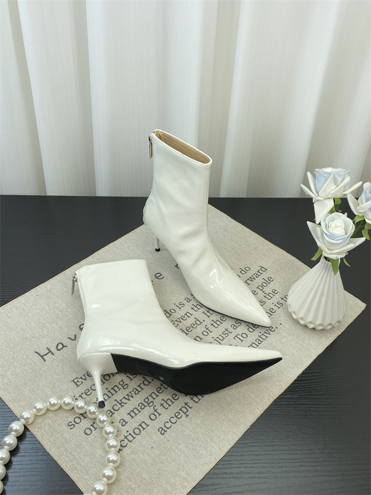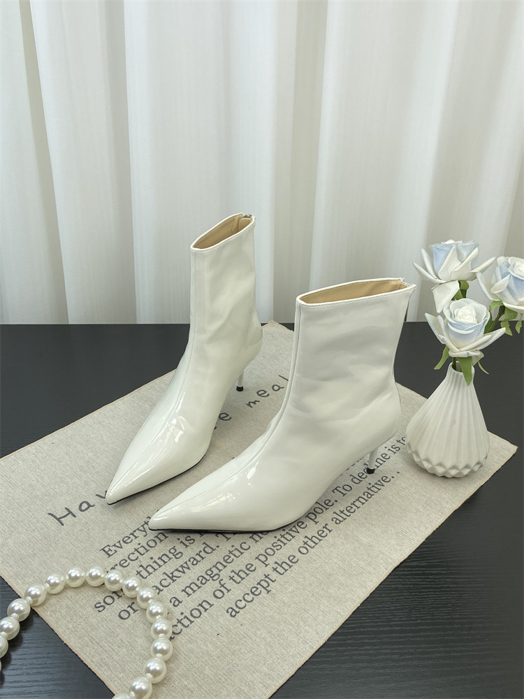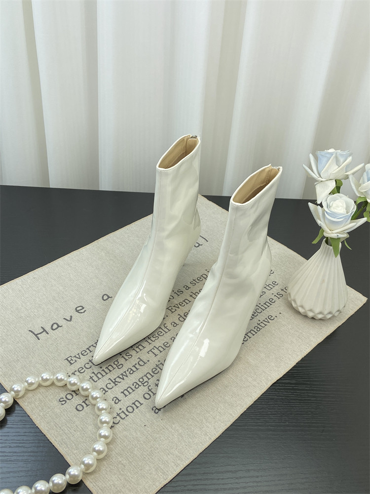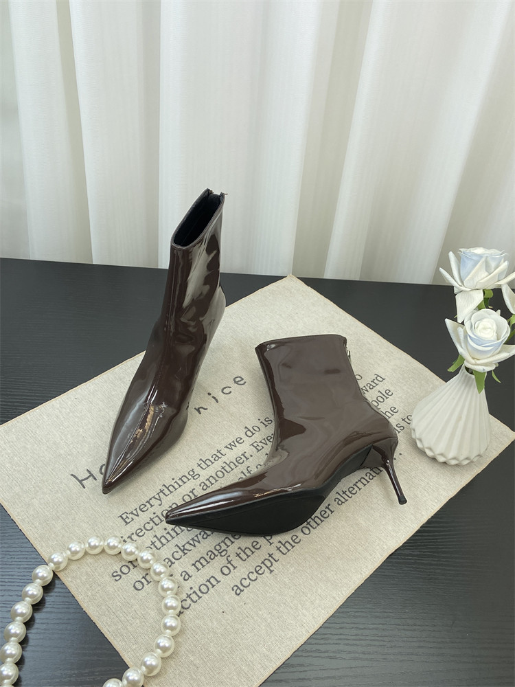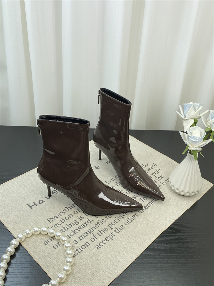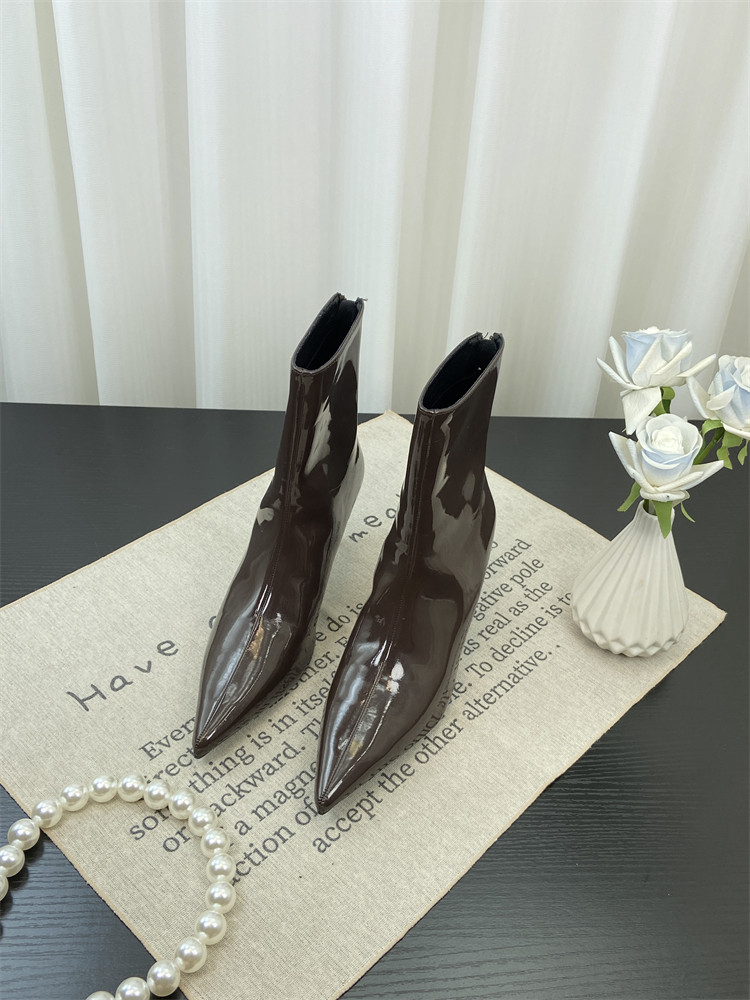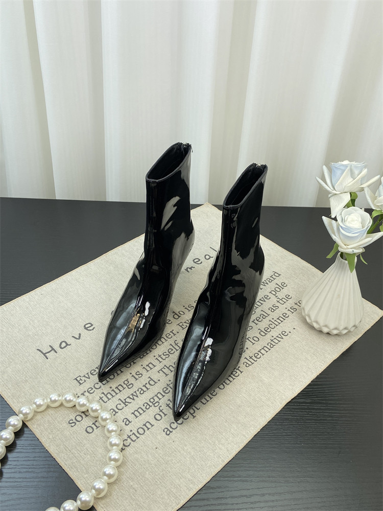 Красные высокие короткие сапоги с заостренным носом, европейский стиль, по фигуре