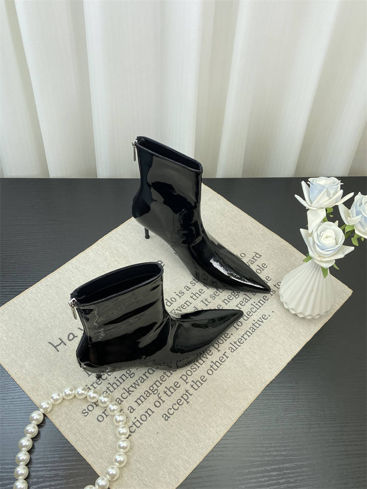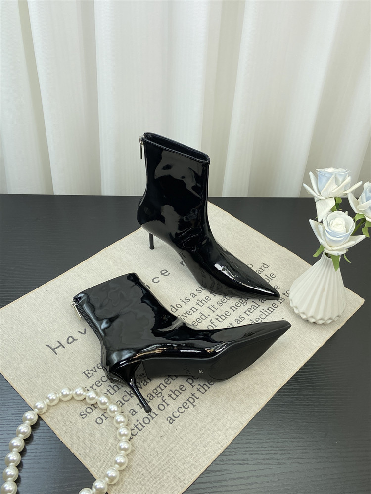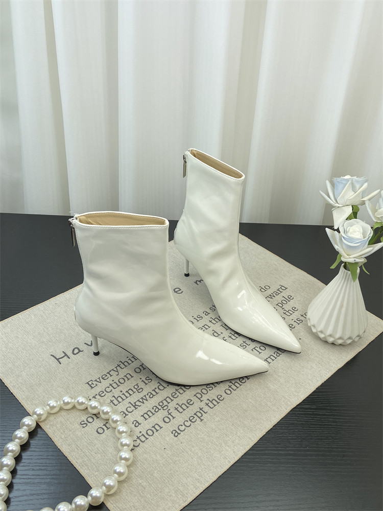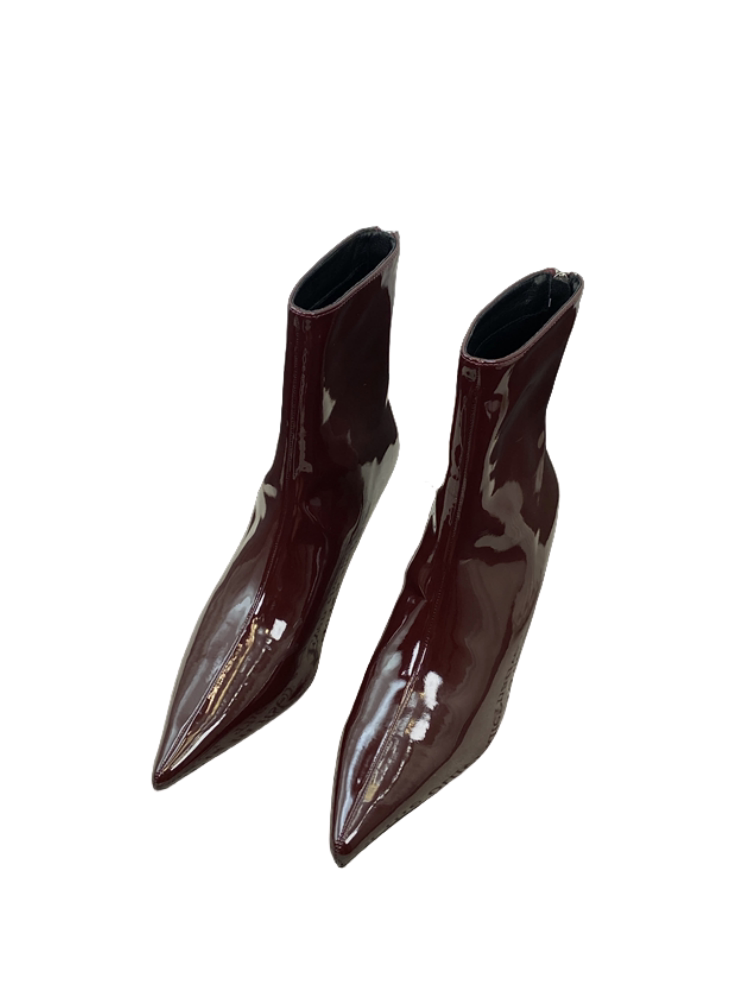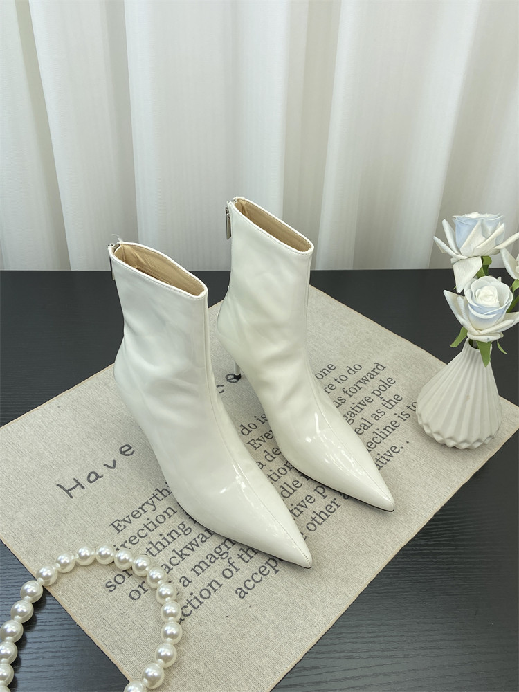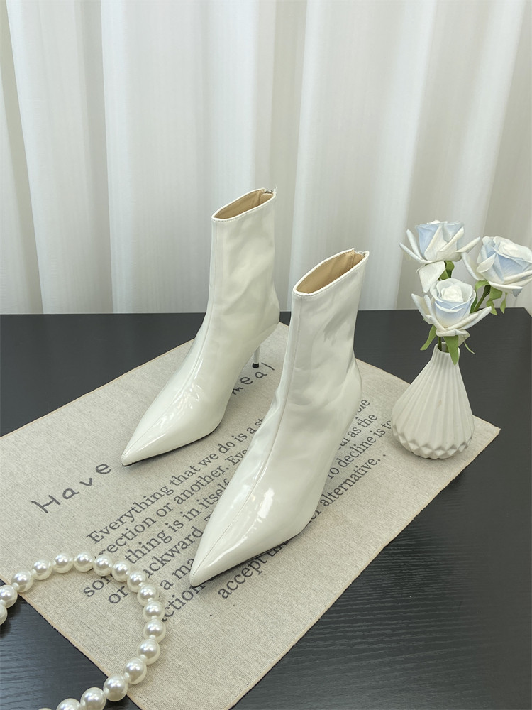 Красные высокие короткие сапоги с заостренным носом, европейский стиль, по фигуре