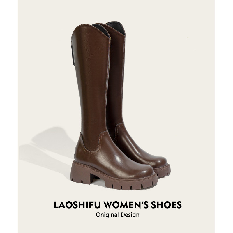 Демисезонные утепленные высокие сапоги на платформе, из натуральной кожи, по фигуре