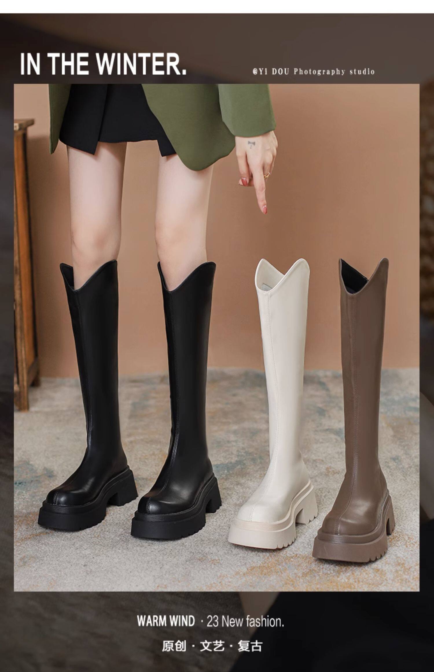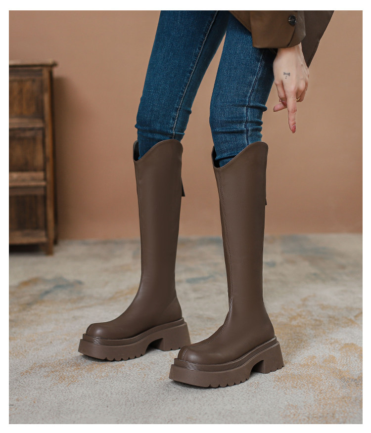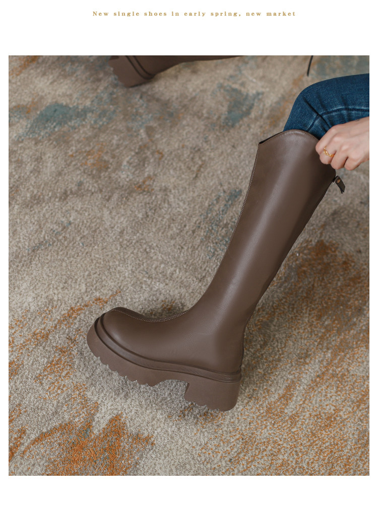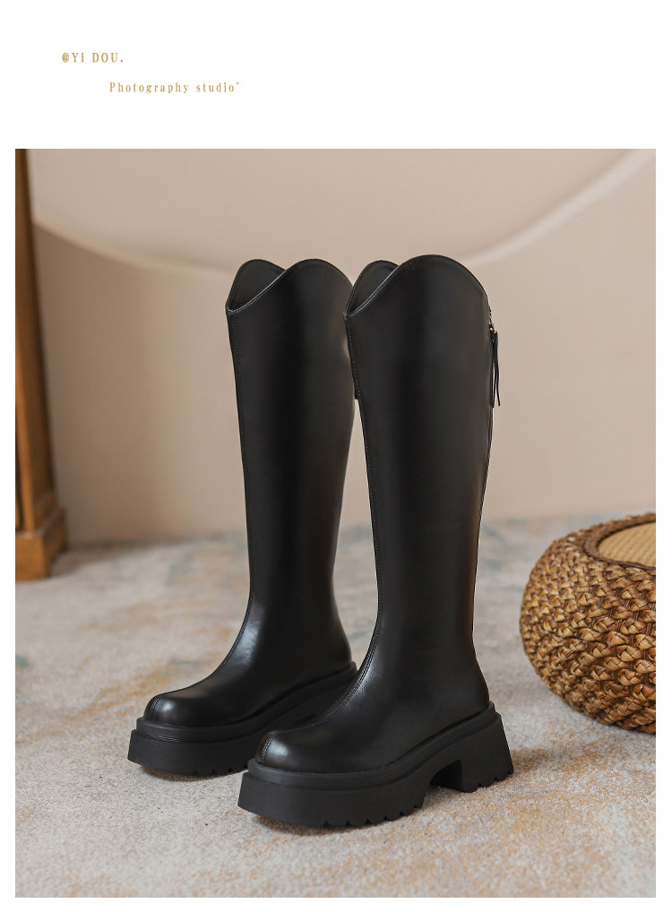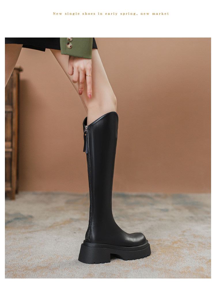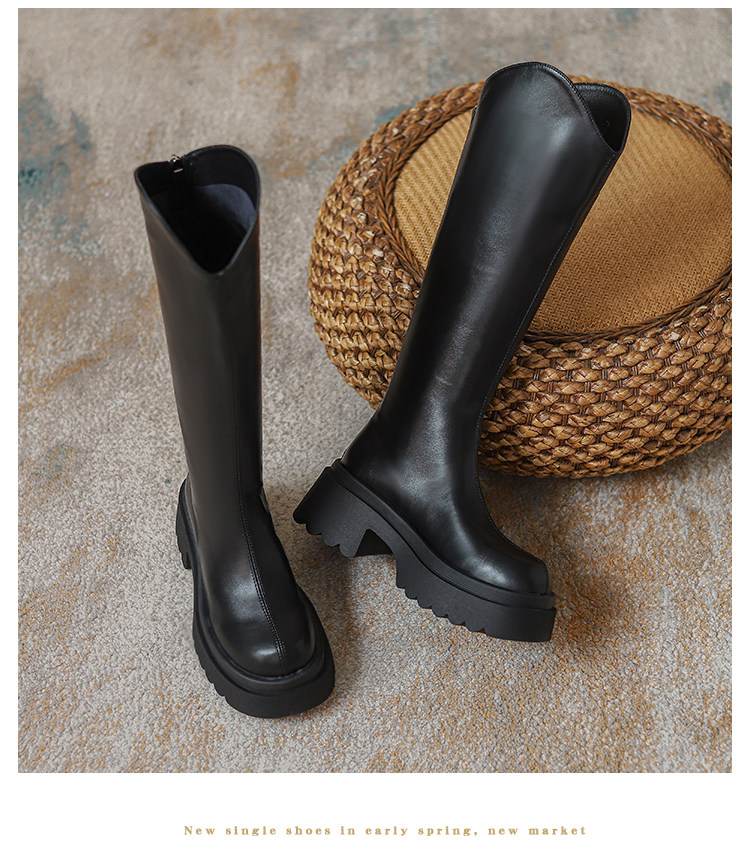 Ботинки, небольшие черные высокие сапоги на платформе, коллекция 2023, подходит для подростков, по фигуре