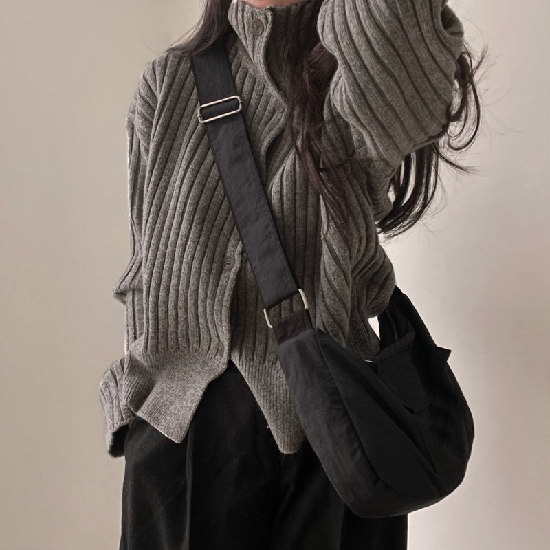 Deeptown Turtleneck Vintage Grey Cardigan Korean Style Knitt