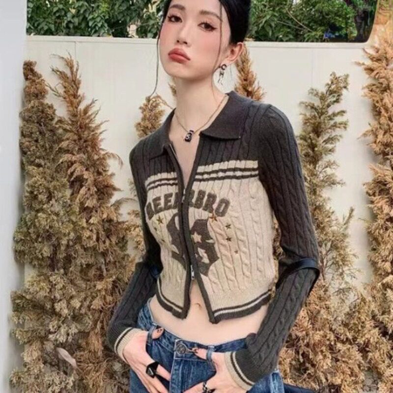 Deeptown Y2k винтажный укороченный свитер со звездами женский корейский стиль гранж вязаный кардиган Kpop трикотаж на молнии Gyaru уличная осеньUSD 34.48 ~ USD34.48/piece
