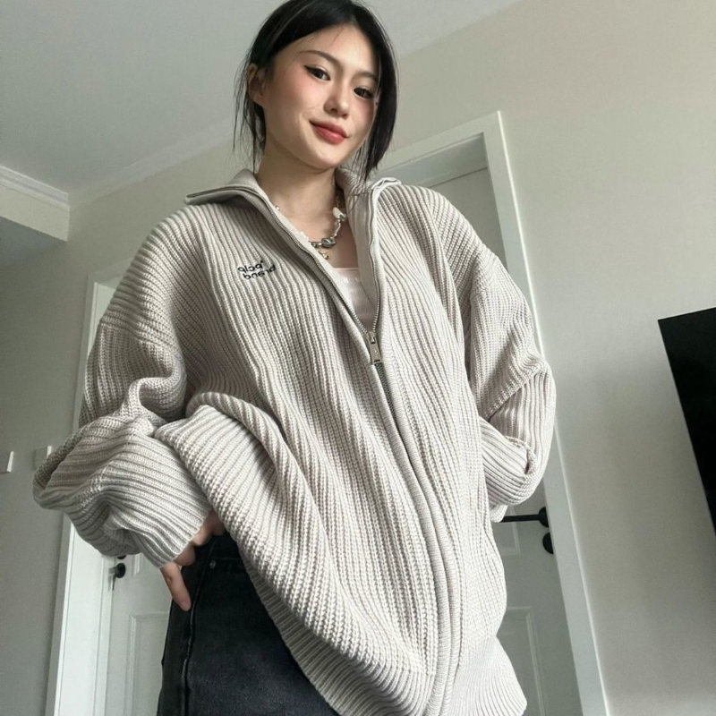 Винтажный серый свитер Deeptown, женский корейский стиль, вязаный кардиган на молнии, японская модная уличная одежда, трикотаж большого размера, эстетичныйUSD 35.65 ~ USD35.65/piece
