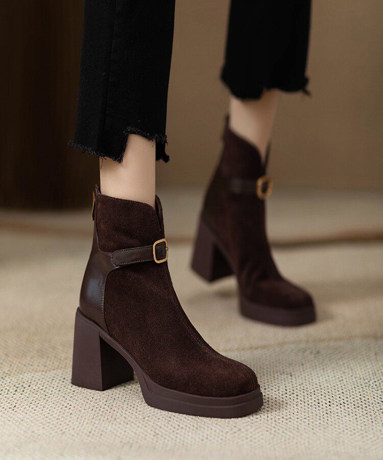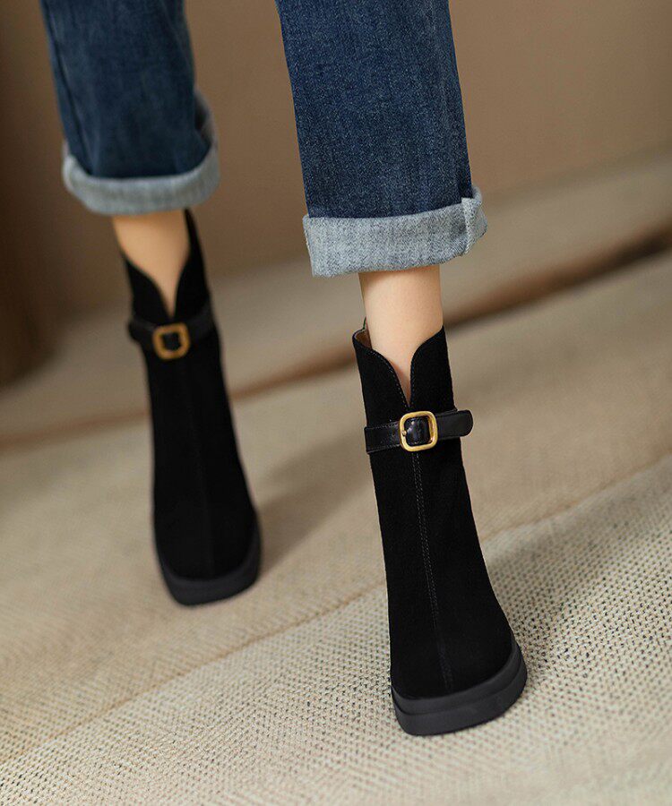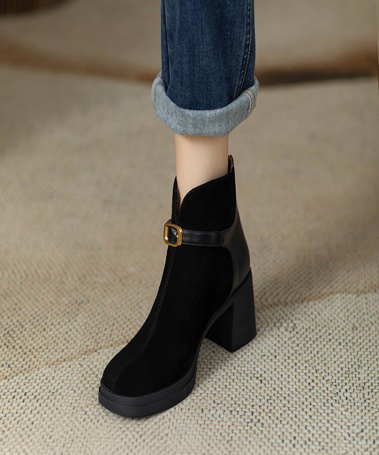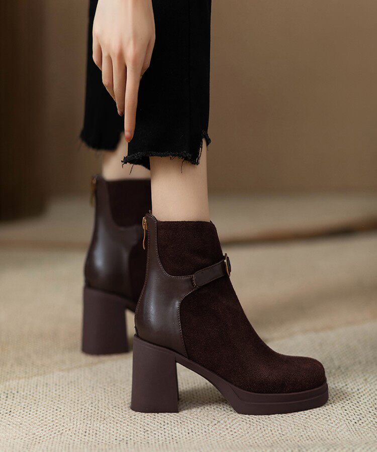 Матовые высокие демисезонные короткие сапоги с молнией на платформе, из натуральной кожи