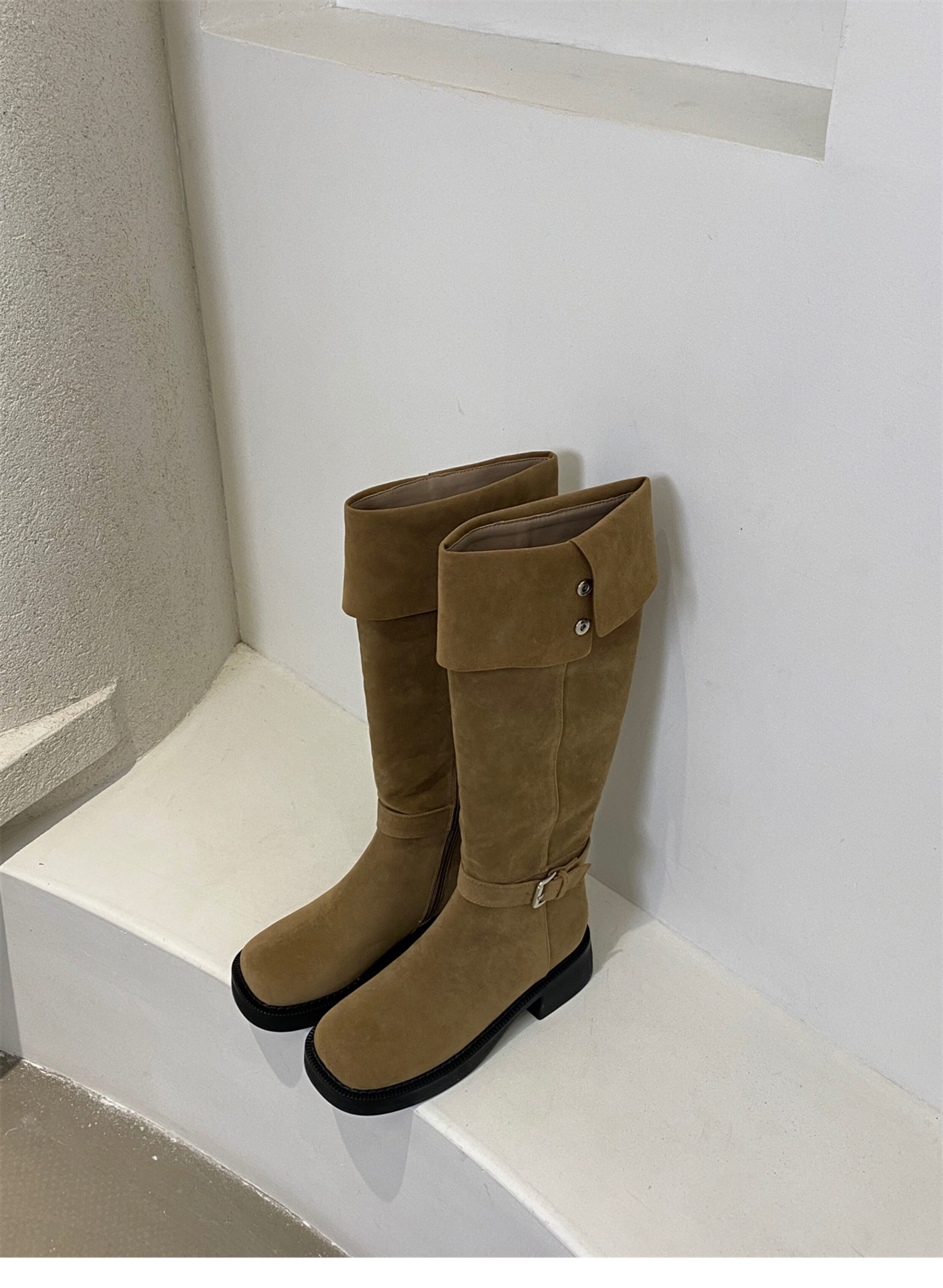 Демисезонные высокие сапоги на платформе, замшевые хаки ботинки, средней длины