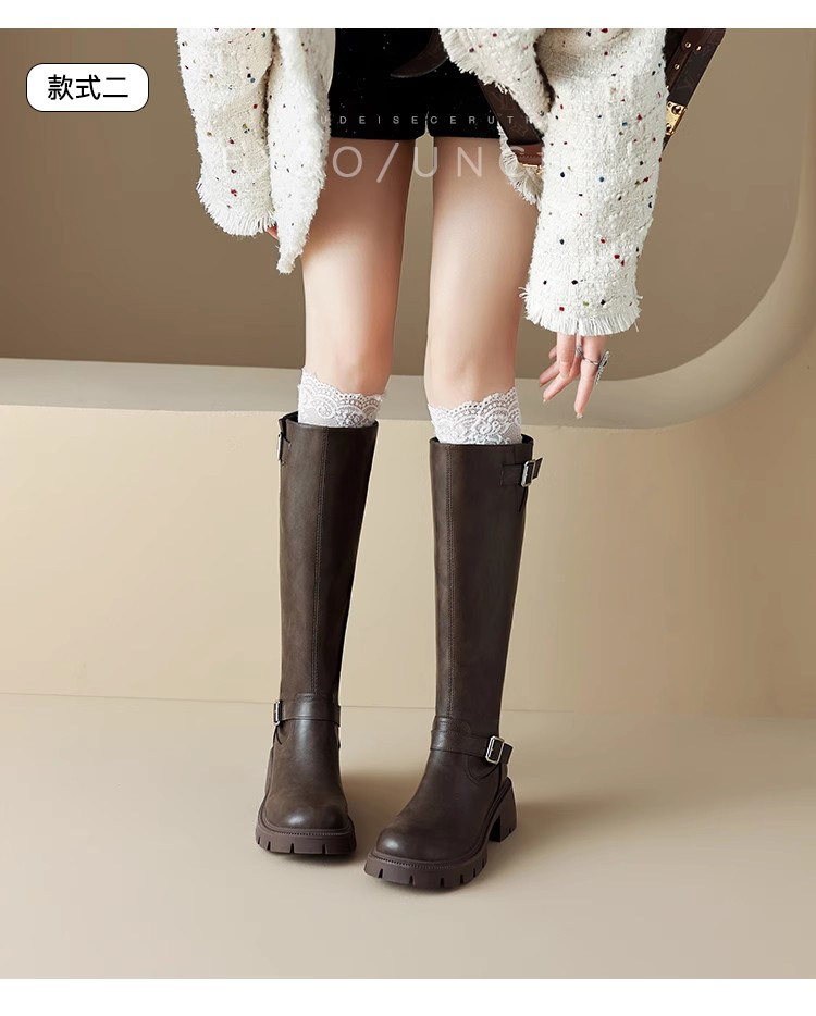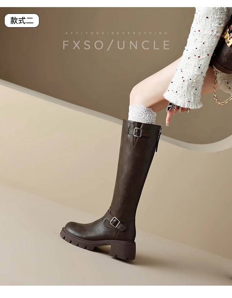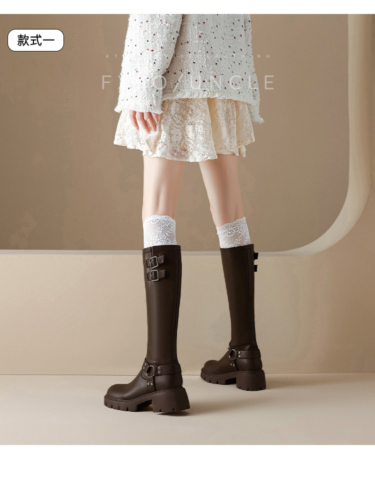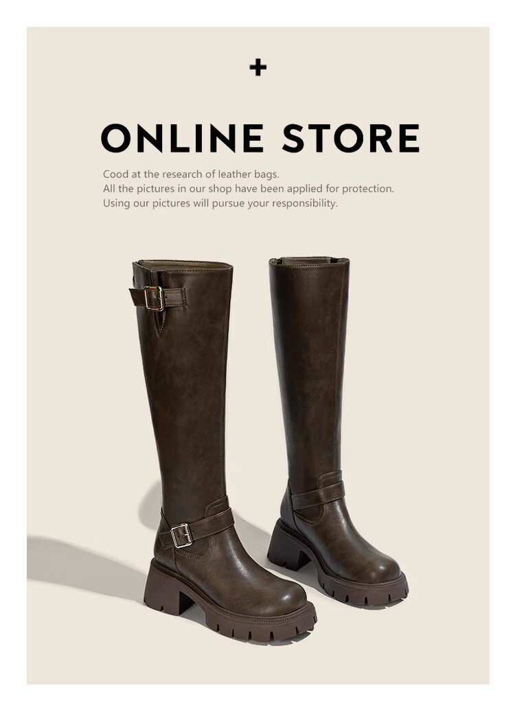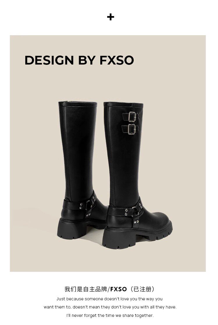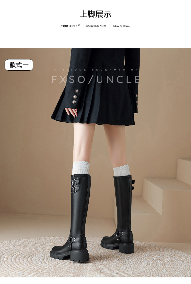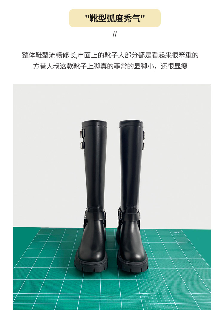 Черные демисезонные высокие сапоги, высокие ботинки на платформе, из натуральной кожи