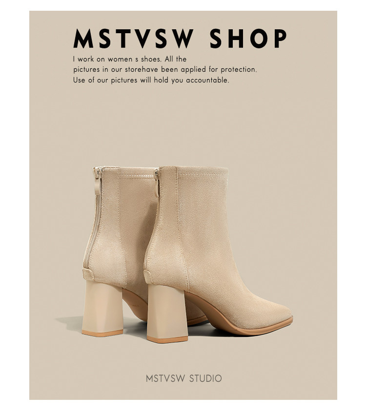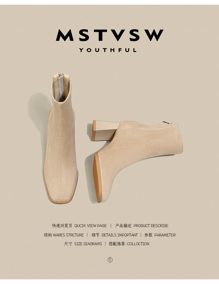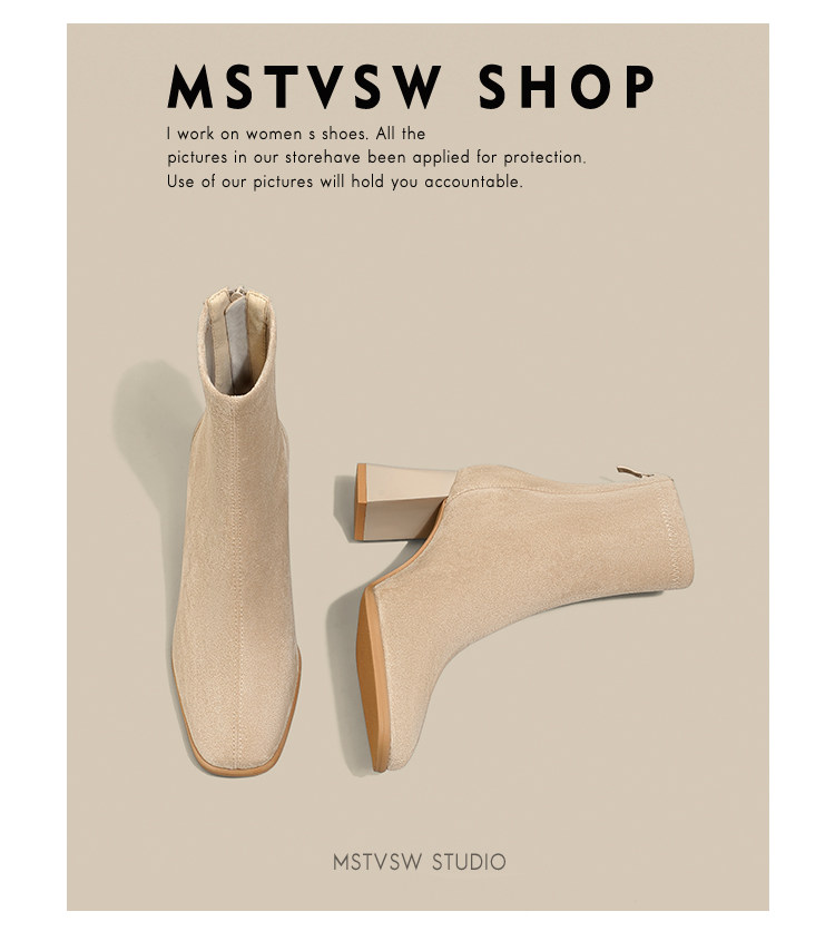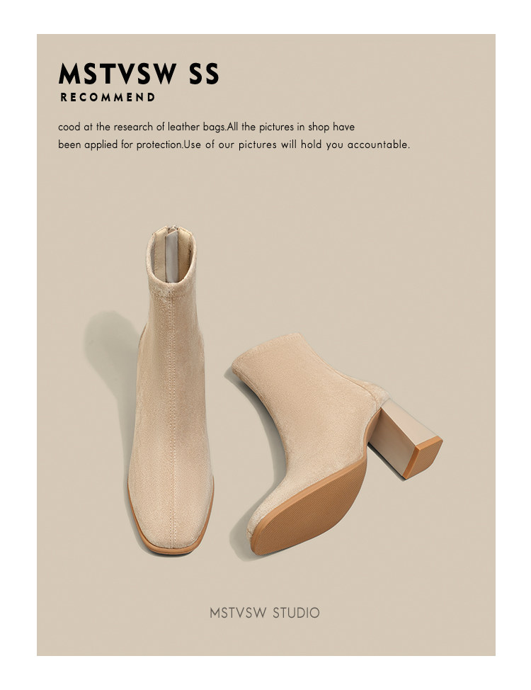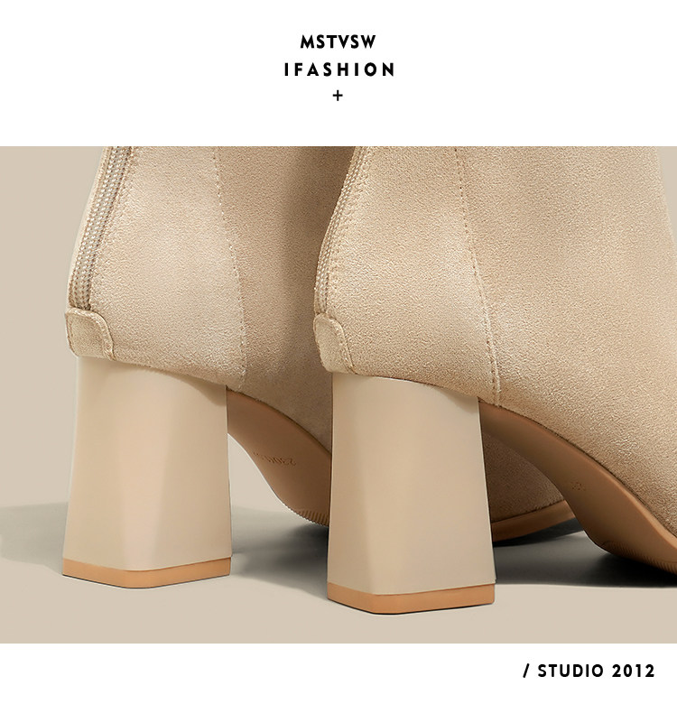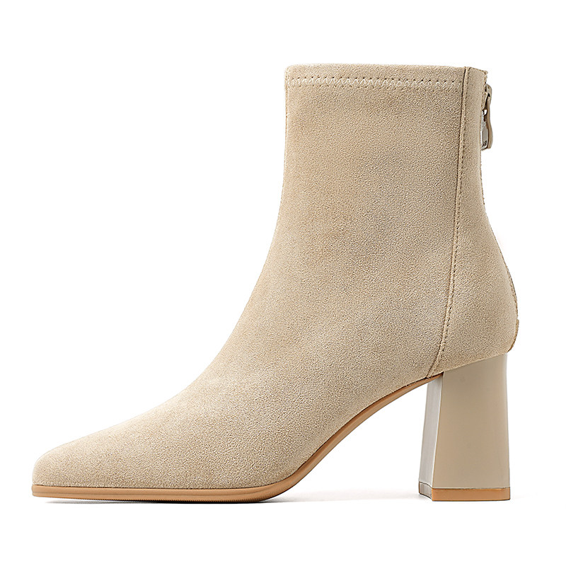Замшевые высокие короткие сапоги, универсальные нюдовые ботинки, по фигуре