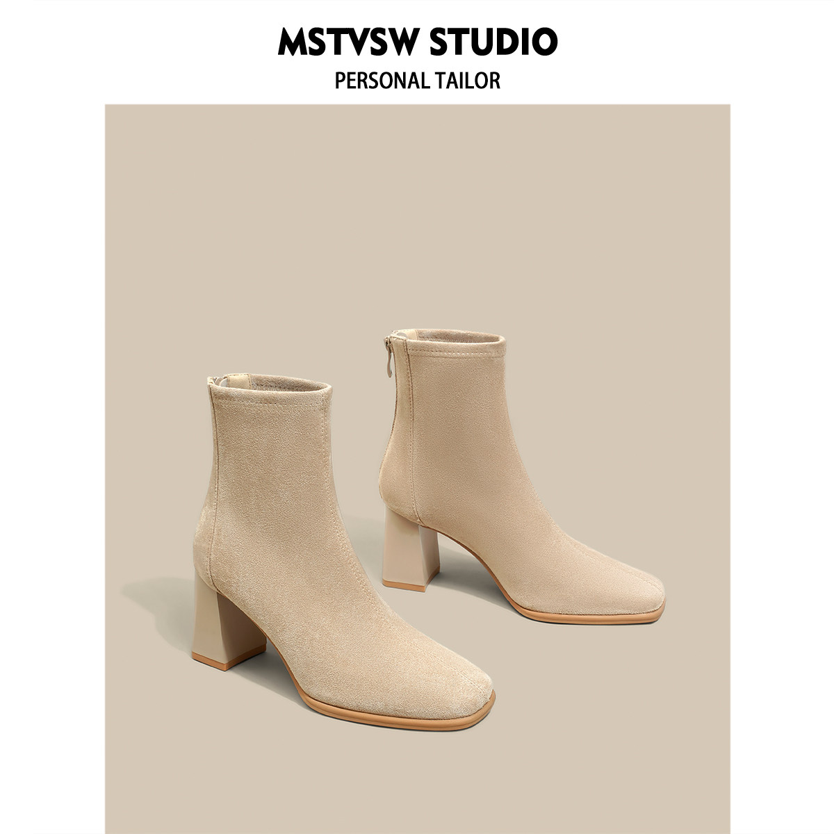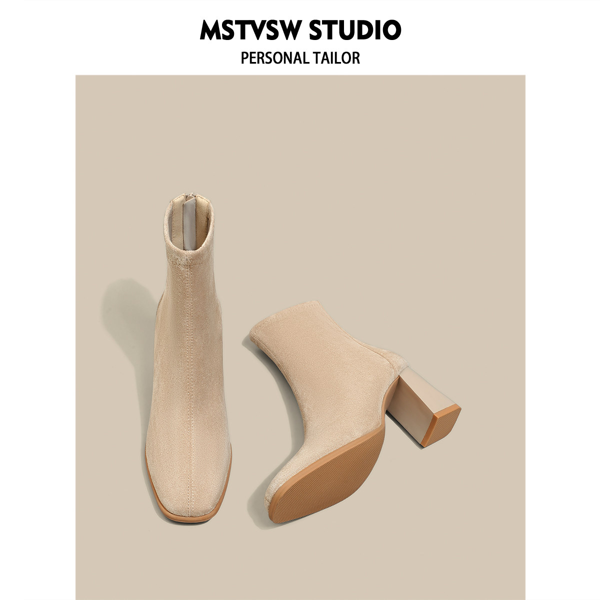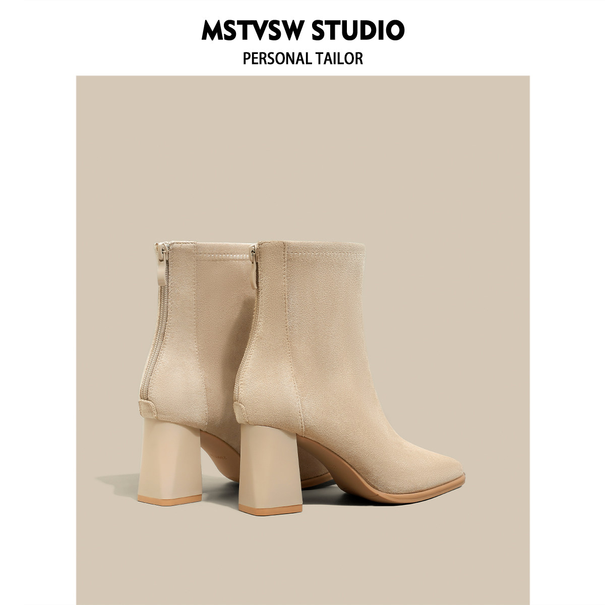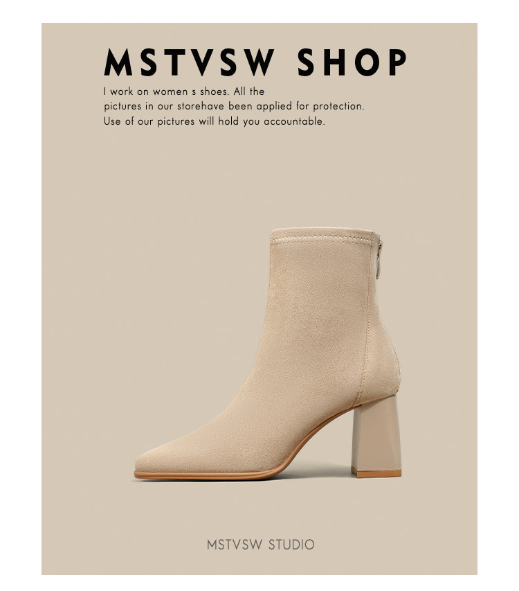 Замшевые высокие короткие сапоги, универсальные нюдовые ботинки, по фигуре