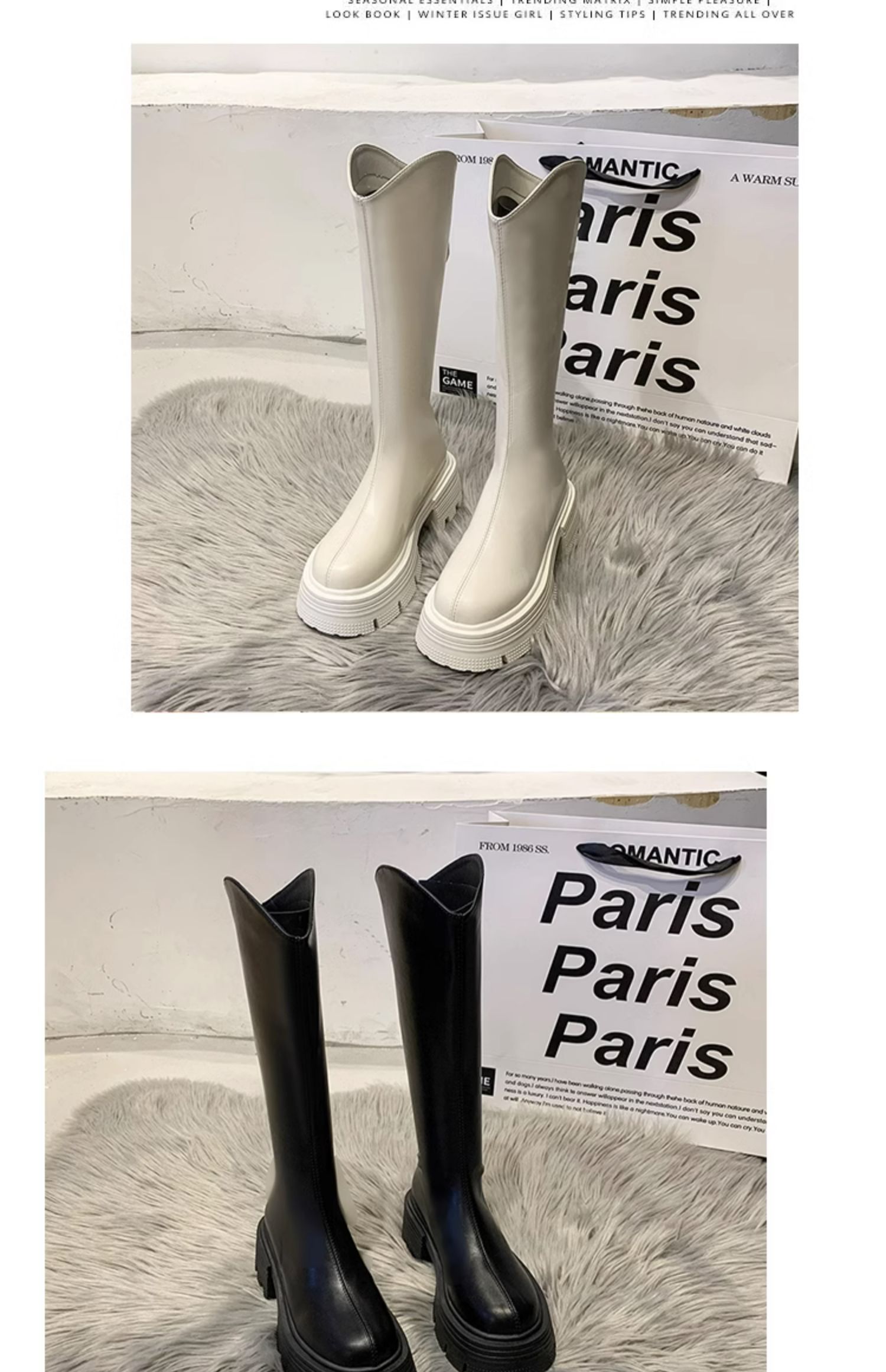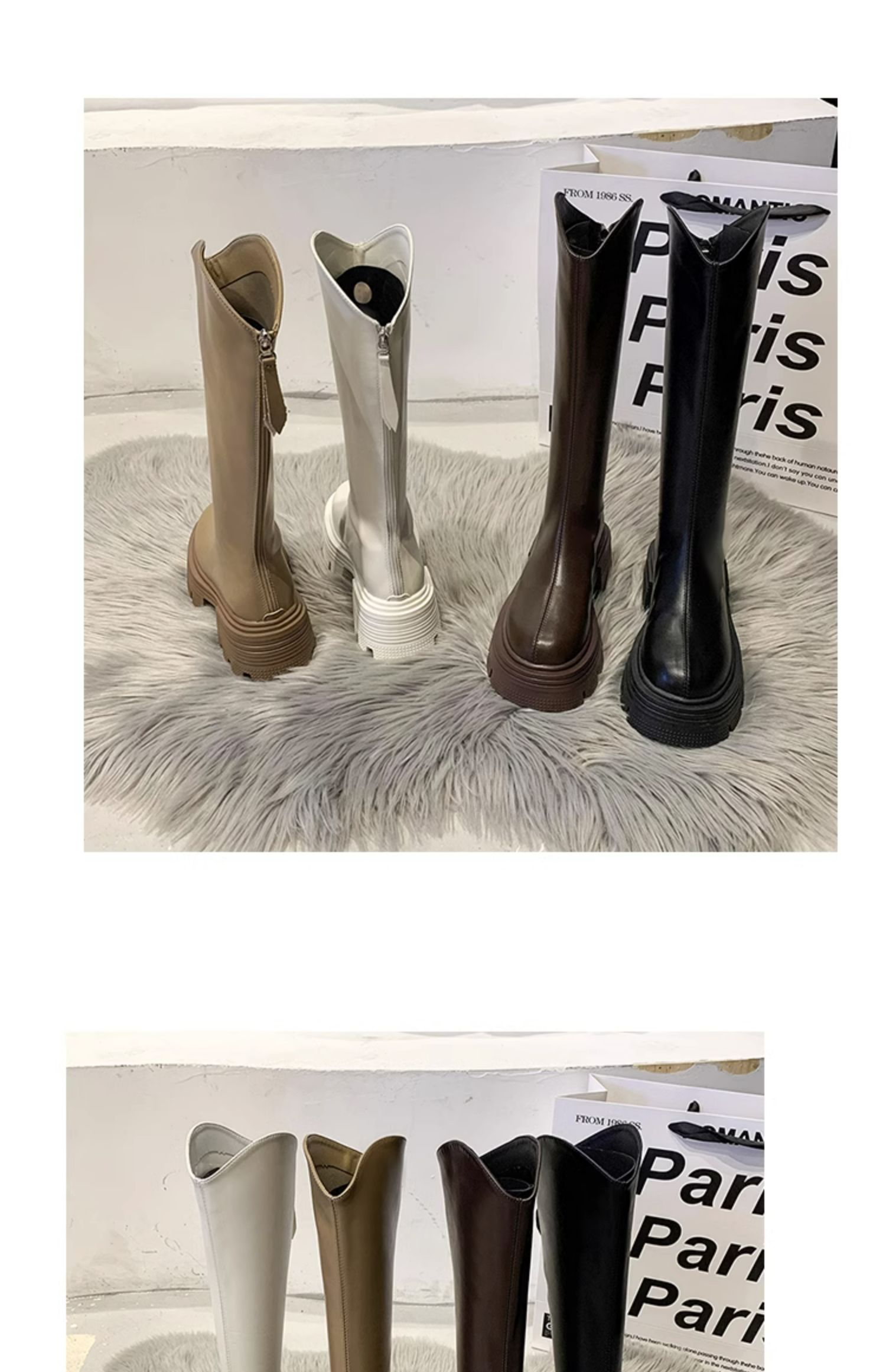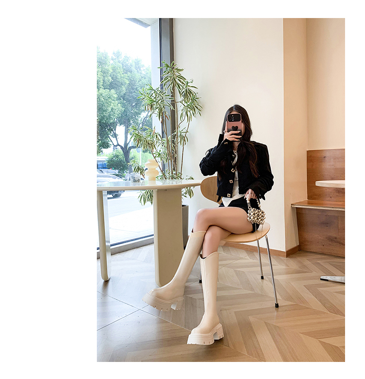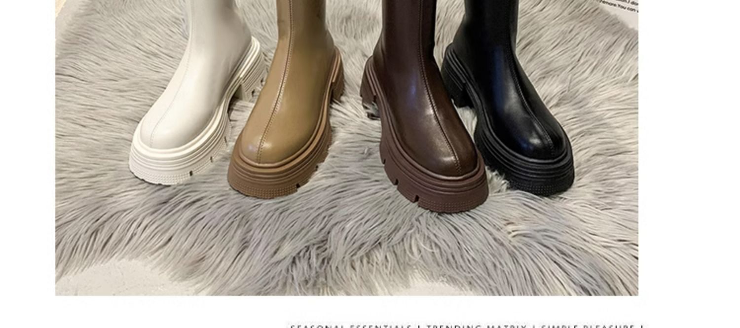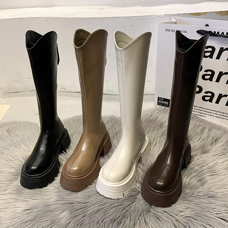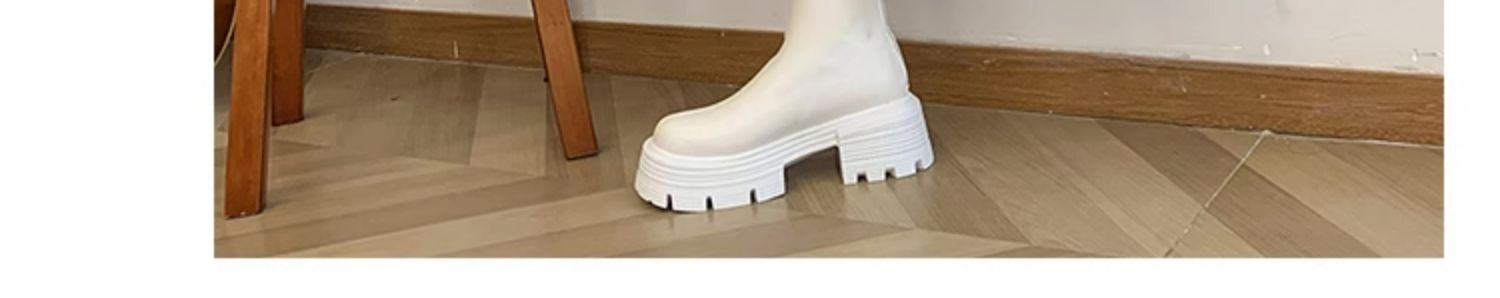 Высокие сапоги на платформе, демисезонные утепленные белые ботинки, коллекция 2023