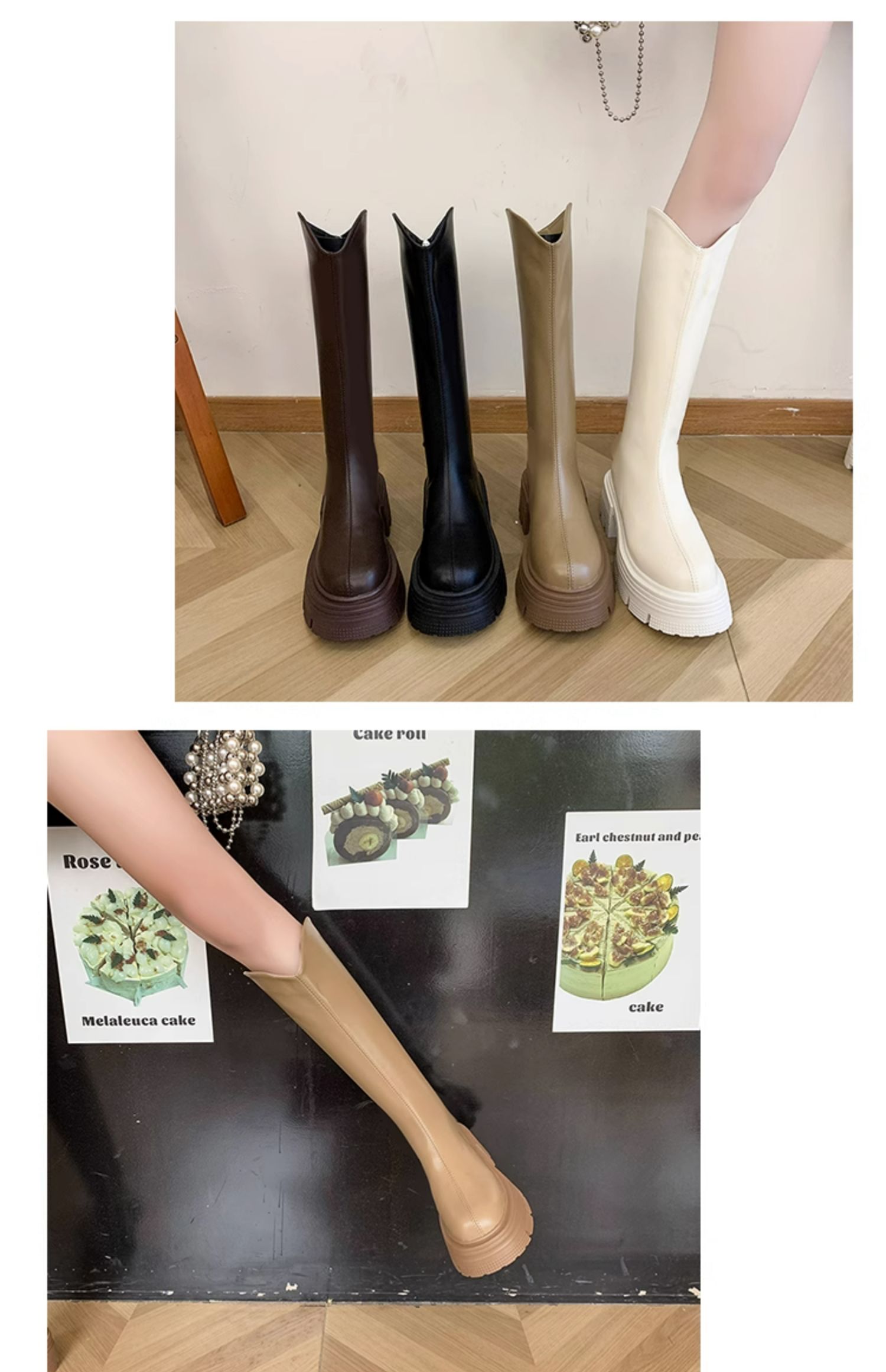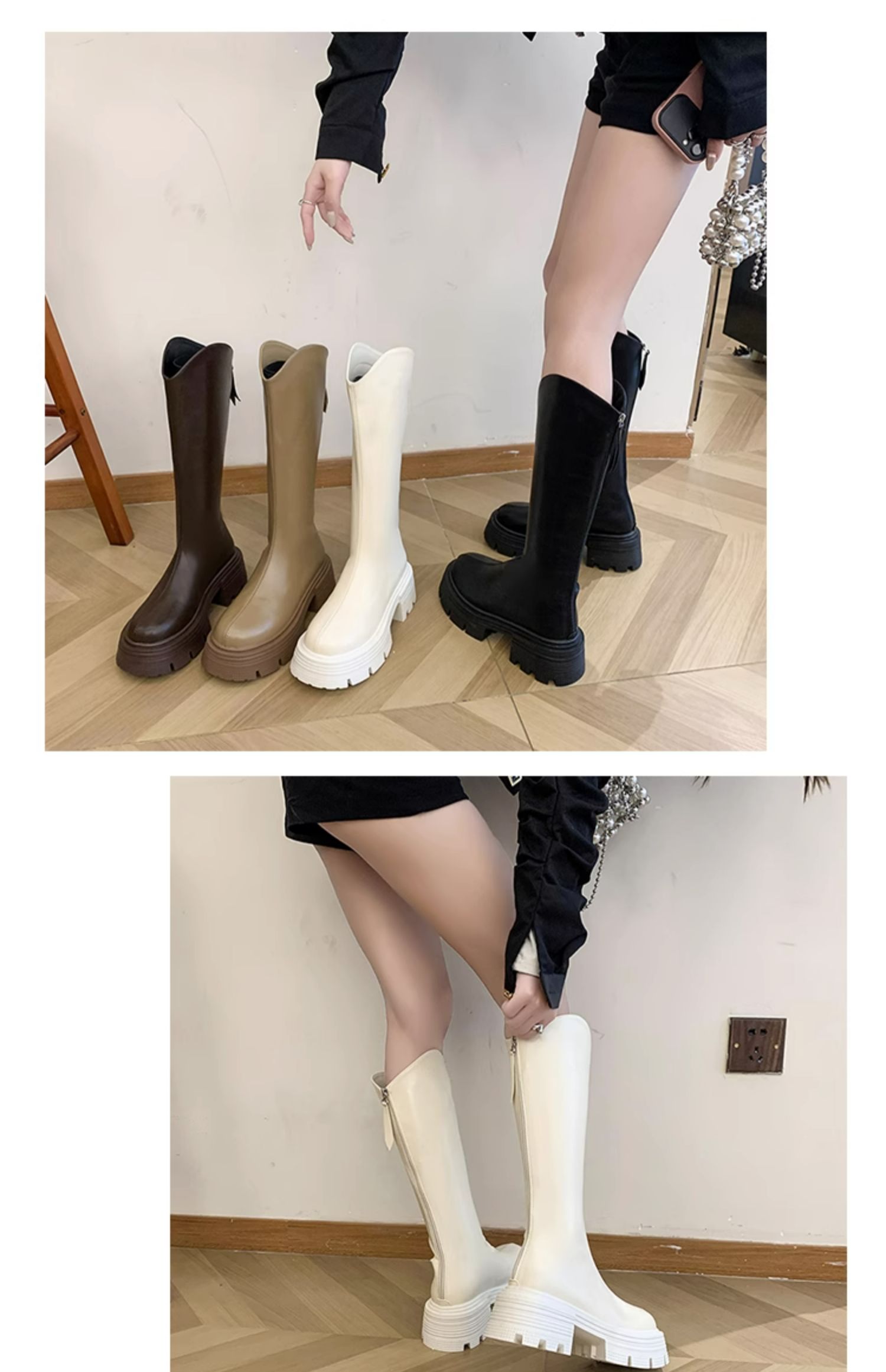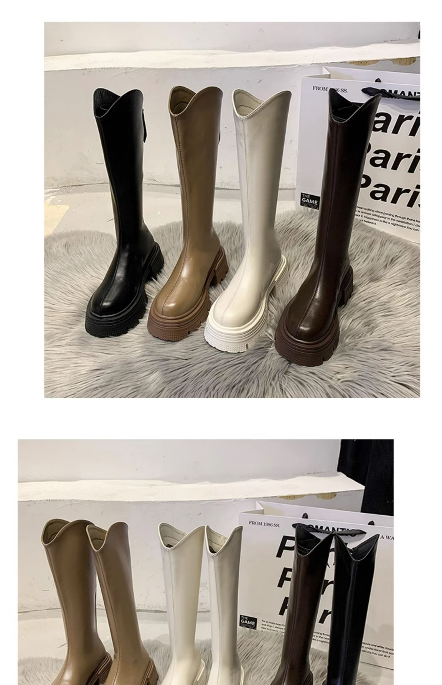 Высокие сапоги на платформе, демисезонные утепленные белые ботинки, коллекция 2023