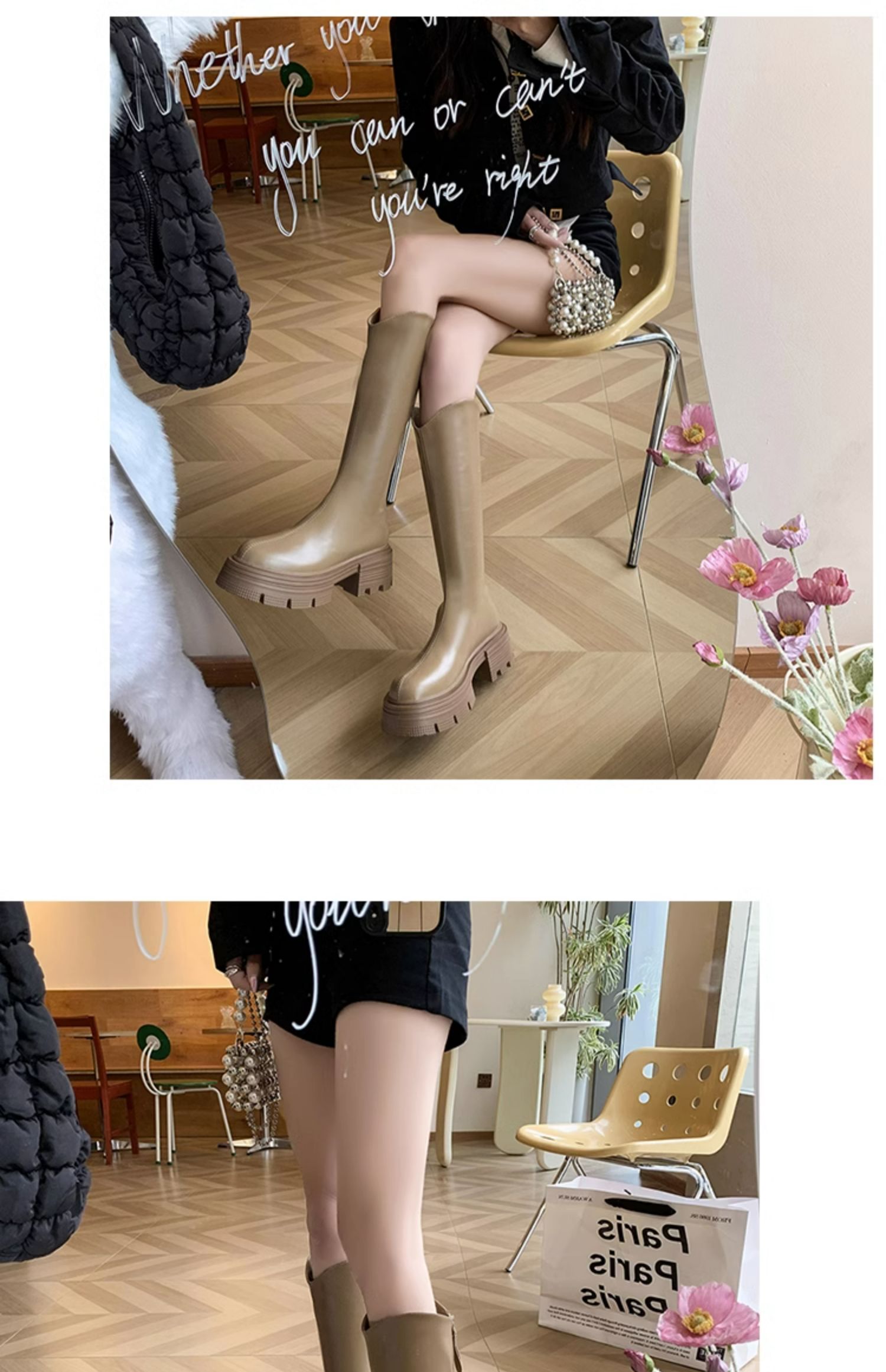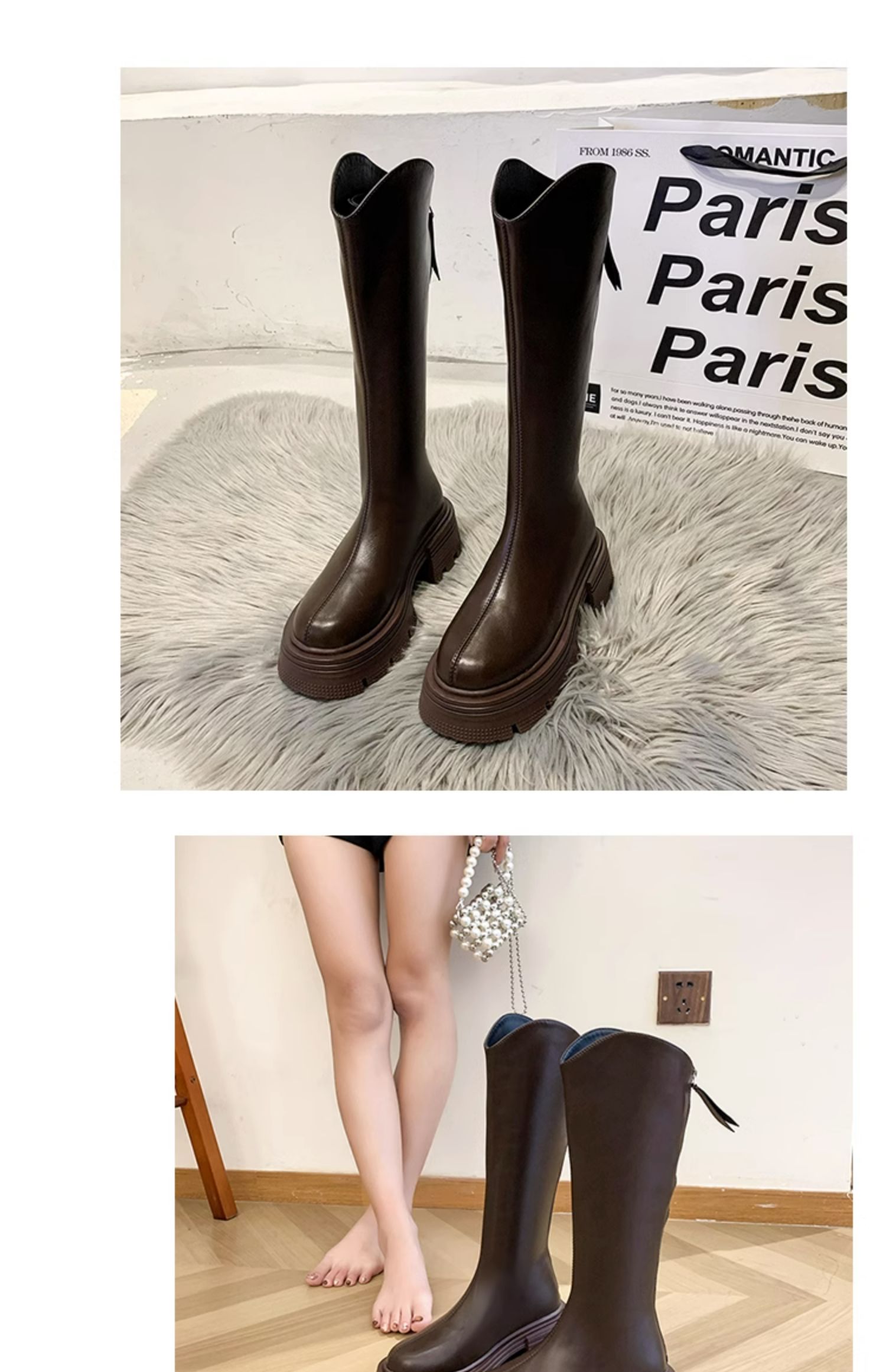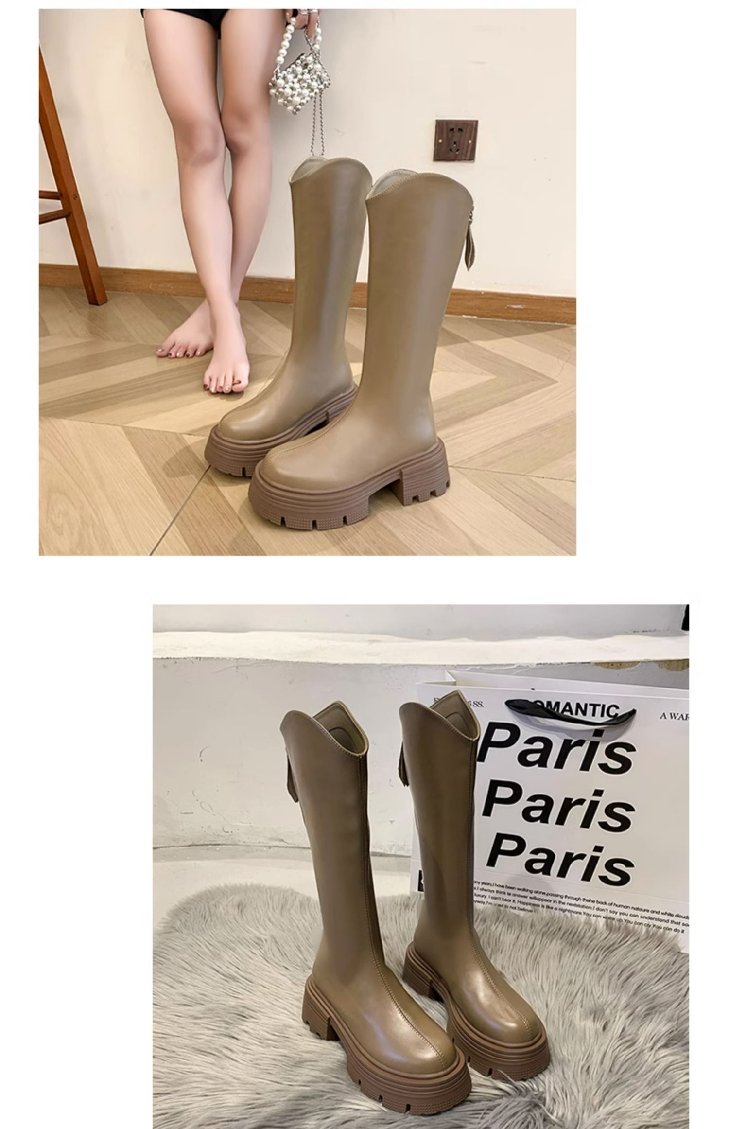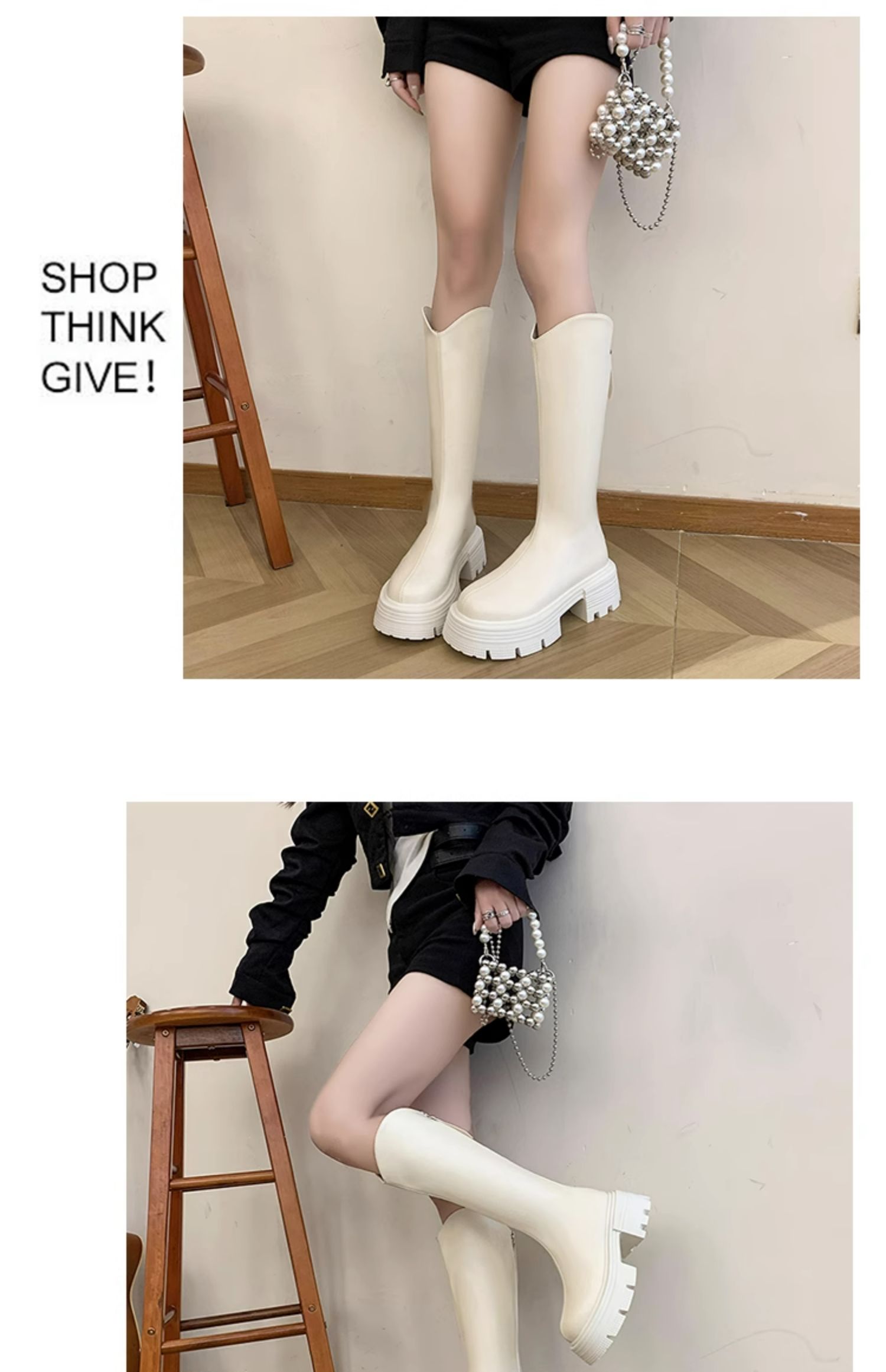 Высокие сапоги на платформе, демисезонные утепленные белые ботинки, коллекция 2023