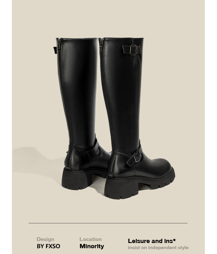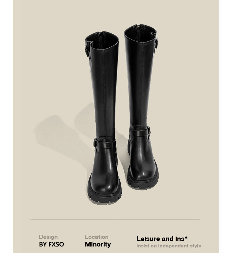 Демисезонные черные высокие сапоги, ботинки на платформе, из натуральной кожи